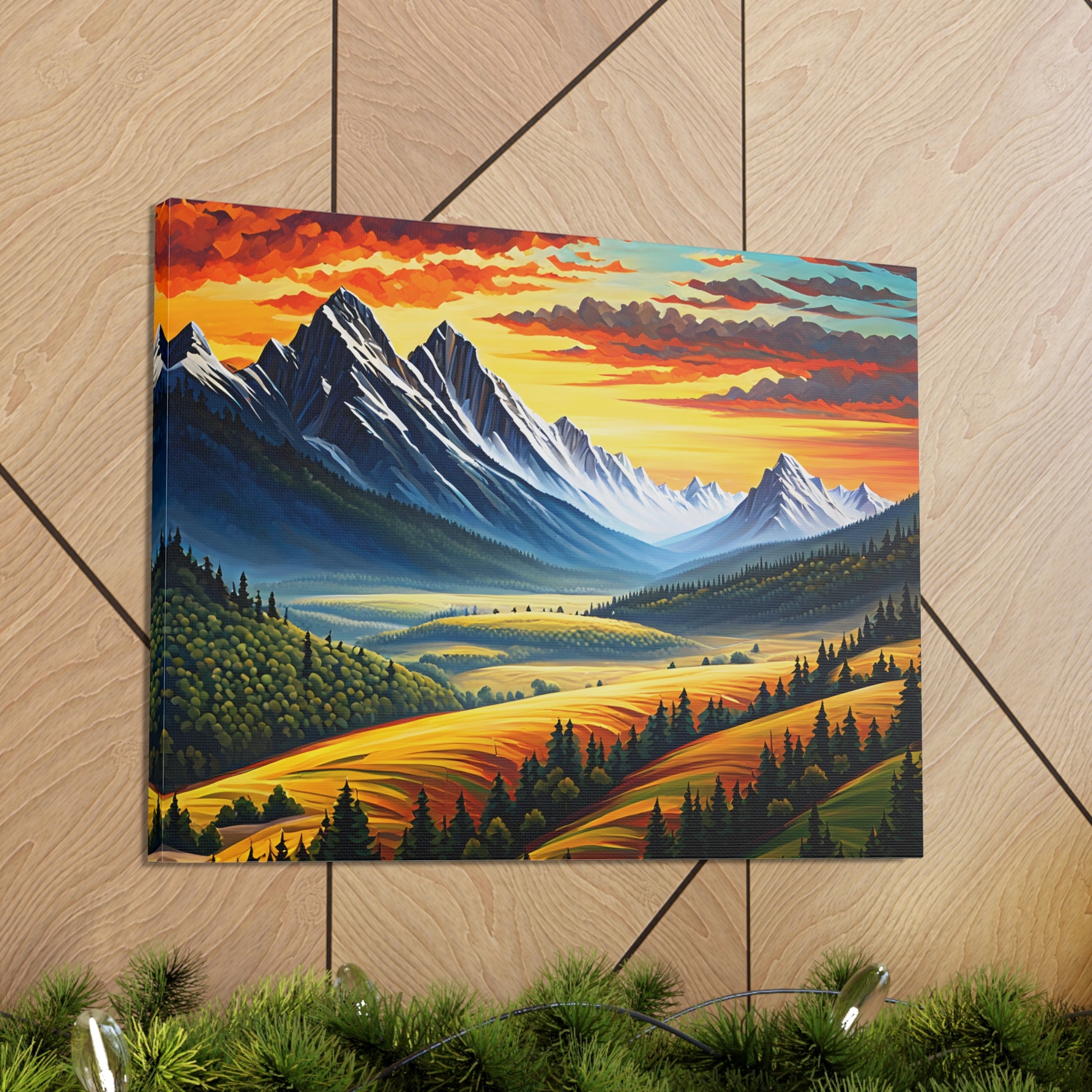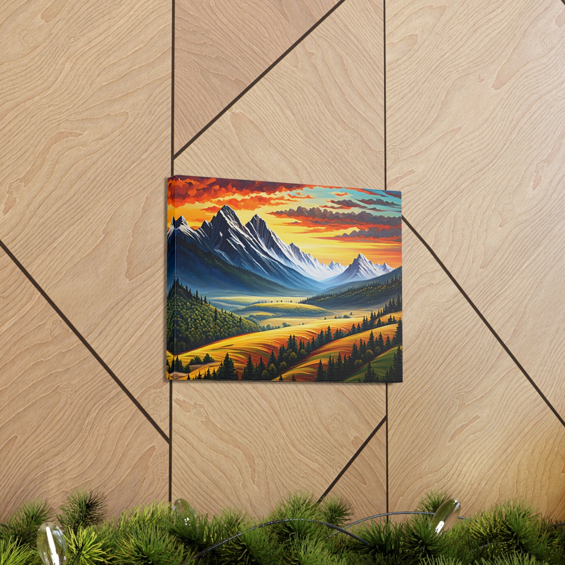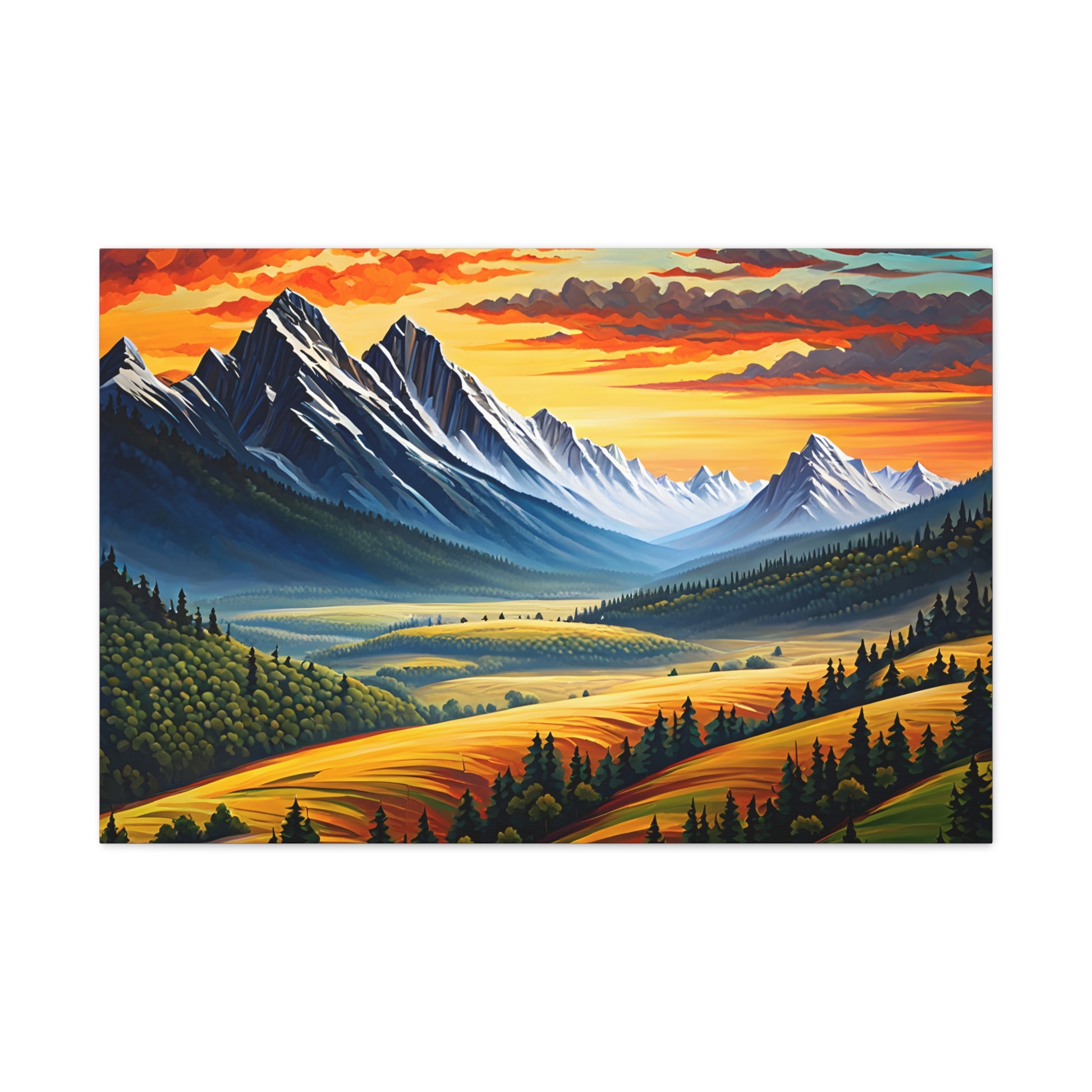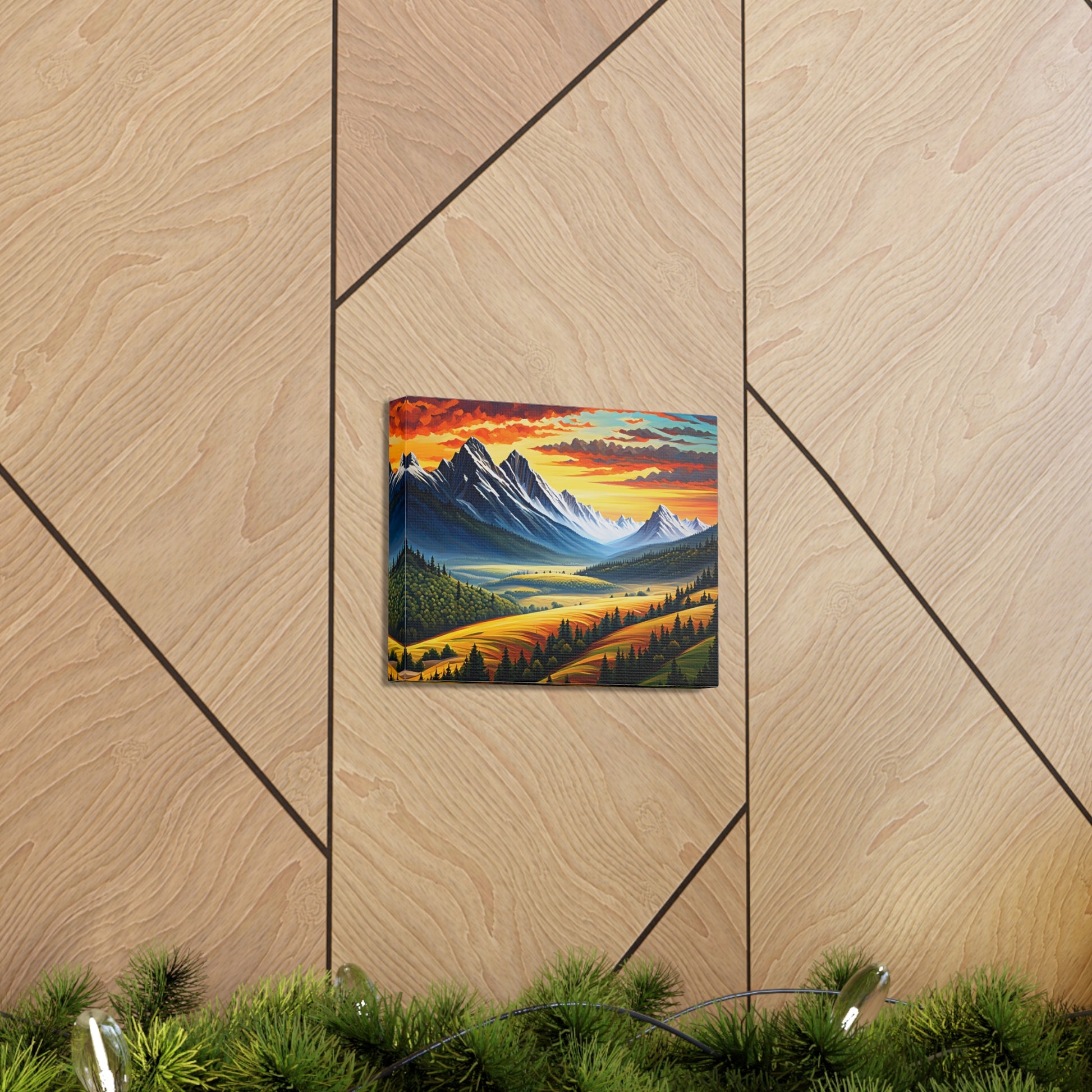 Feel the majestic presence of the mountains with "Mountain Echo," a powerful portrayal of towering peaks against a vibrant sunset sky. This artwork brings the grandeur of nature into your living space.
