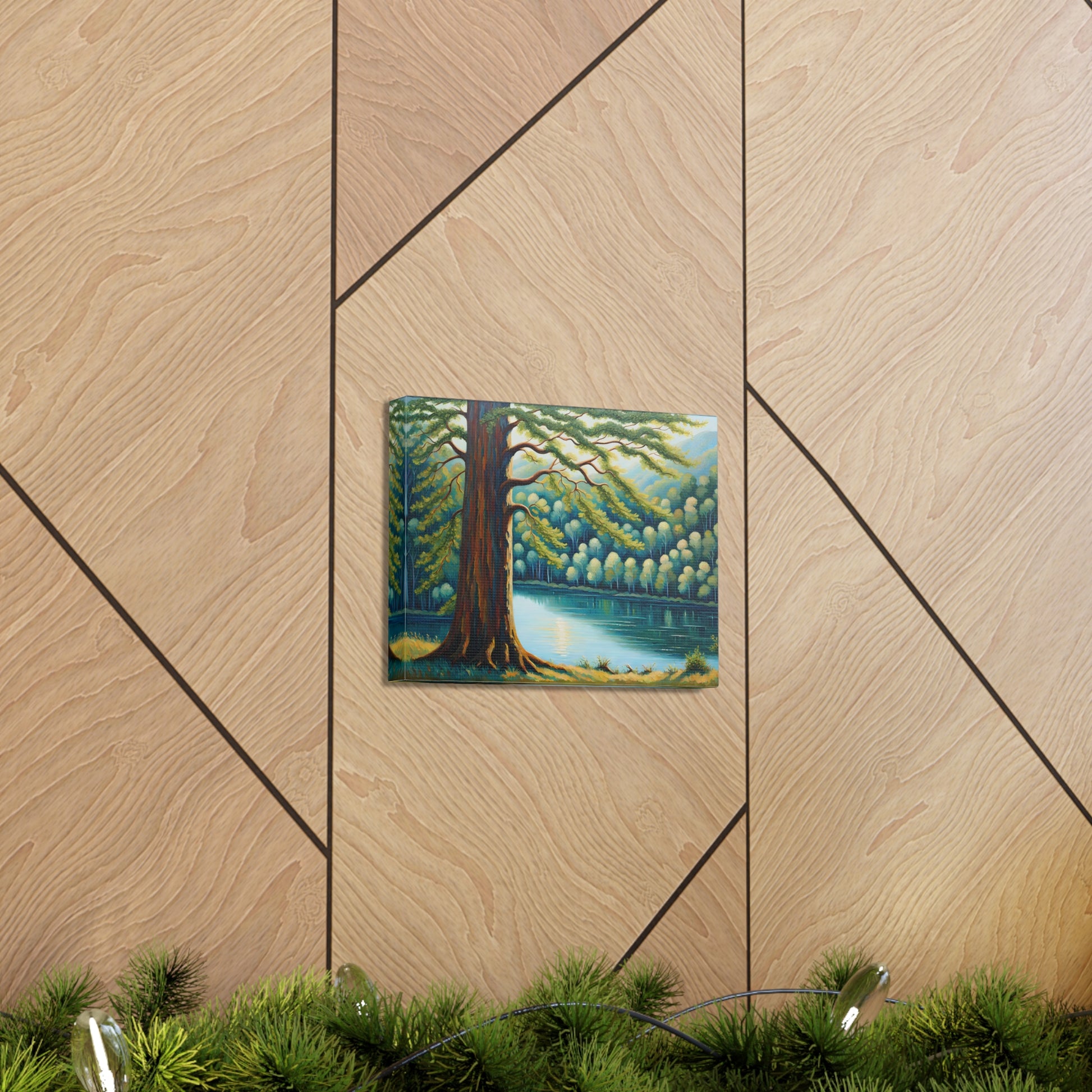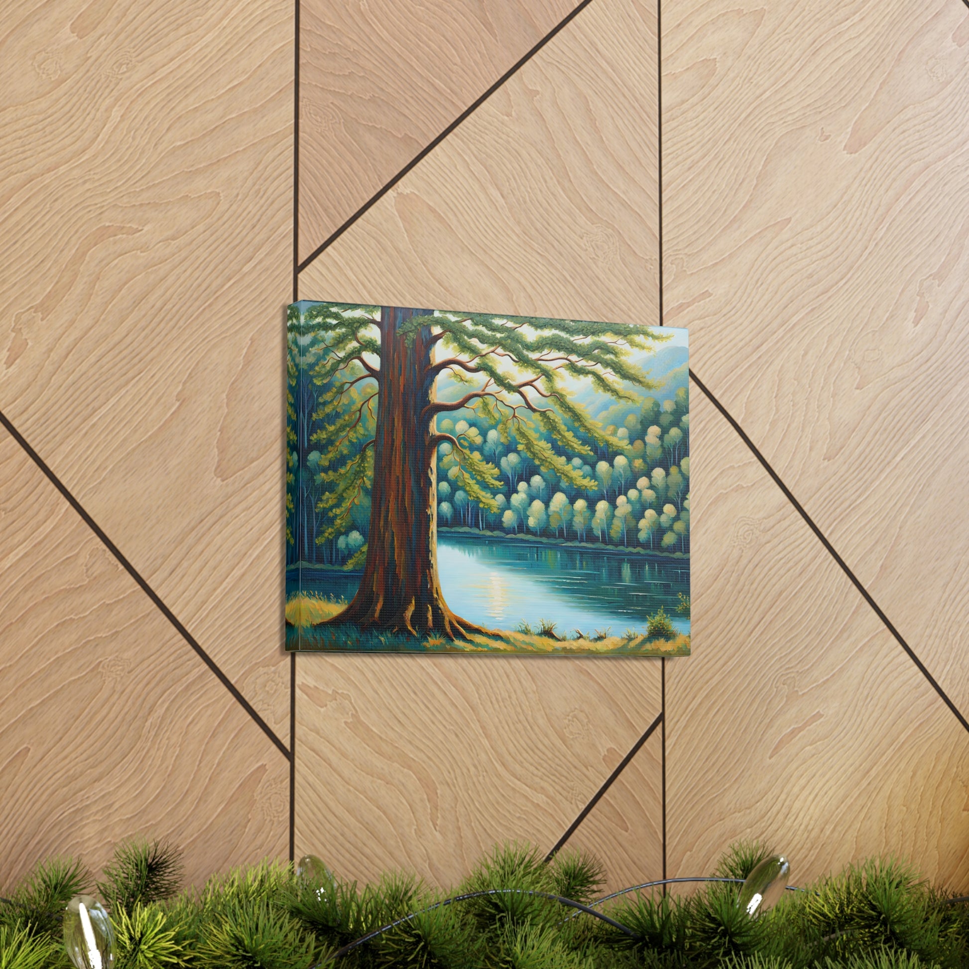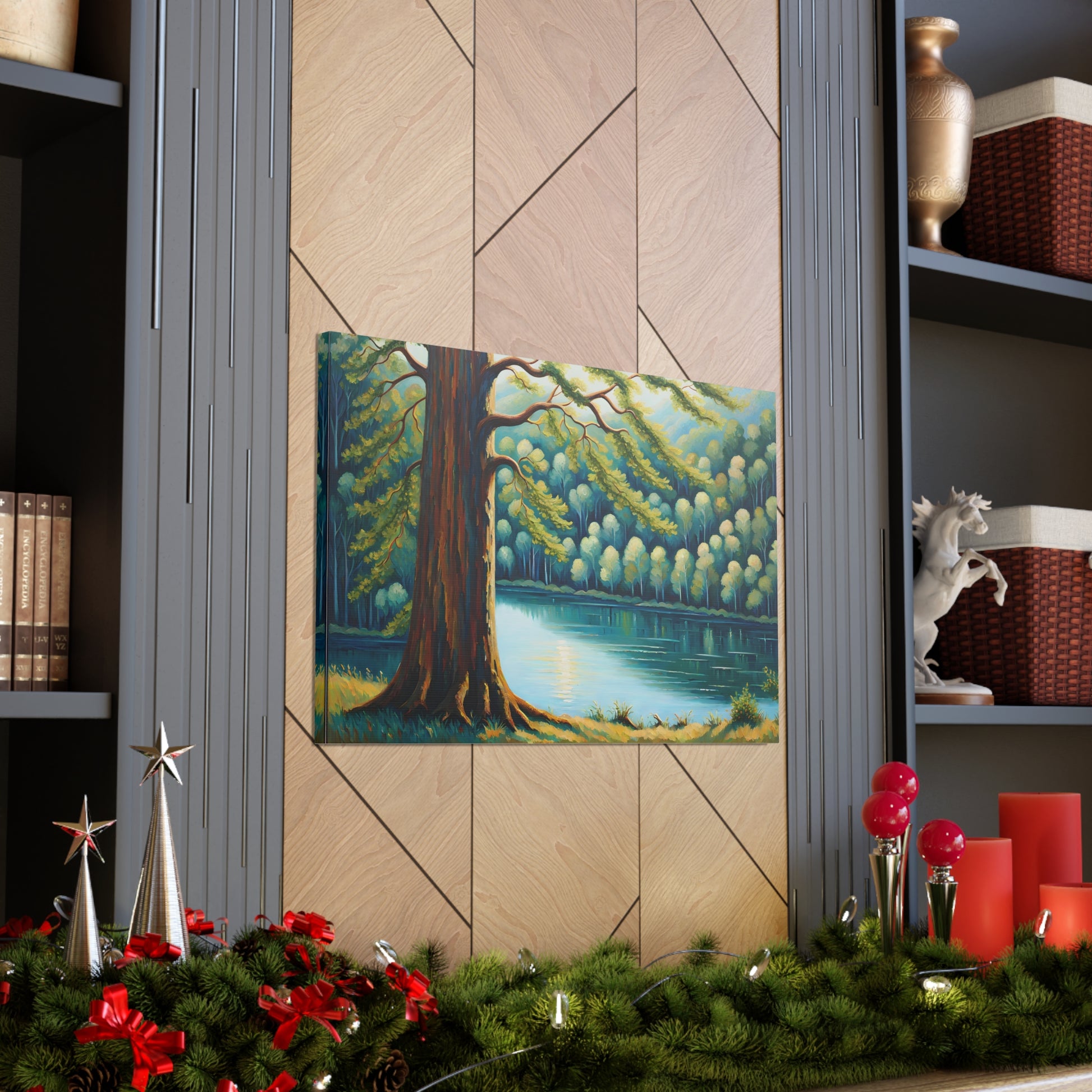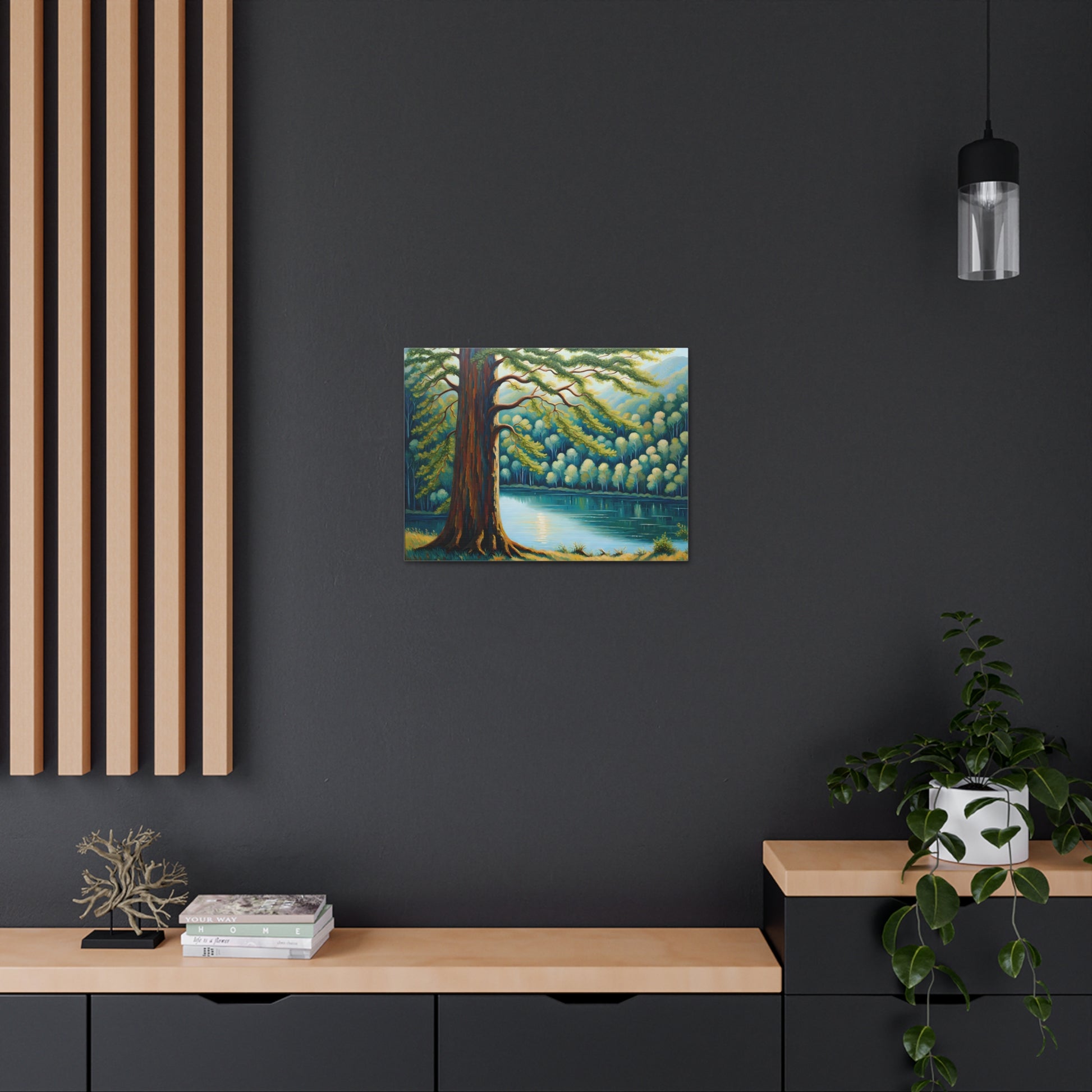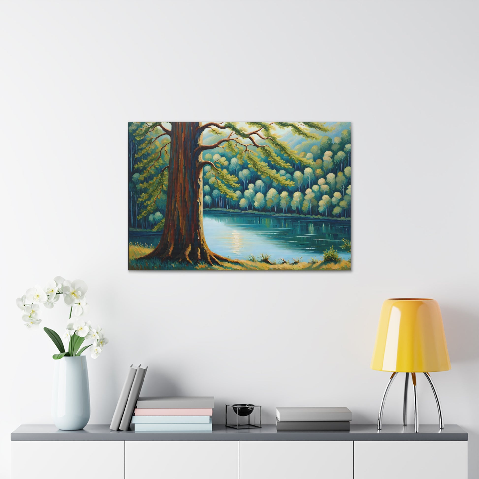 - Soft, Muted Colors: A soothing palette of blues and greens creates a calming riverside scene.