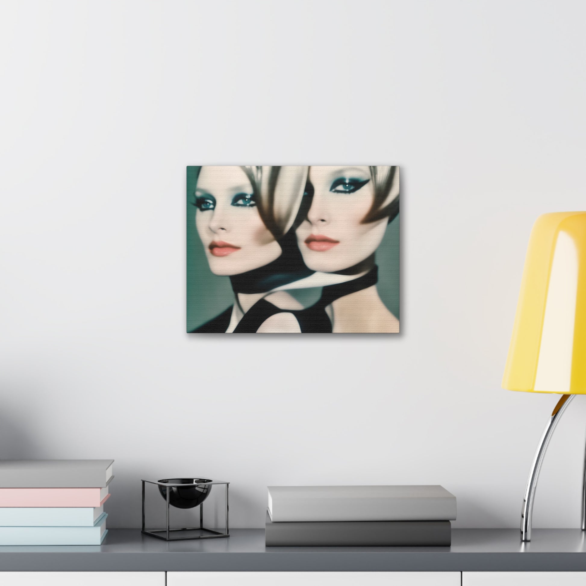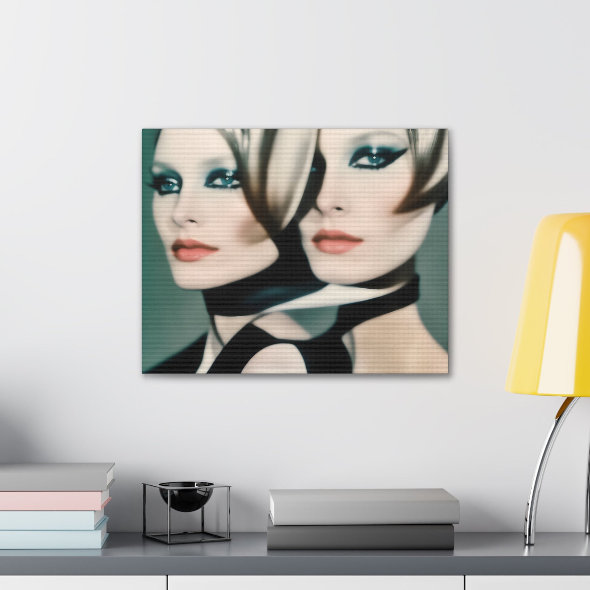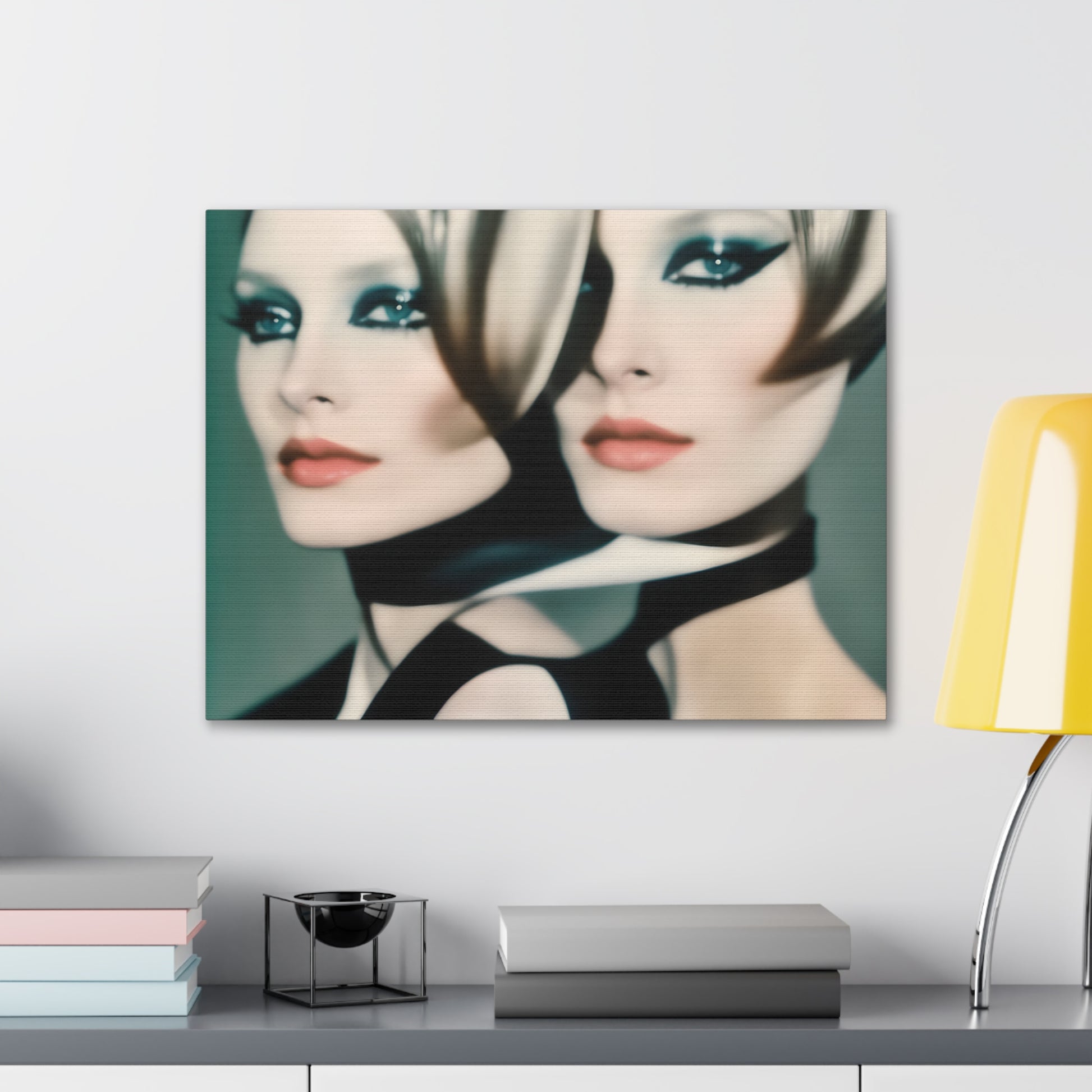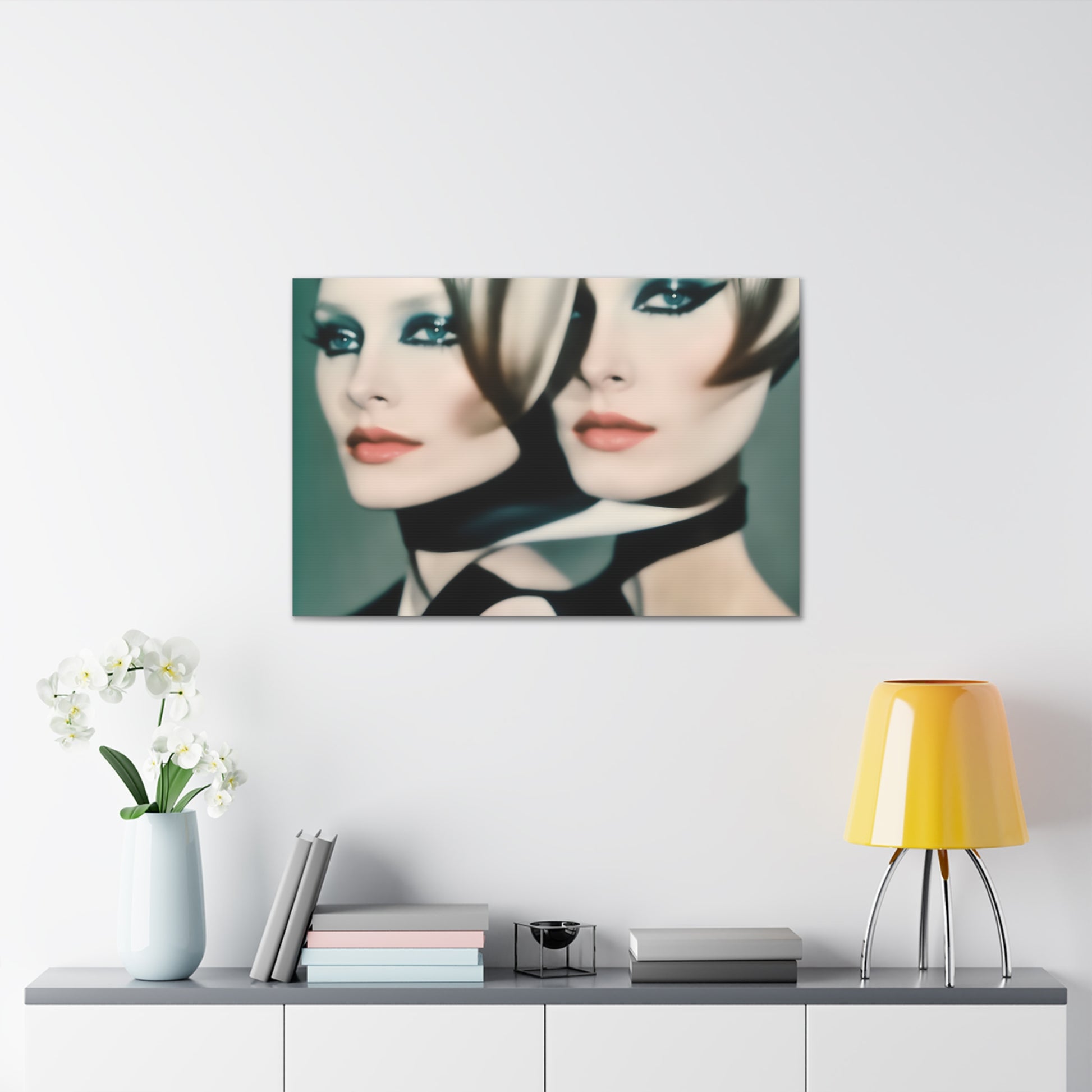 Indulge in the allure of "Mystique in Repetition," an iconic canvas artwork that transcends conventional boundaries. This captivating piece features a repeating pattern of a lady with closed eyes, donning striking red lipstick, all rendered in sophisticated tones of white and grey.