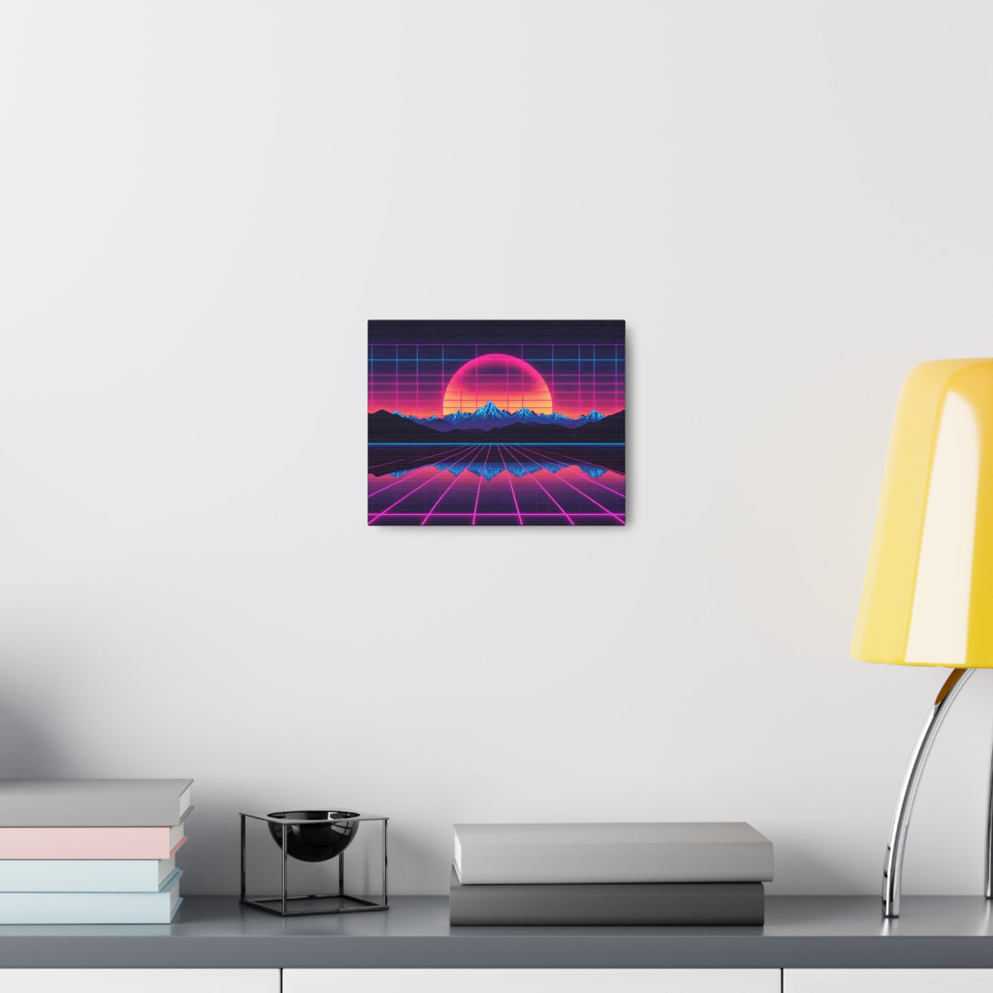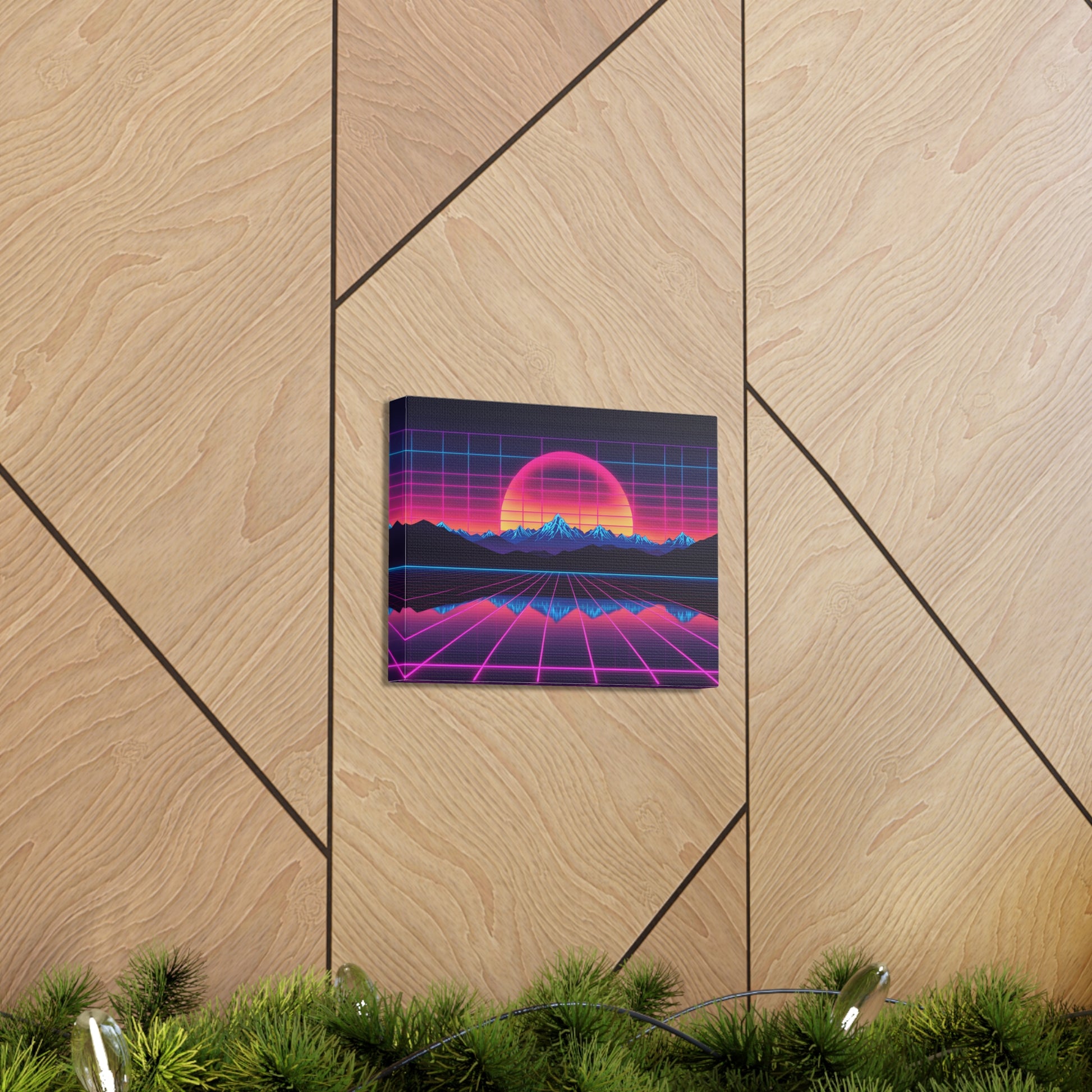 Step into the vibrant past with "Nostalgic Radiance: Outrun Wall Décor." This captivating canvas artwork captures the essence of the outrun aesthetic, offering a nostalgic journey through time with its mesmerizing design.
