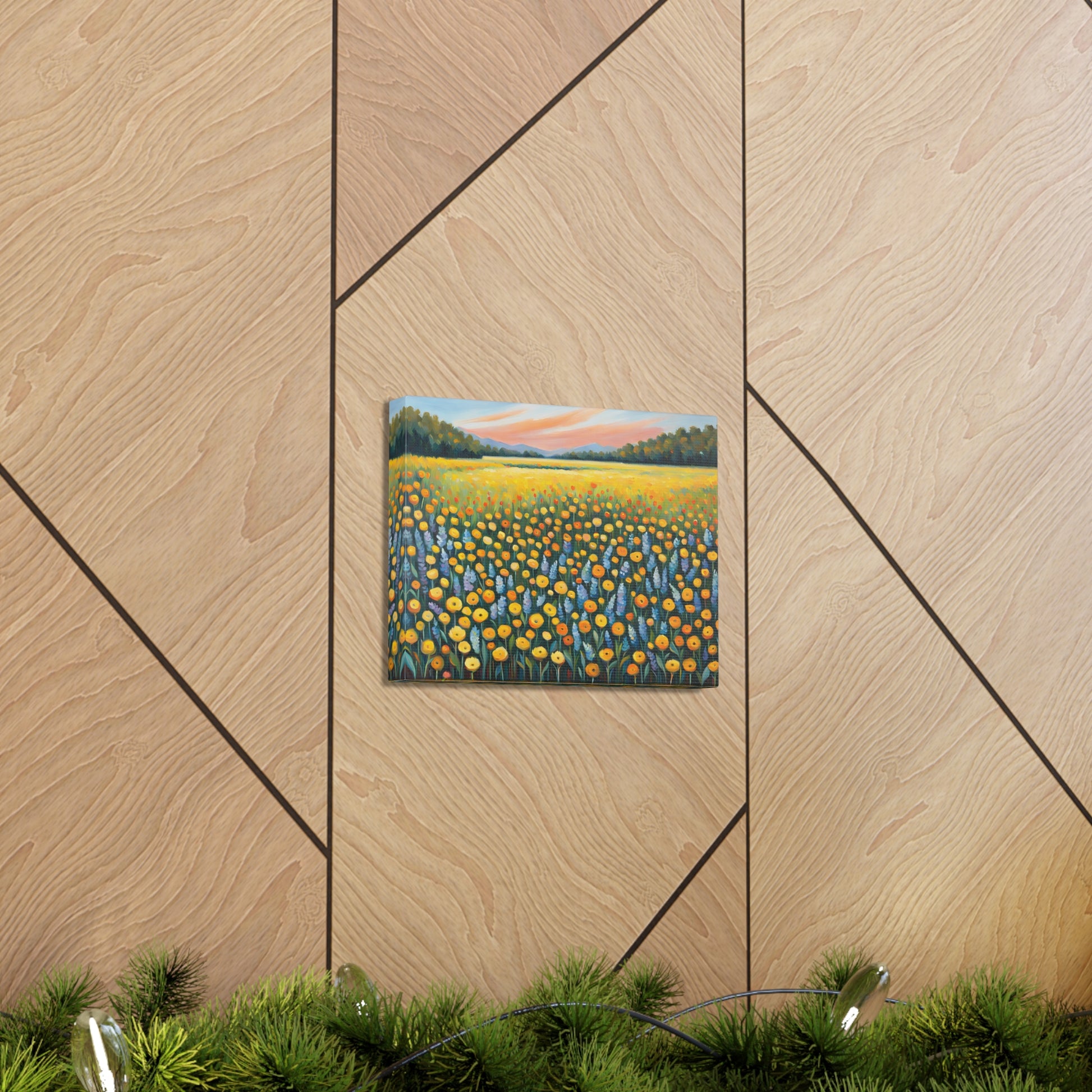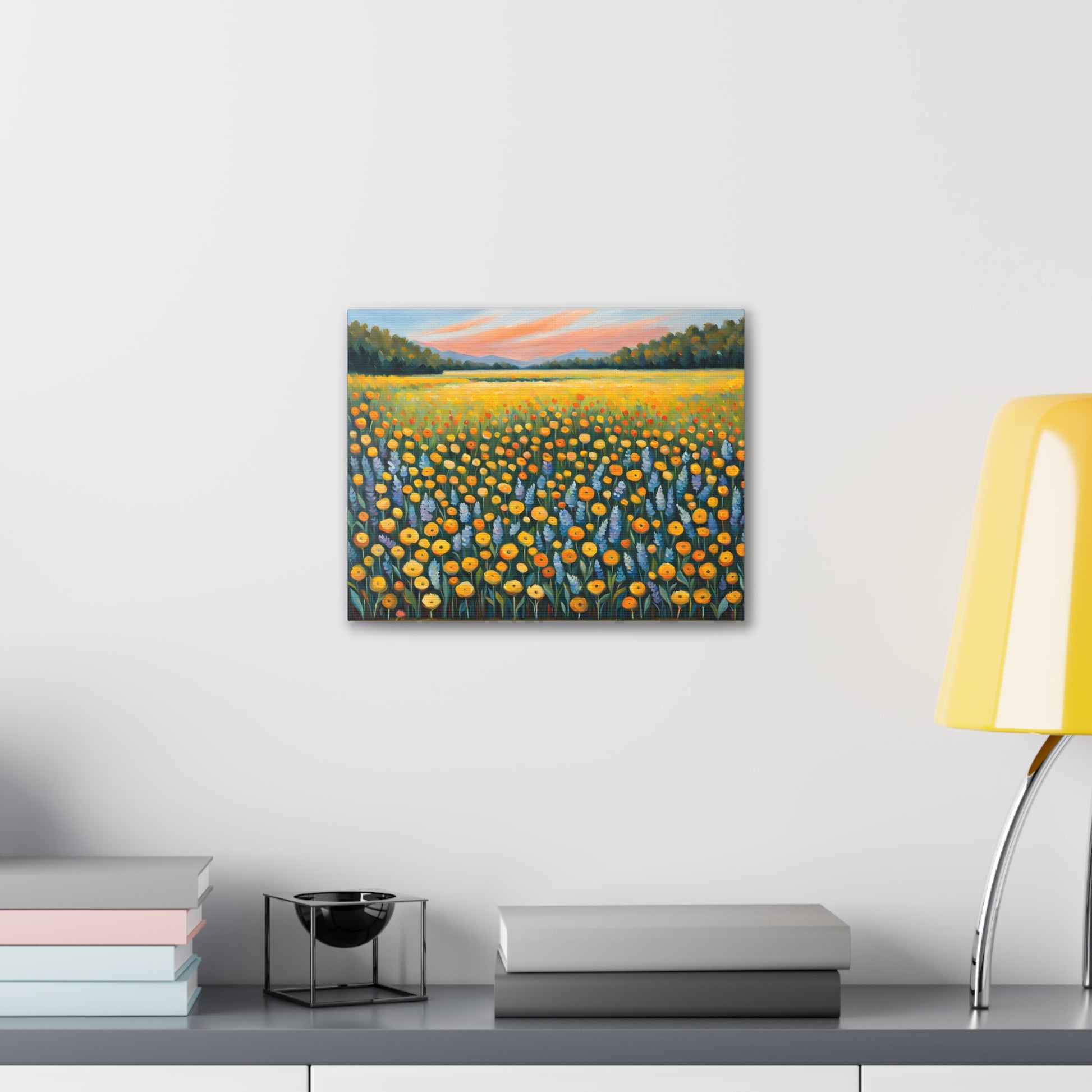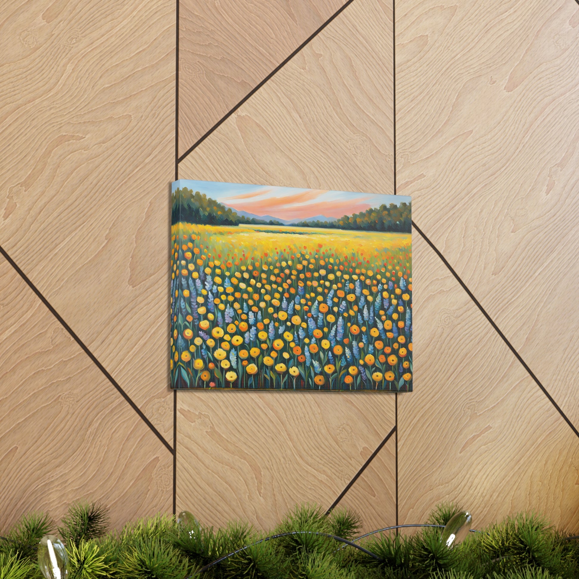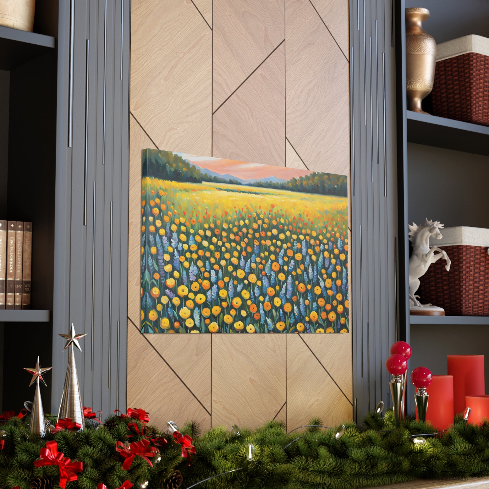 "Peaceful Meadow" is a vibrant oil painting that captures the vivid colors of a blooming meadow under a serene sky. Crafted on high-quality cotton canvas, this piece features a lively array of wildflowers, set against a backdrop of distant mountains and a glowing sunset. Ideal for brightening up any room, "Peaceful Meadow" is designed for indoor use, bringing a cheerful touch of nature into your home.