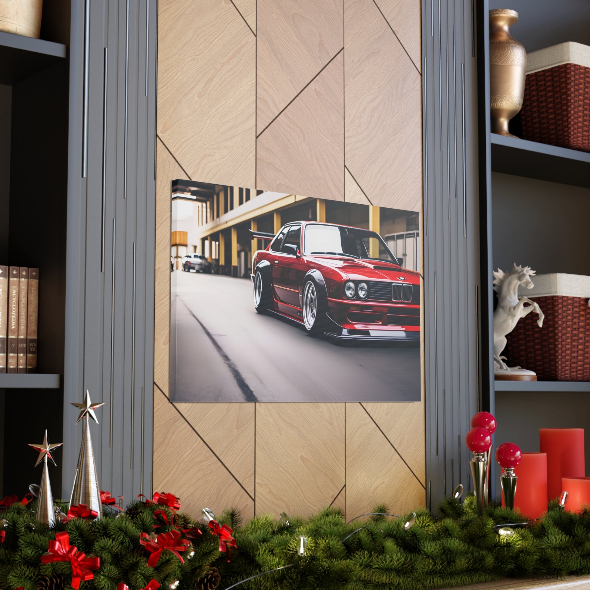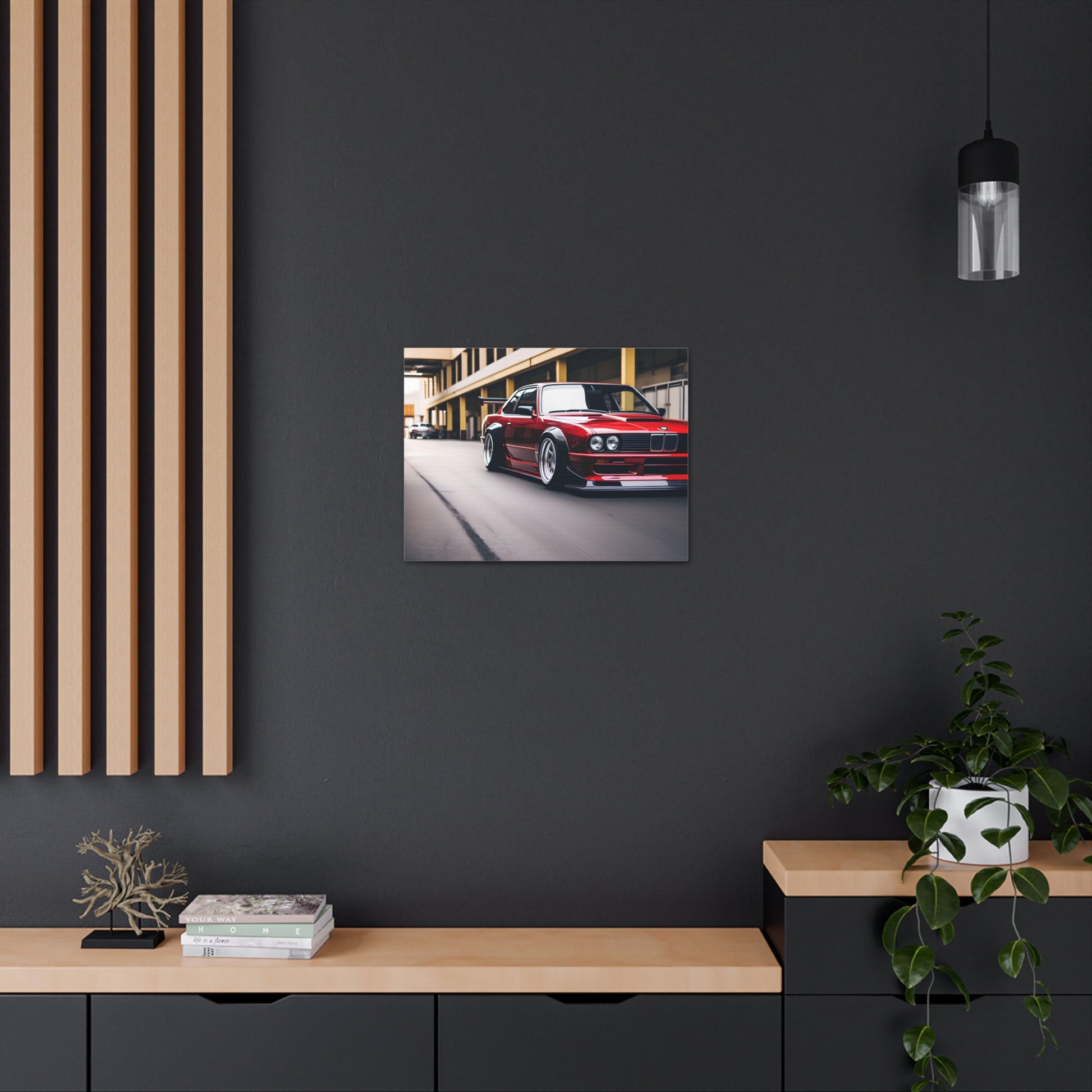Crafted from premium-quality cotton, "Racing Elegance" not only guarantees durability but also vividly portrays the intricate details of the BMW E30 M3. Designed exclusively for indoor use, this artwork becomes a bold statement piece, seamlessly merging the thrill of the race with the comfort of your home.