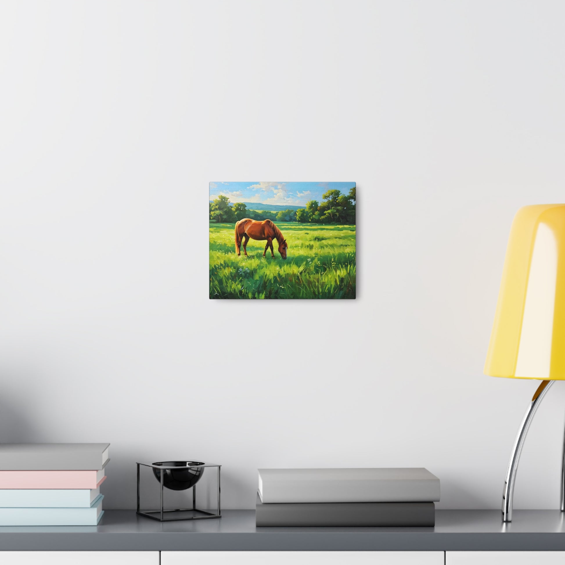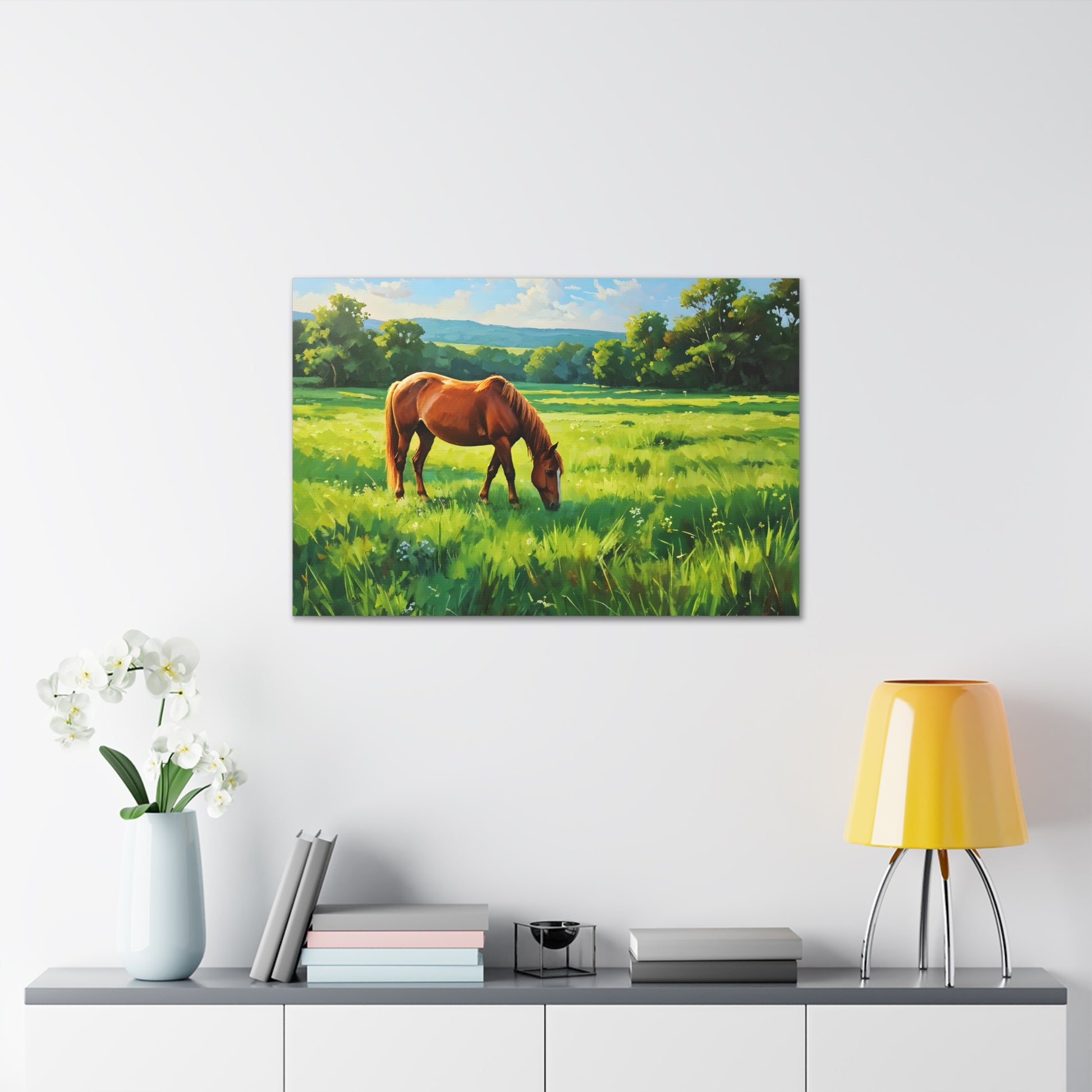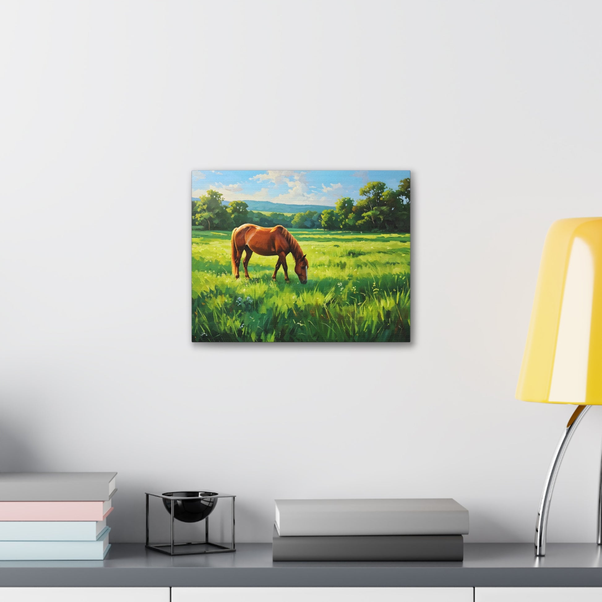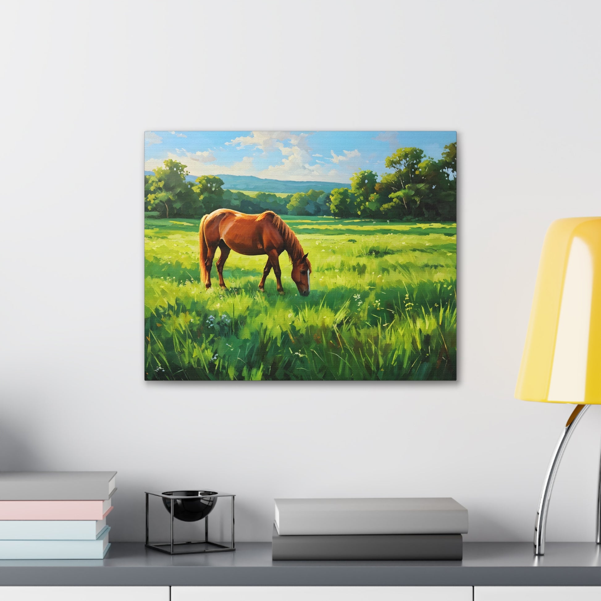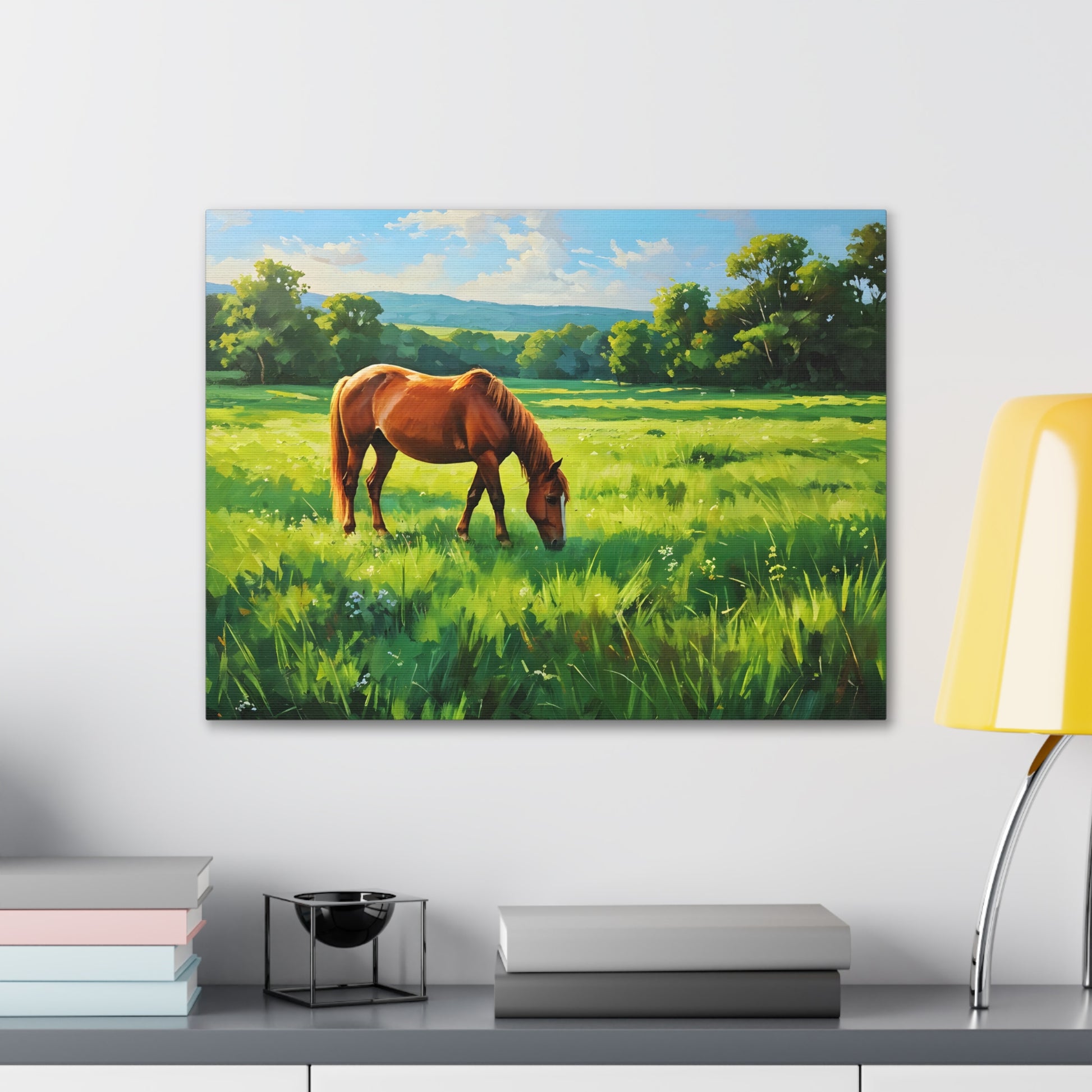 - Soft, Golden Hues: A soothing palette of yellows and greens creates a tranquil hillside scene.