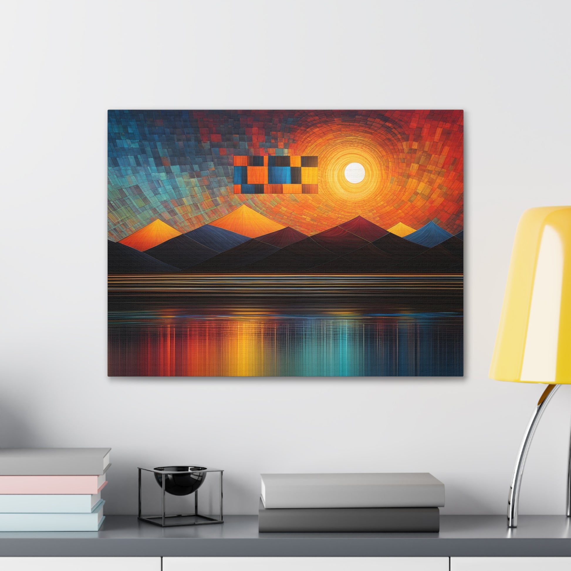 Discover the luminous beauty of "Radiant Reflections: Abstract Wall Décor." Printed on premium cotton canvas, this artwork features glowing patterns that radiate warmth and light.