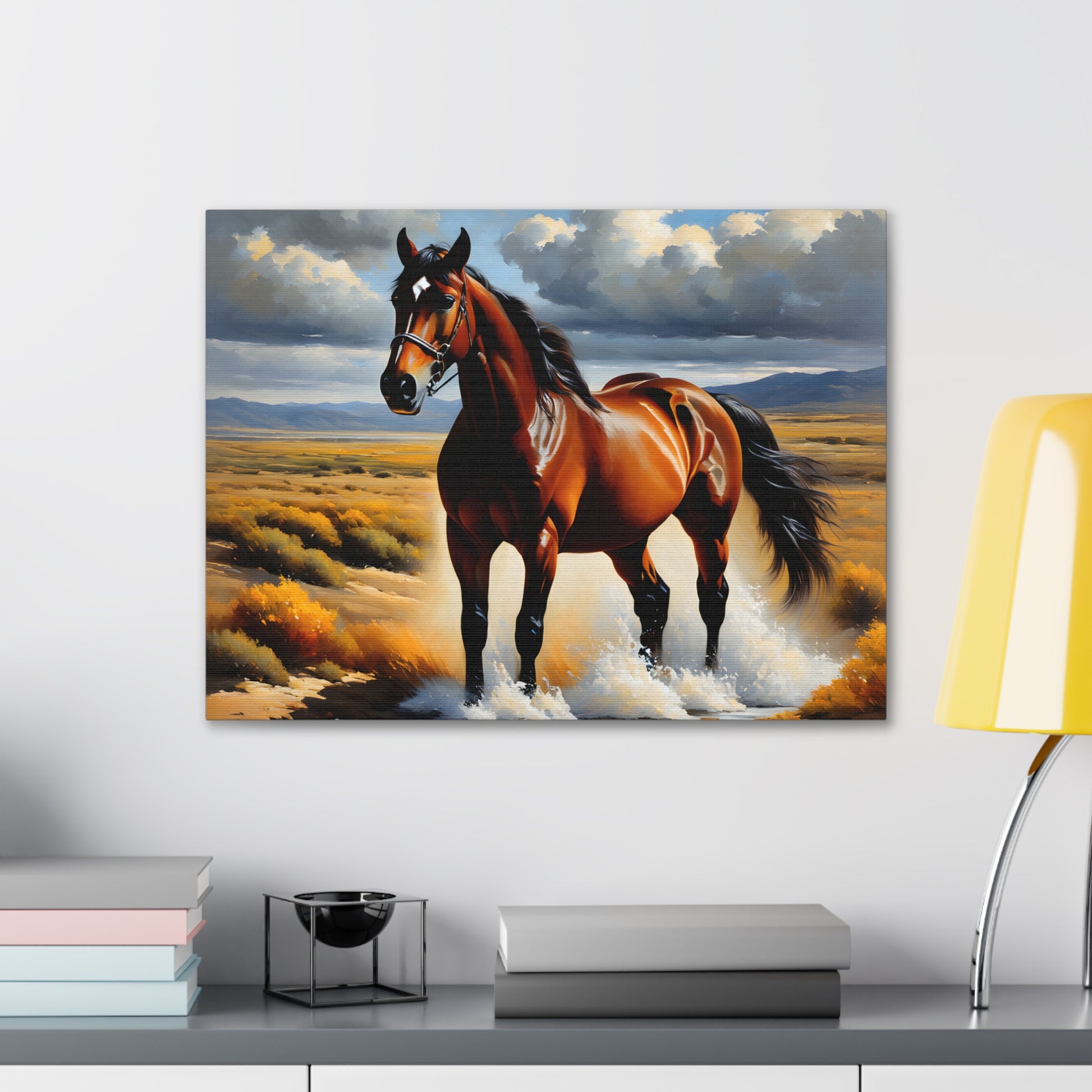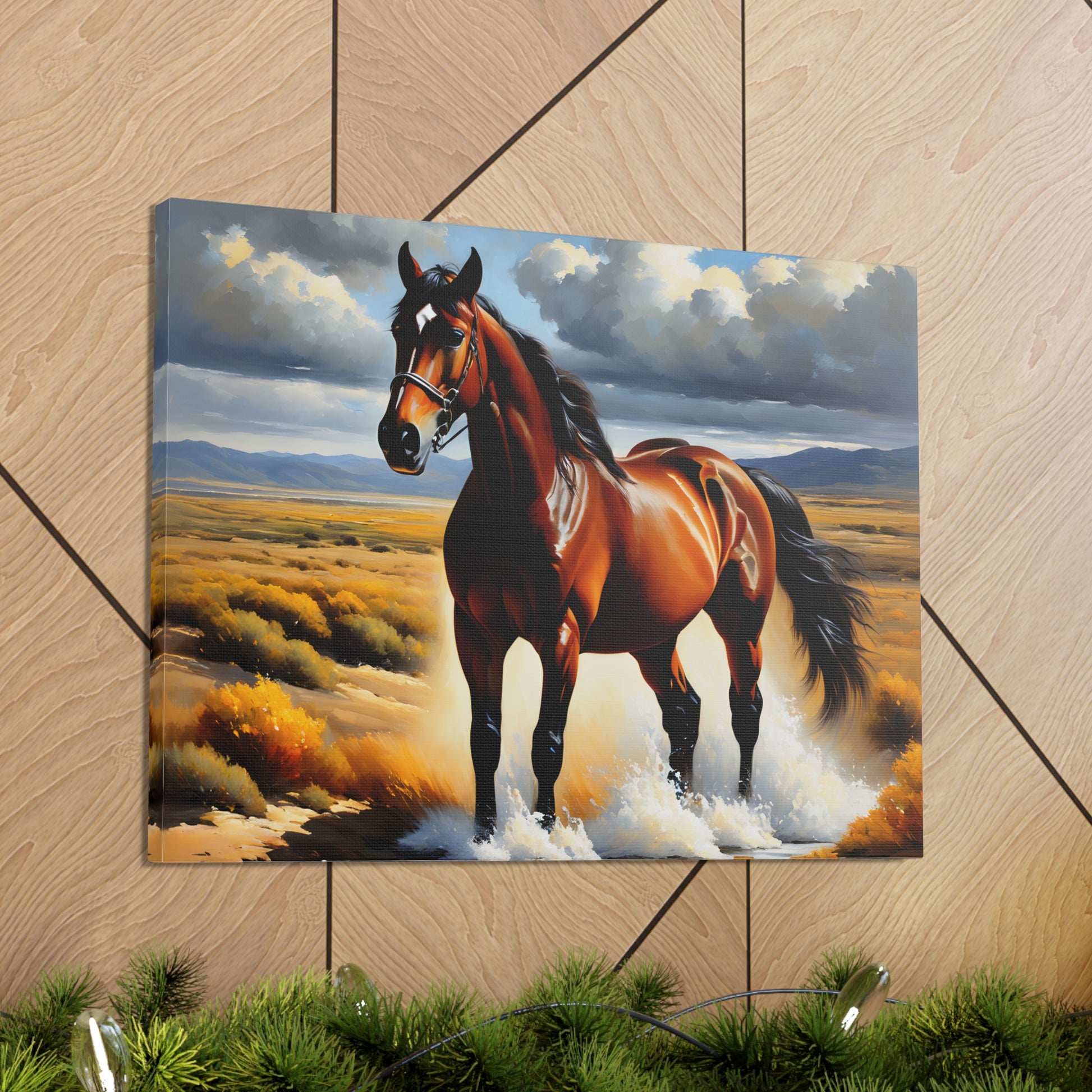 Unleash the spirit of the wild with "Radiant Steed," a mesmerizing canvas art piece capturing the majestic beauty of a horse in full stride. This stunning artwork is more than a mere portrayal; it's a testament to the grace, power, and radiance of these incredible creatures.