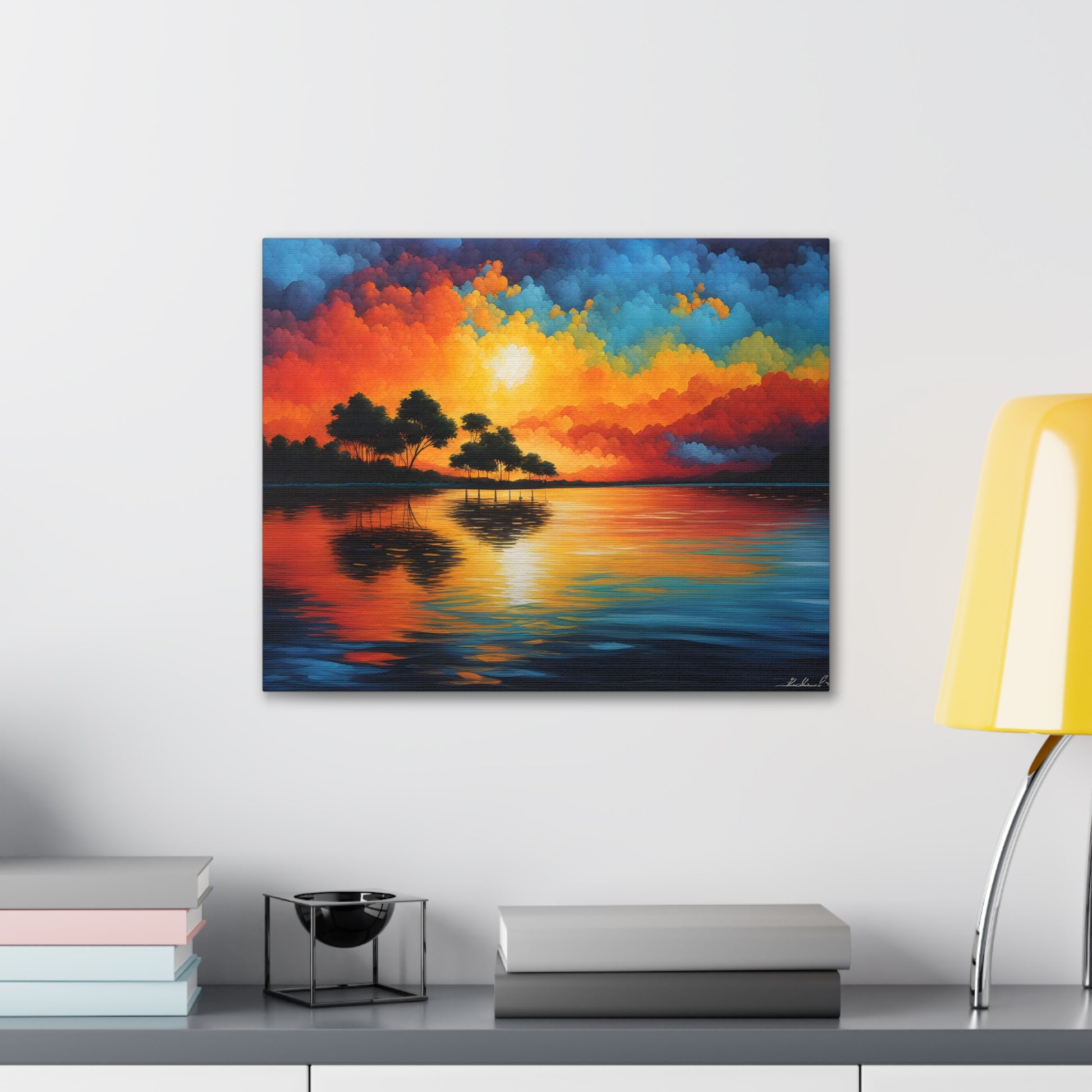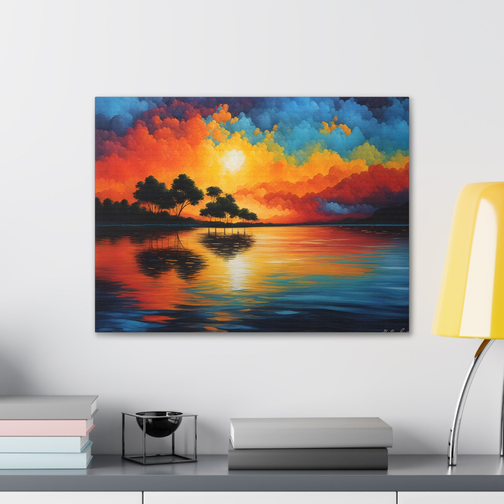 Immerse yourself in the harmonious beauty of "Resonant Reflections: Abstract Wall Décor." This artwork, printed on premium cotton canvas, features resonant patterns that echo with depth and emotion.