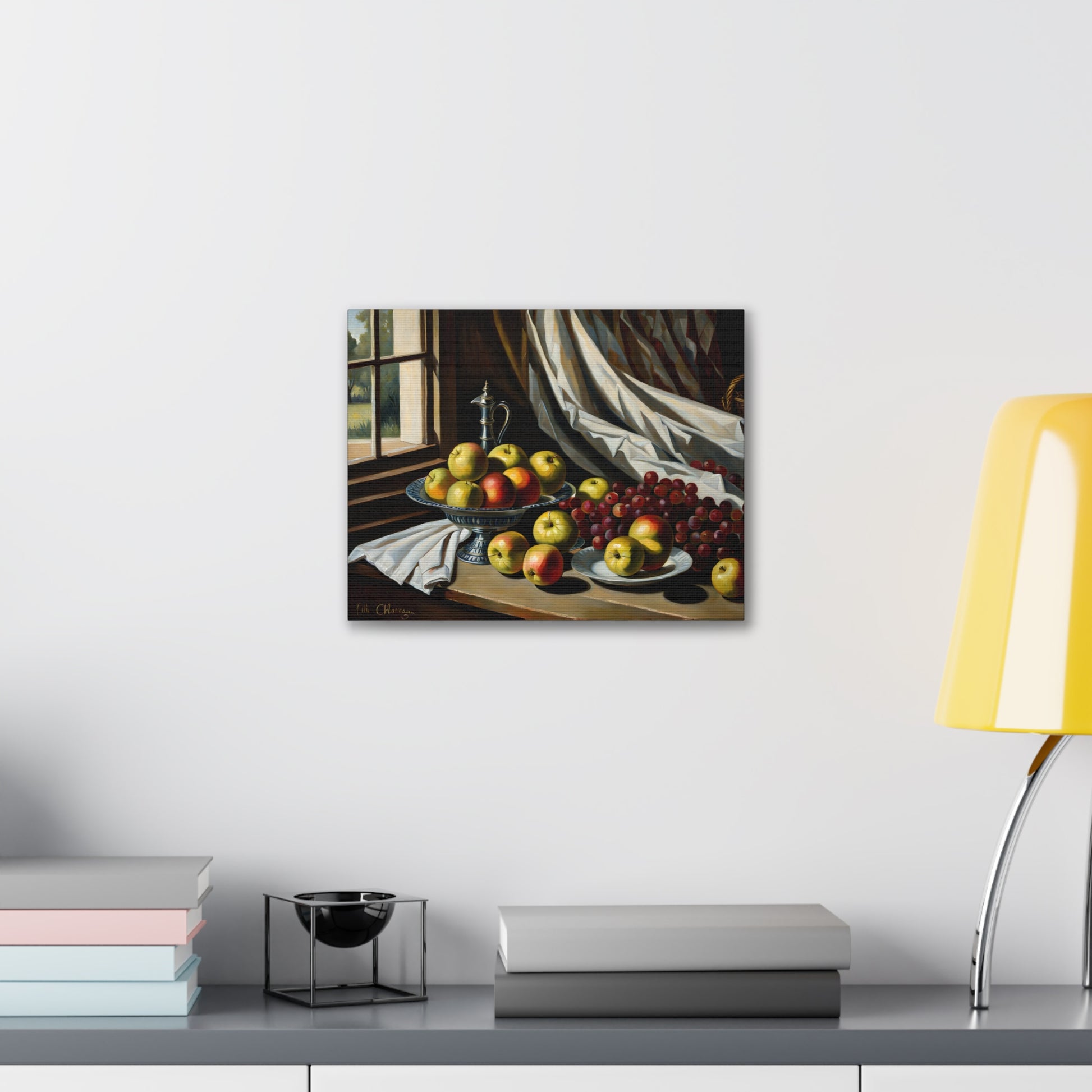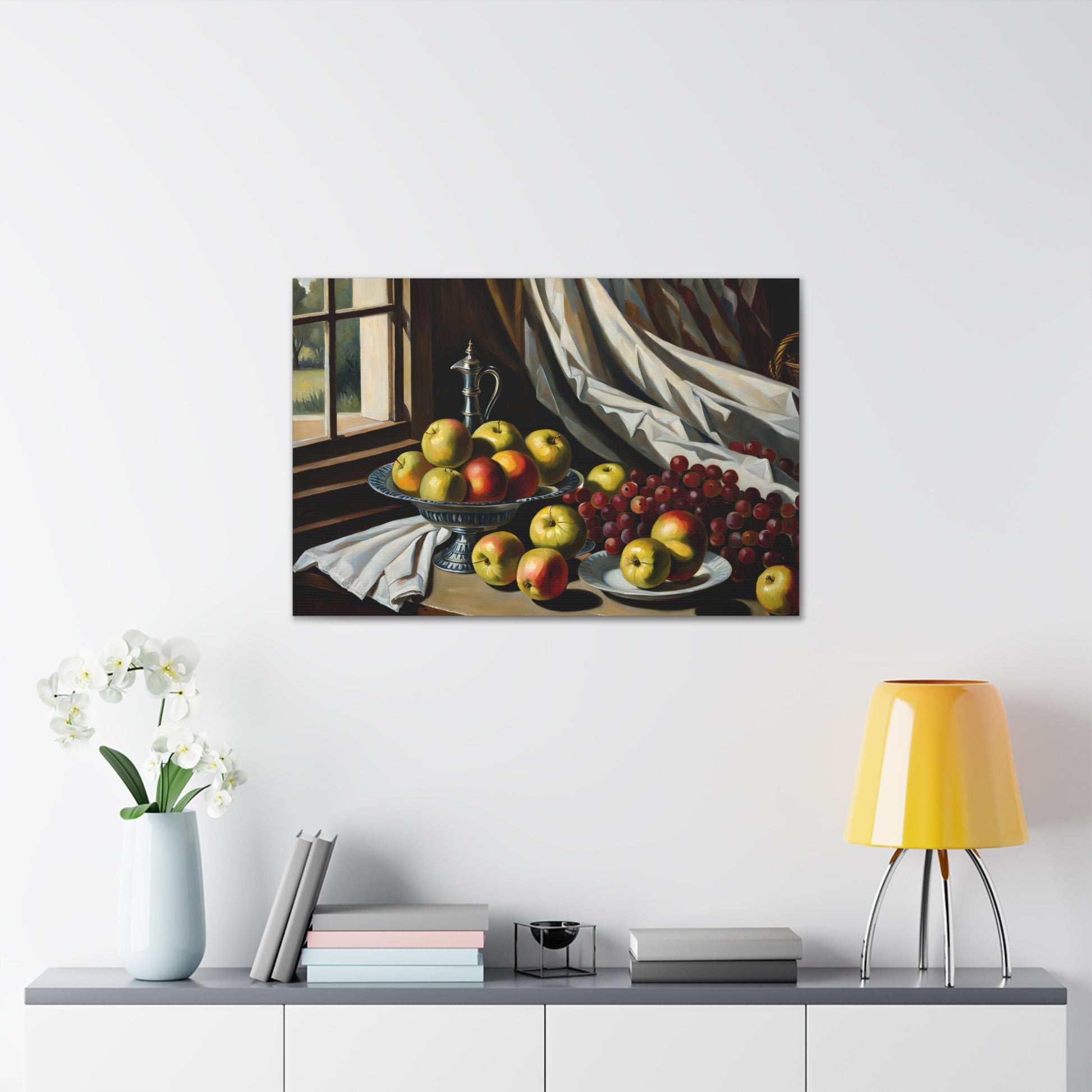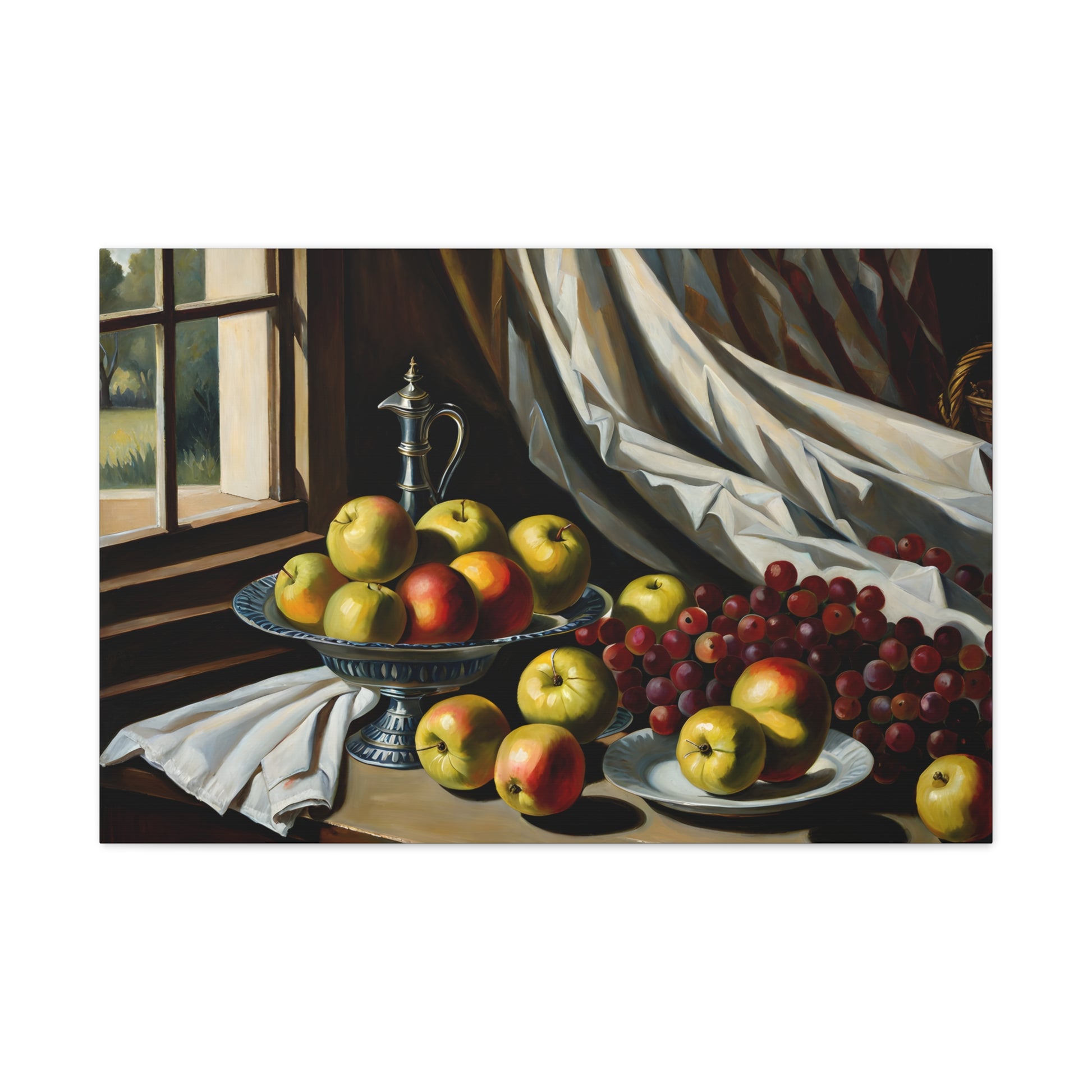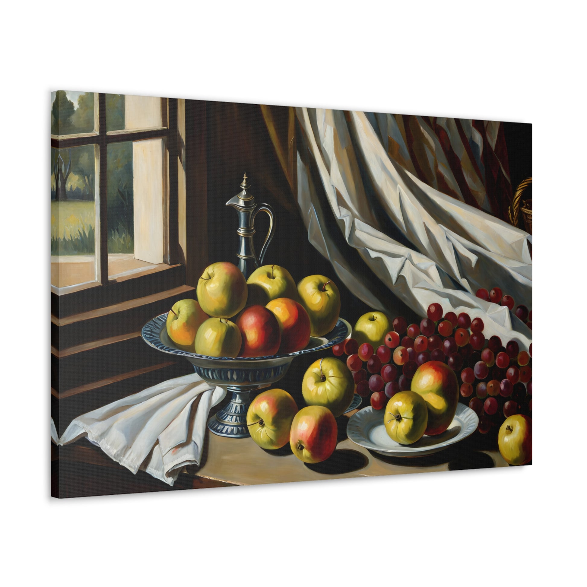 Bring a touch of classic still-life elegance into your home with Ripe Platter. Featuring a detailed arrangement of apples and grapes, this artwork is perfect for adding sophistication to your kitchen or dining room.