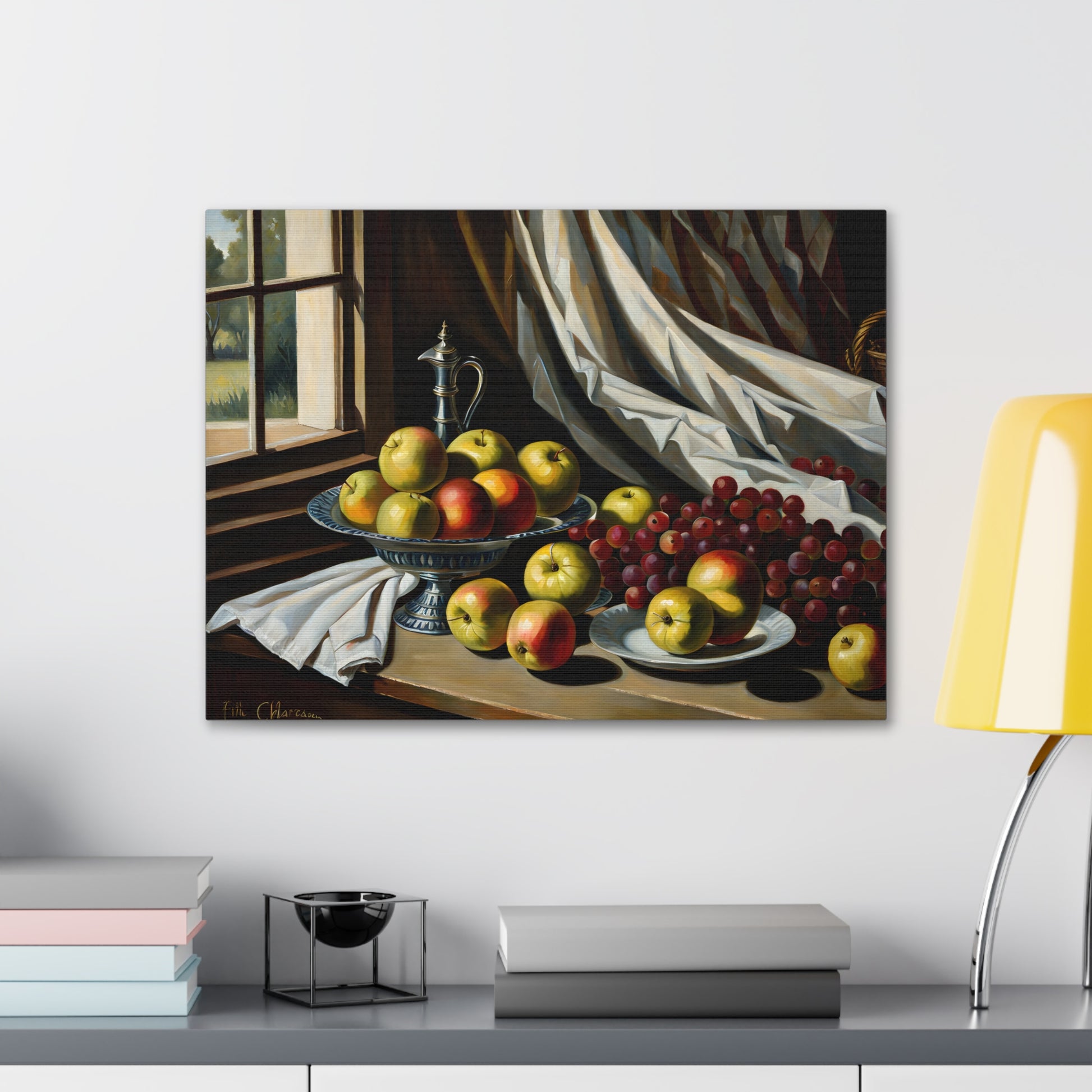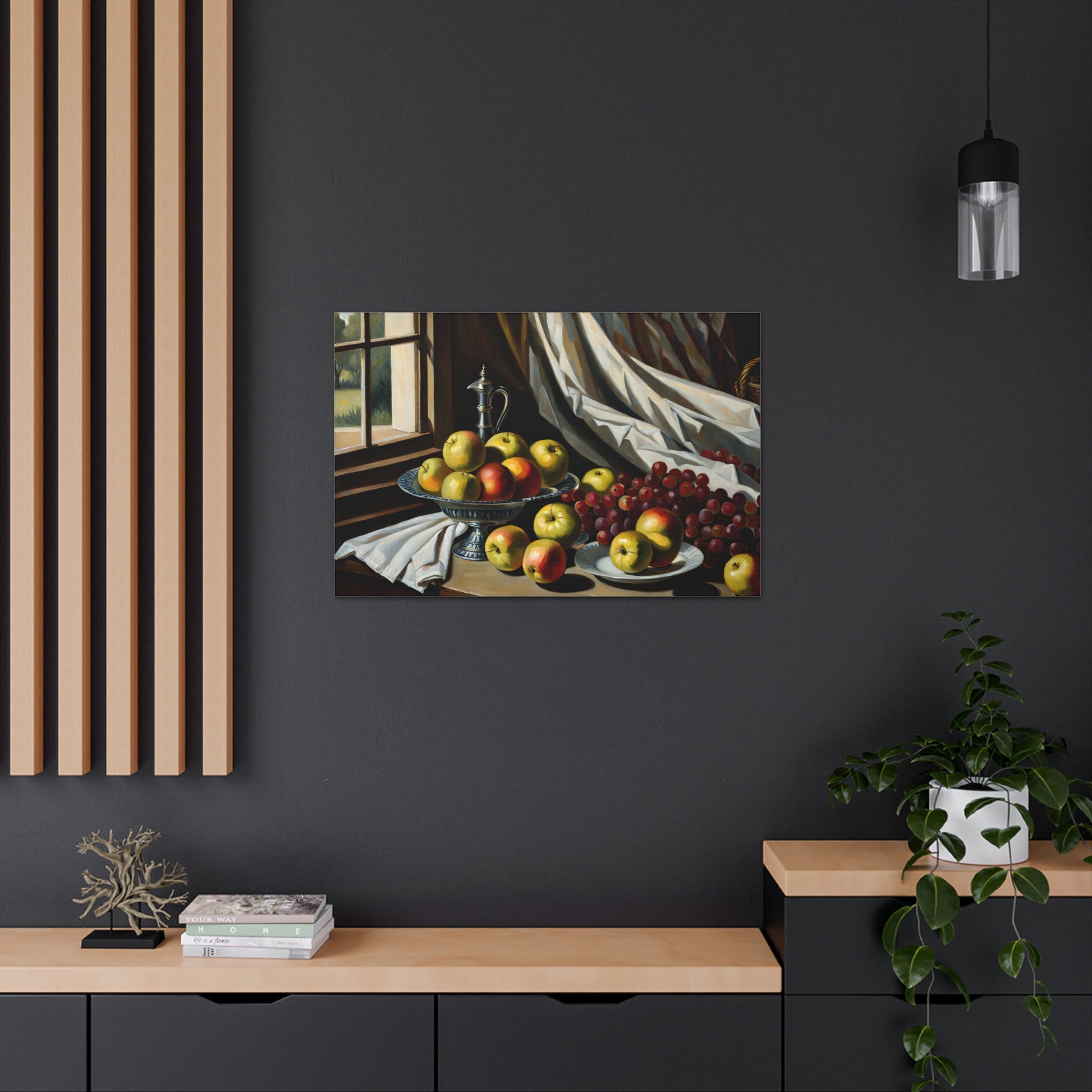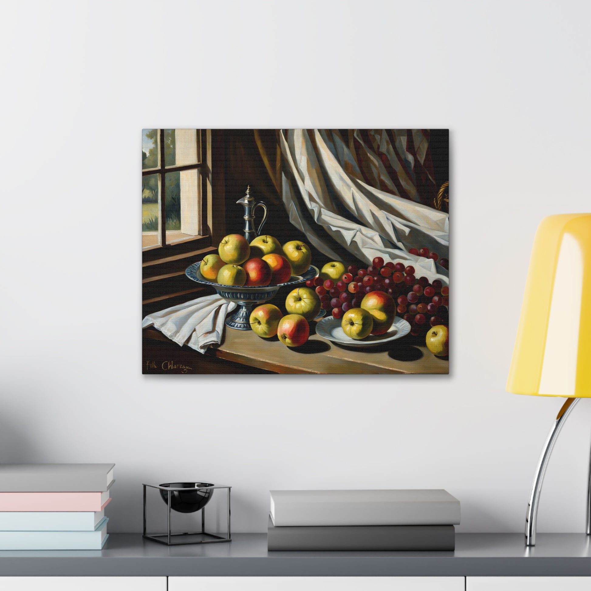 Bring a touch of classic still-life elegance into your home with Ripe Platter. Featuring a detailed arrangement of apples and grapes, this artwork is perfect for adding sophistication to your kitchen or dining room.