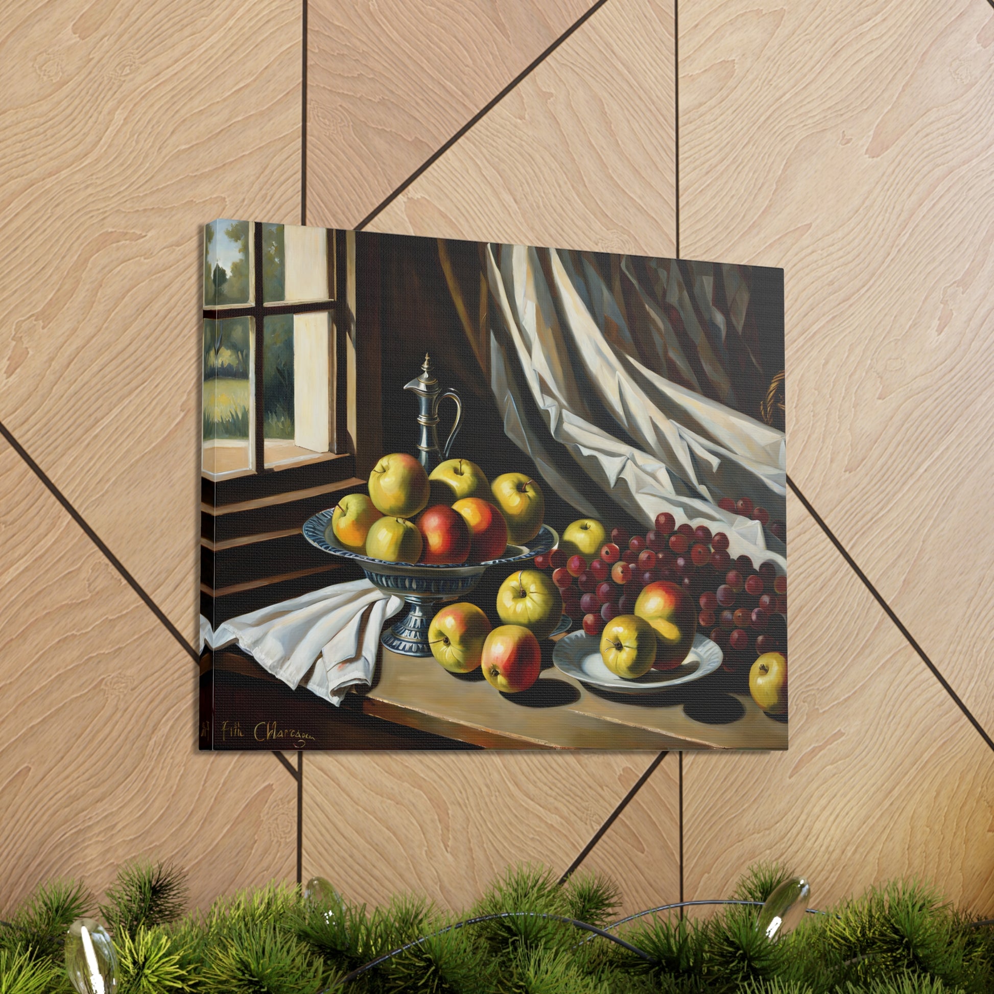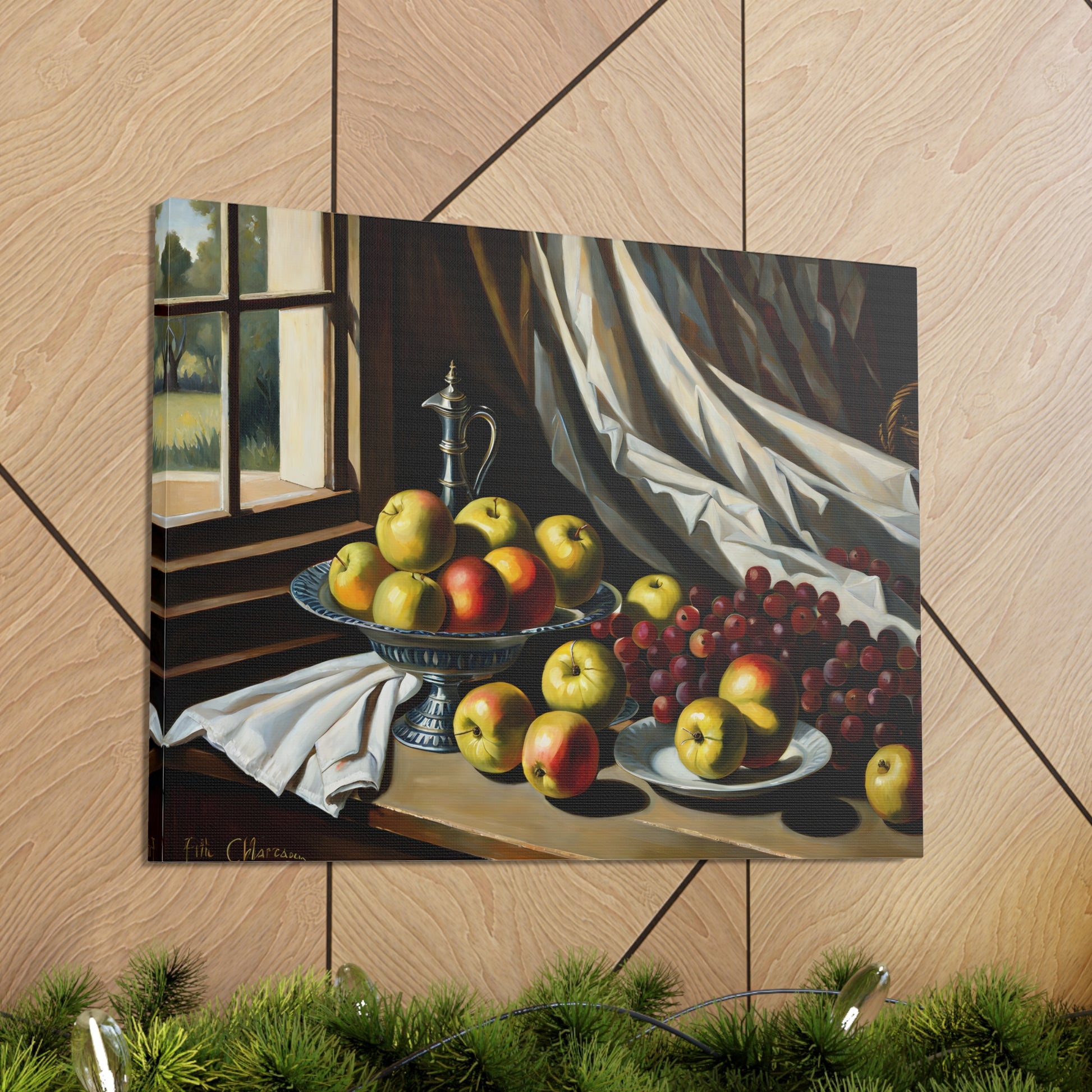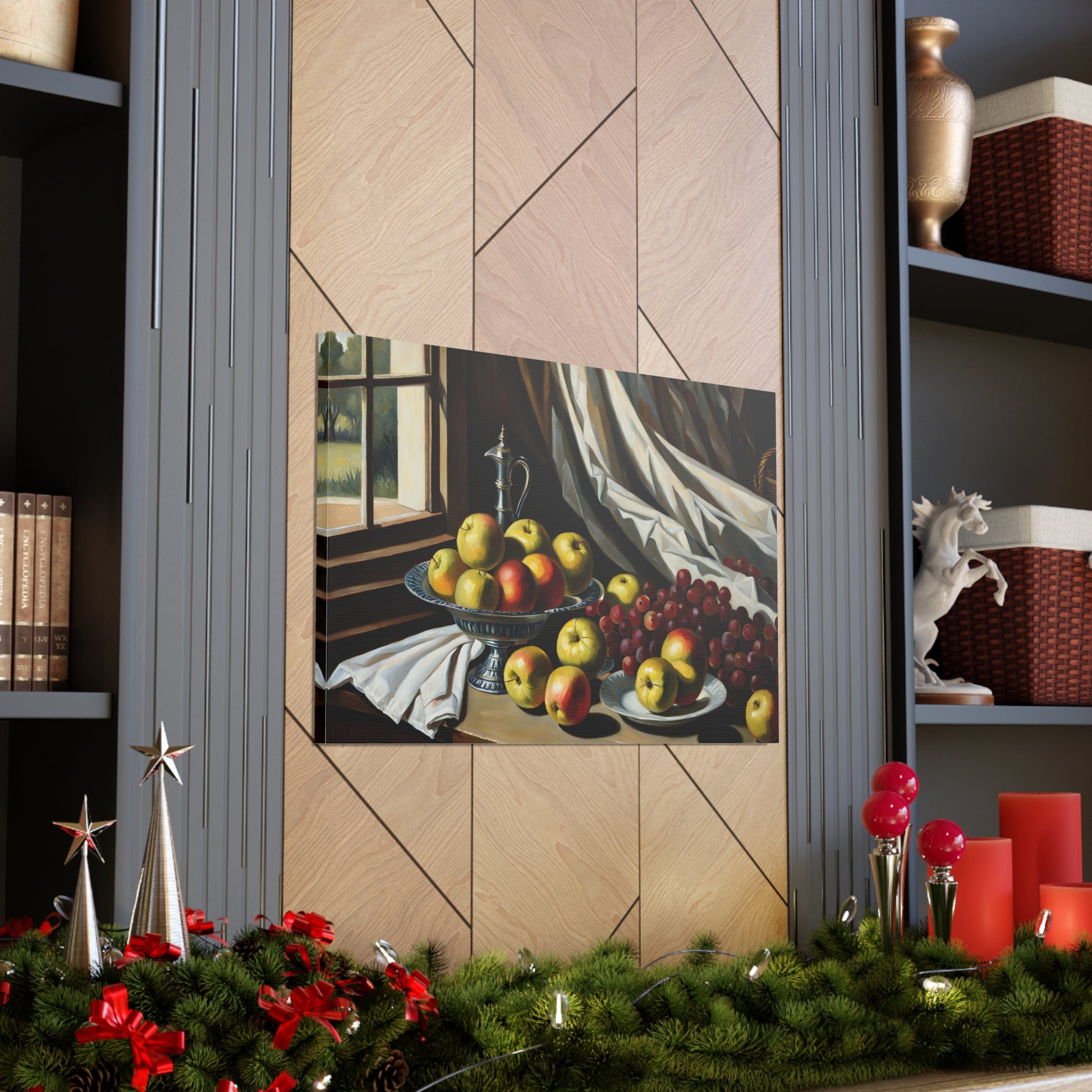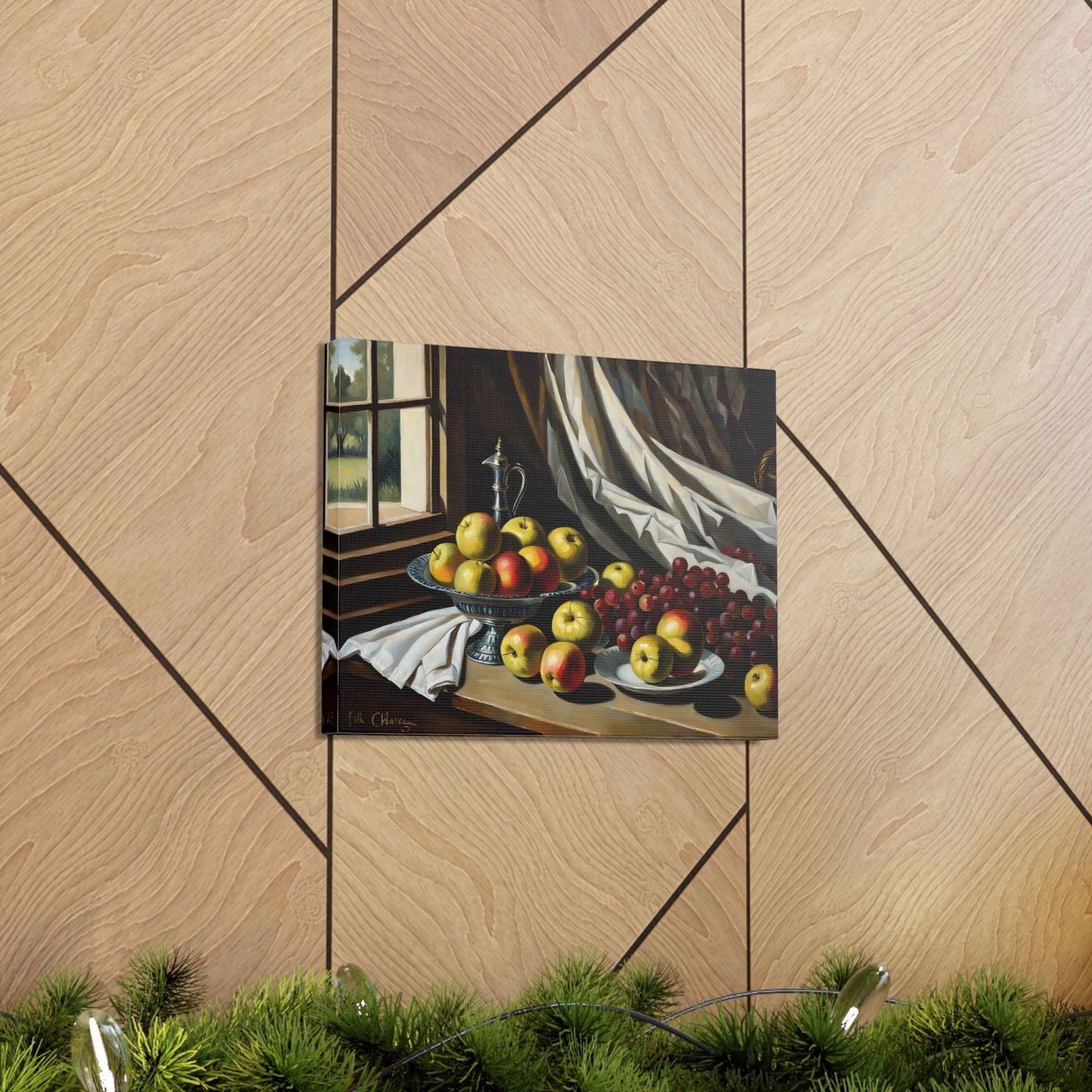 Bring a touch of classic still-life elegance into your home with Ripe Platter. Featuring a detailed arrangement of apples and grapes, this artwork is perfect for adding sophistication to your kitchen or dining room.