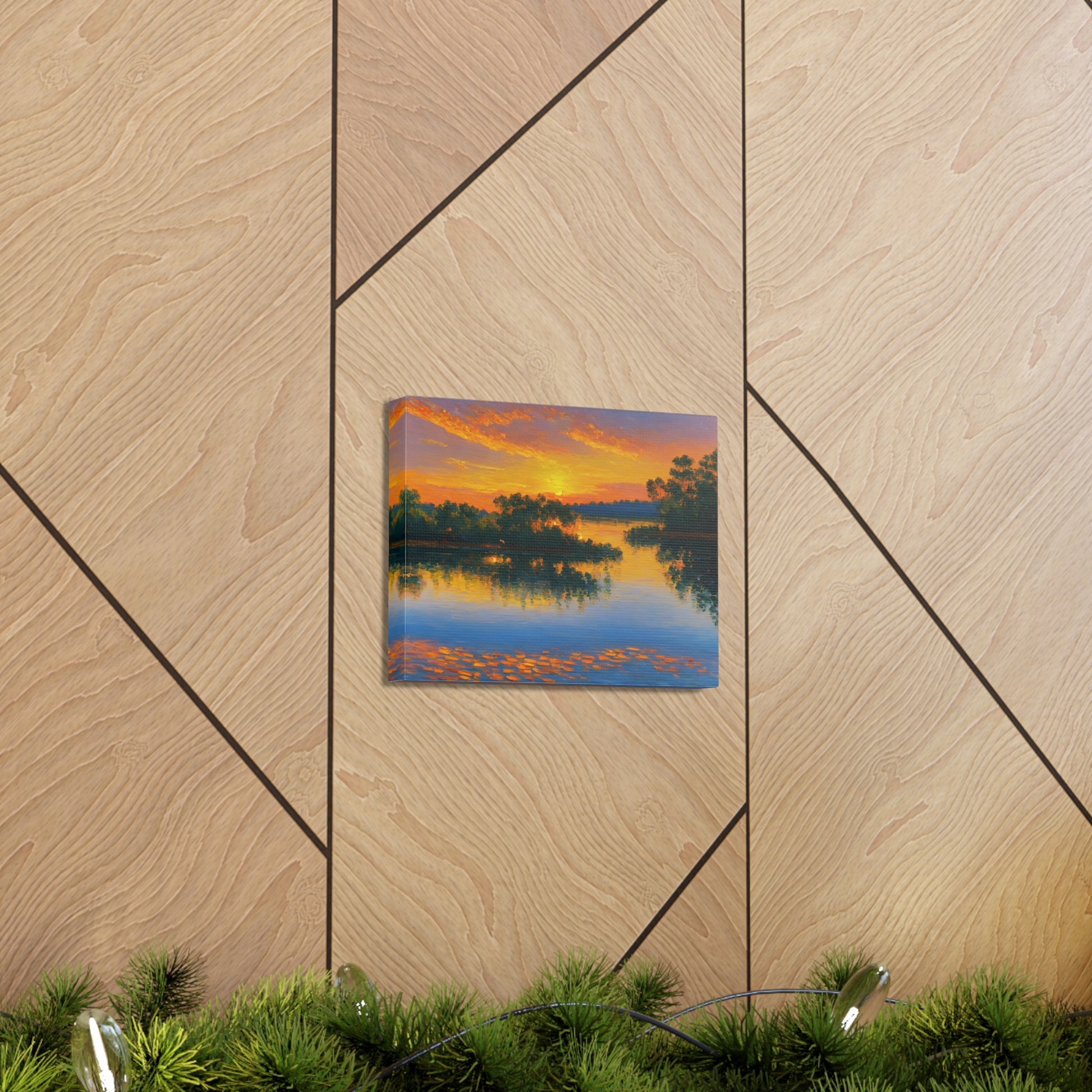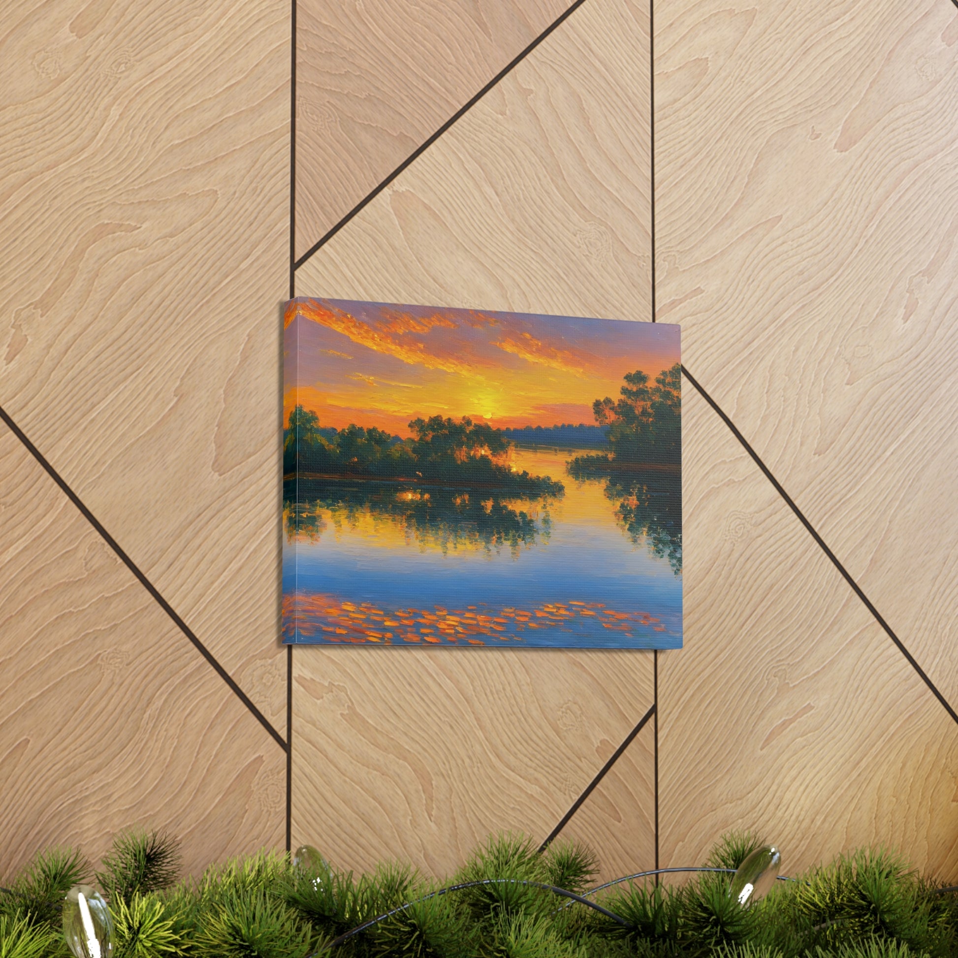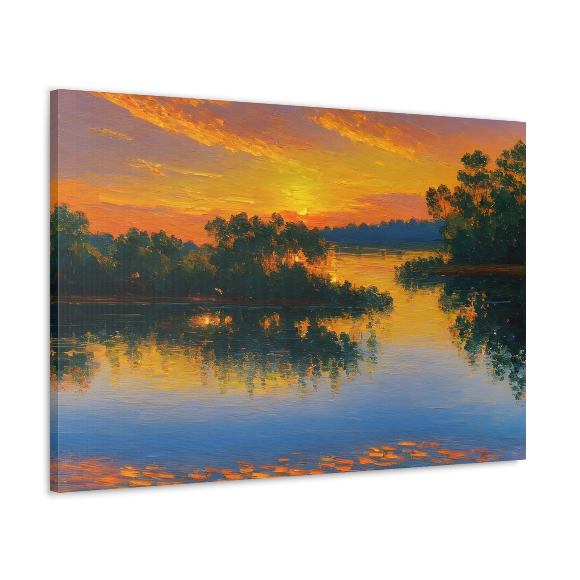 "Serene Lakeside" brings the calm beauty of nature into your home. The soft colors of a setting sun reflecting on the lake make this artwork ideal for creating a peaceful environment indoors.