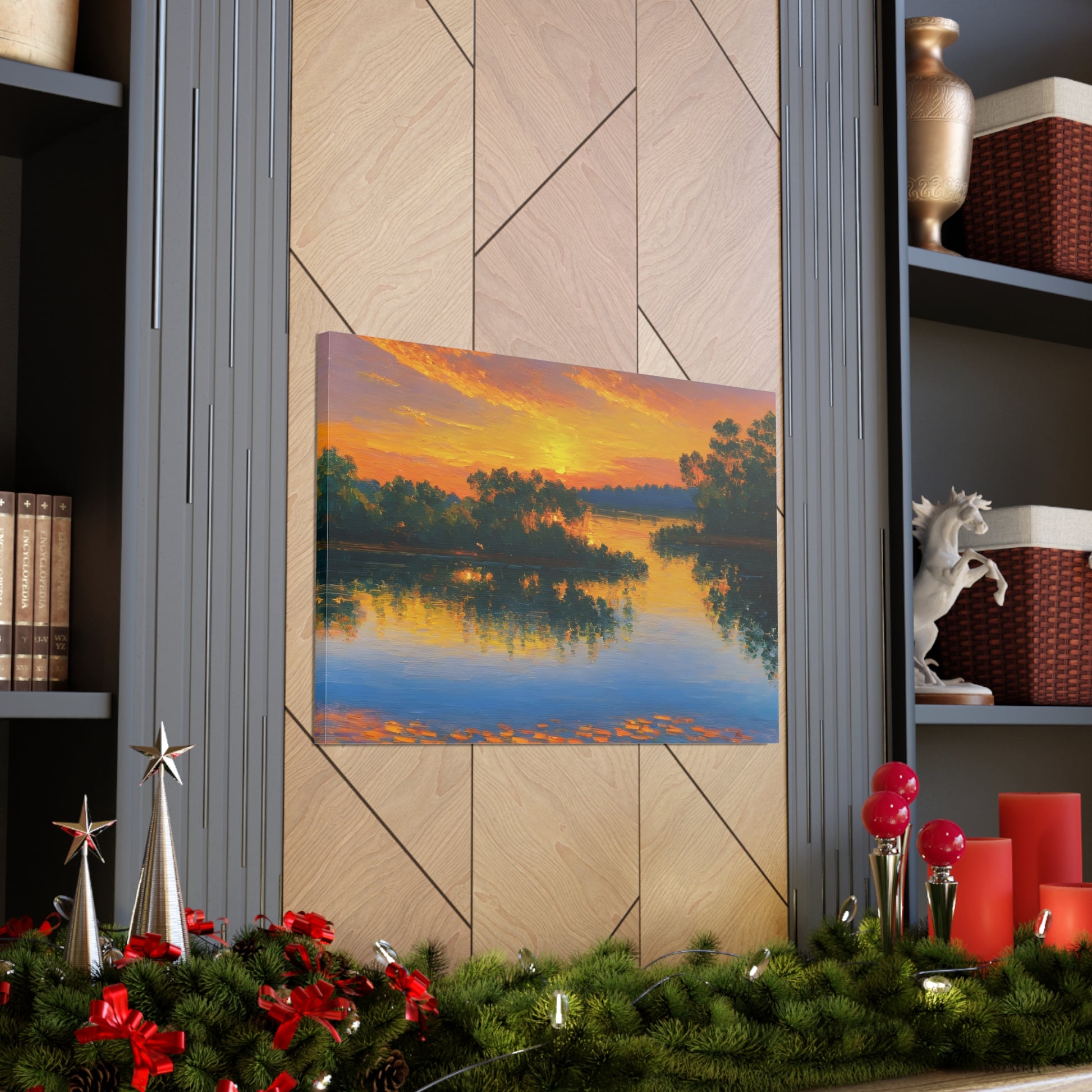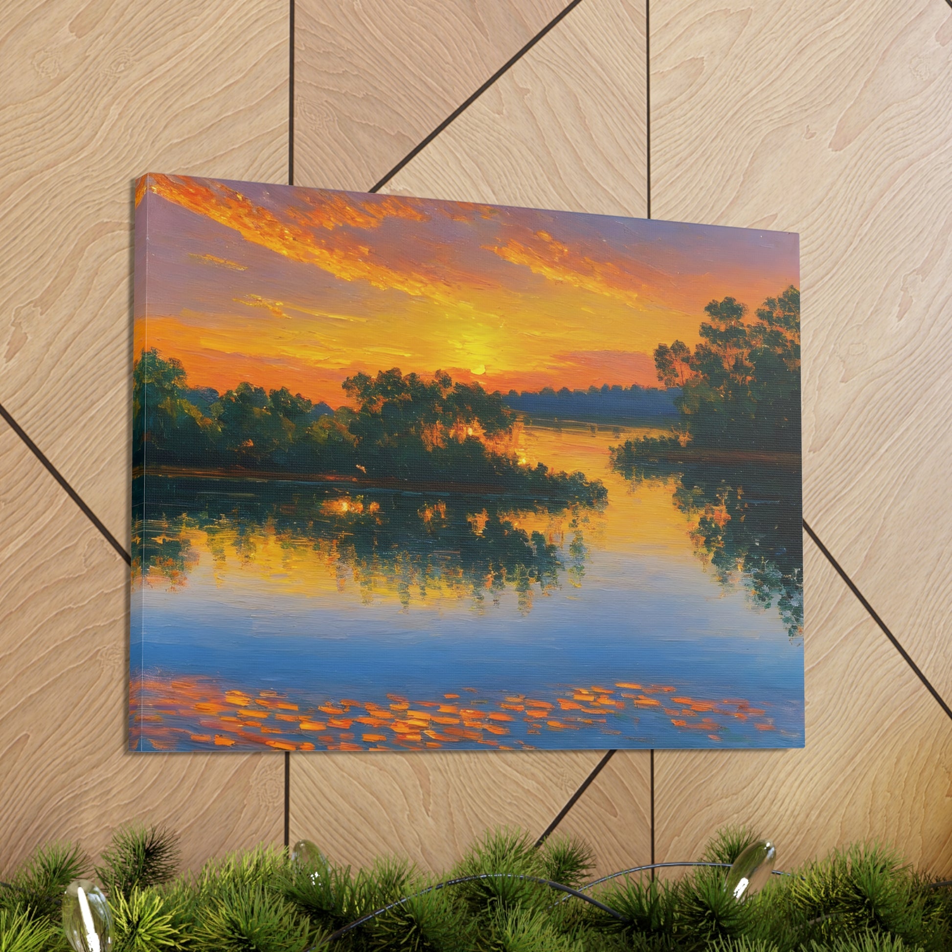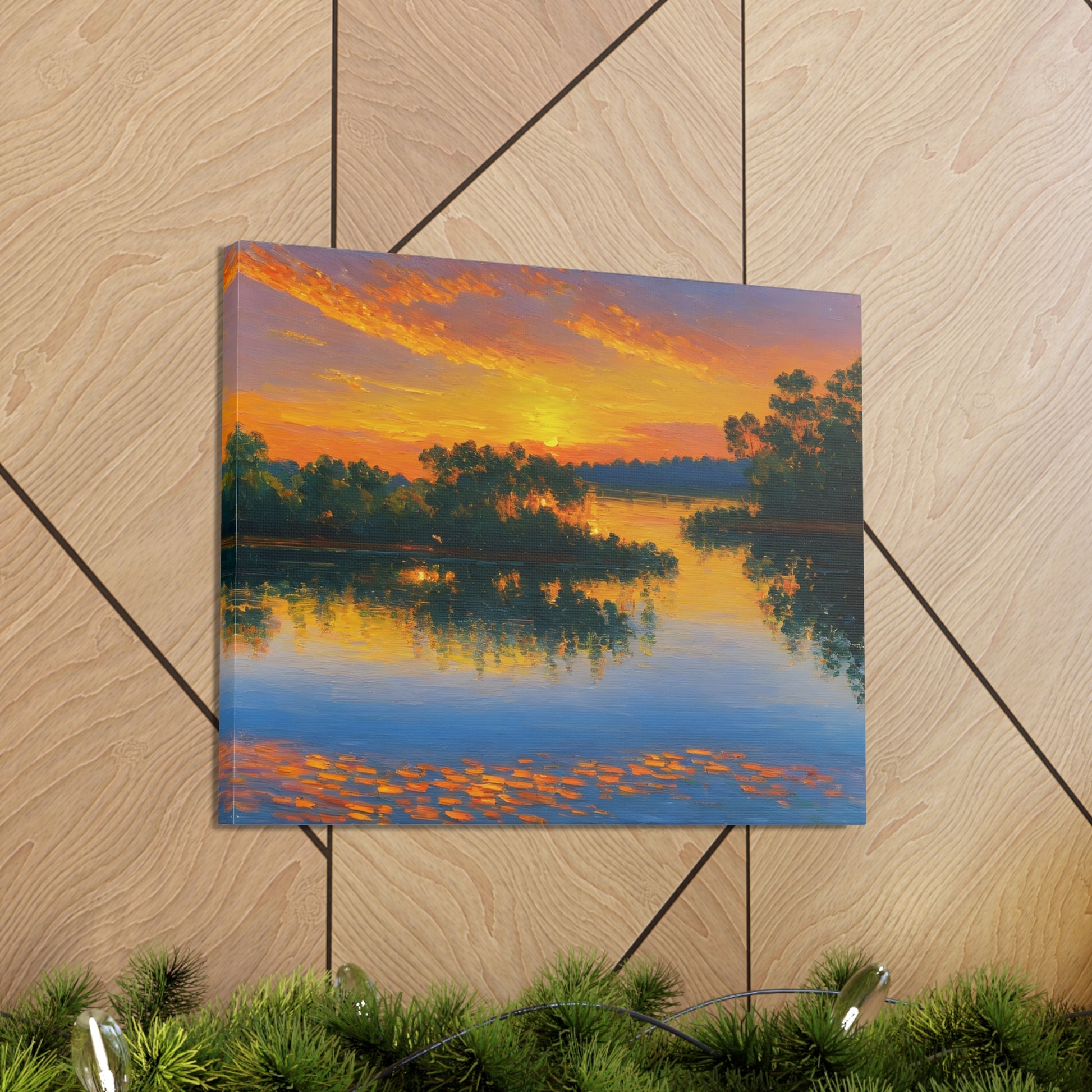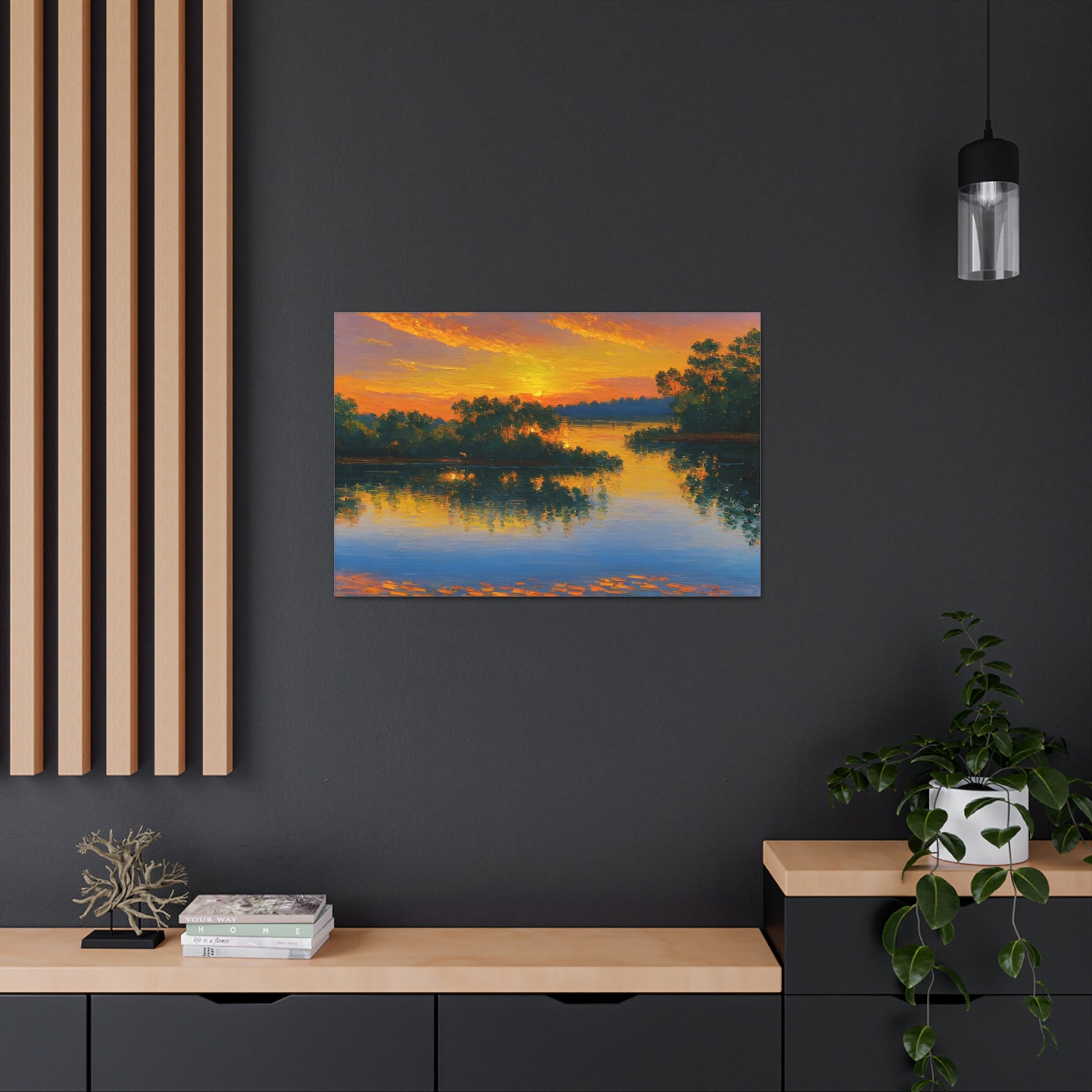 "Serene Lakeside" brings the calm beauty of nature into your home. The soft colors of a setting sun reflecting on the lake make this artwork ideal for creating a peaceful environment indoors.