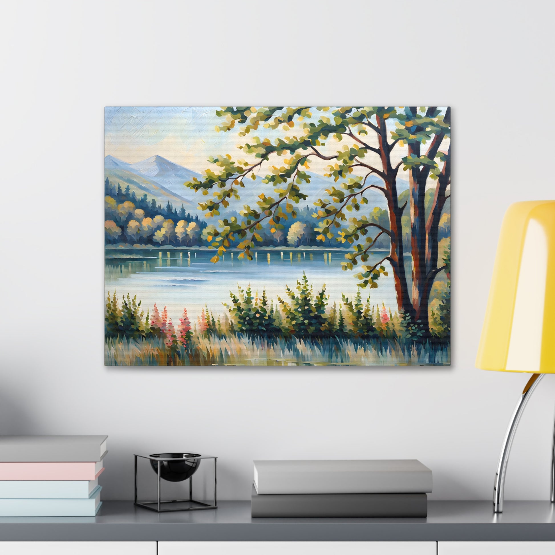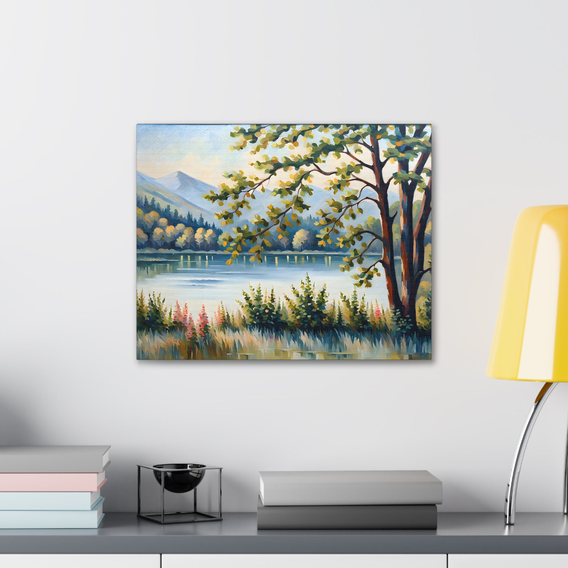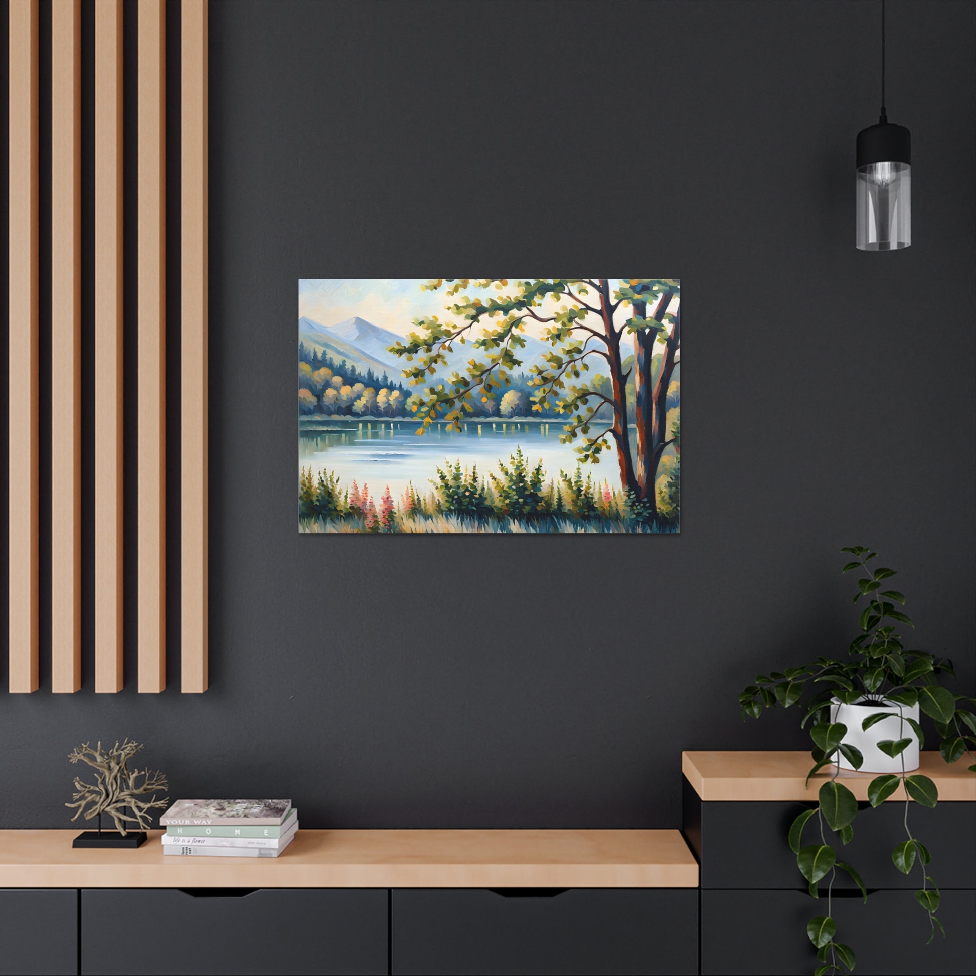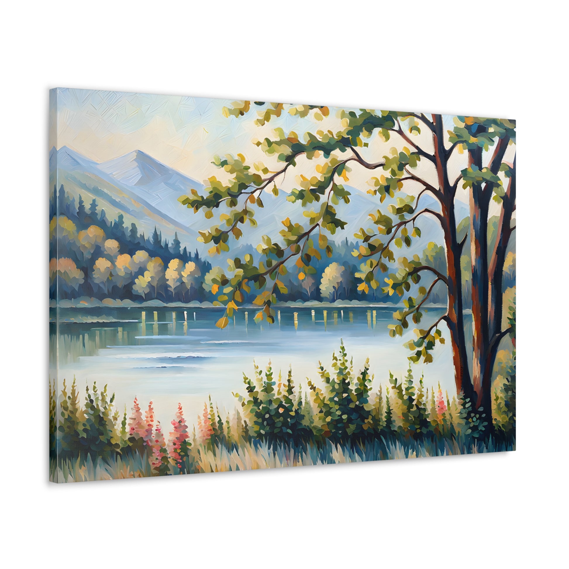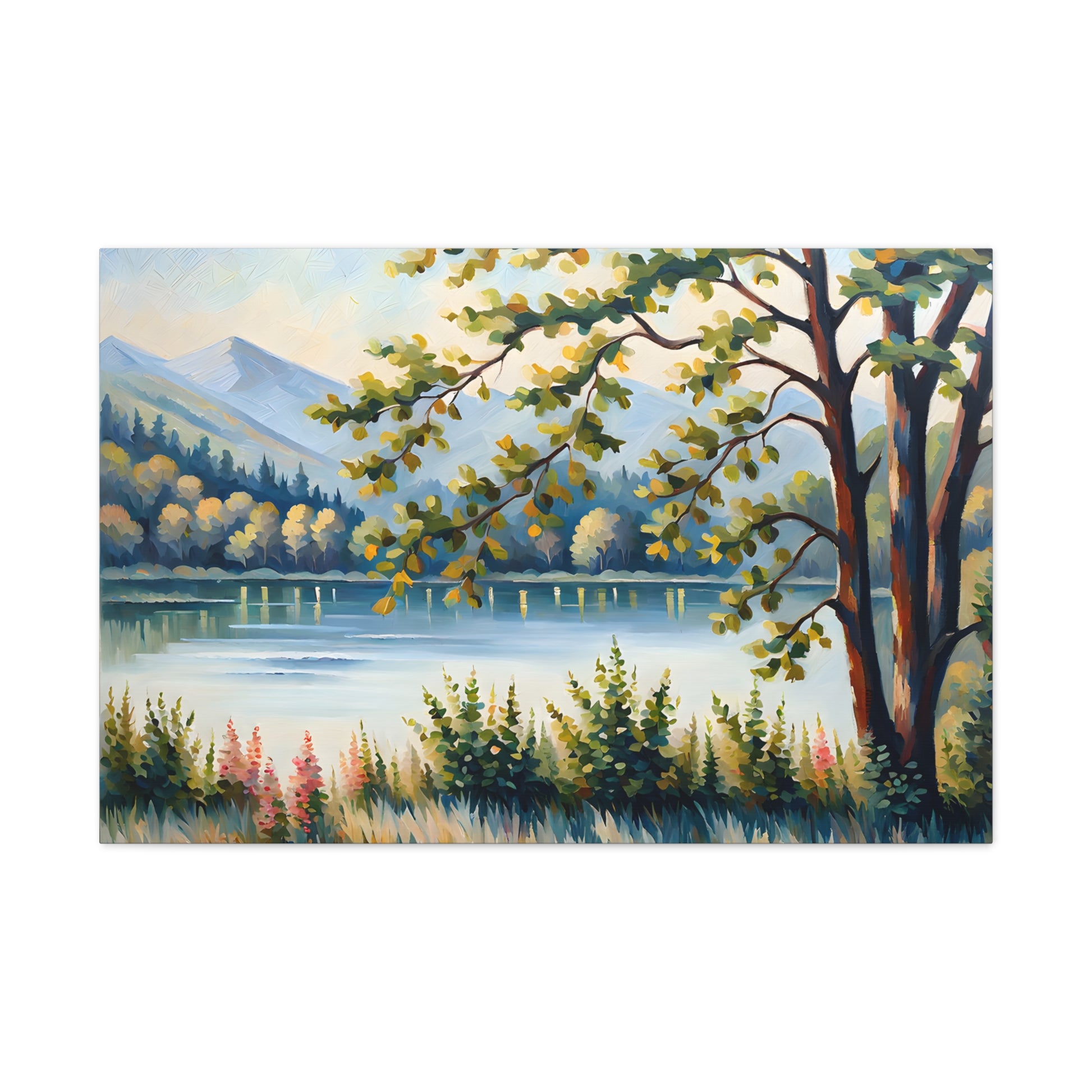 Escape to the calm of the countryside with "Serene Pastures." This oil painting on cotton canvas beautifully portrays a pastoral landscape bathed in soft sunlight, perfect for adding a sense of peacefulness to any indoor space.
