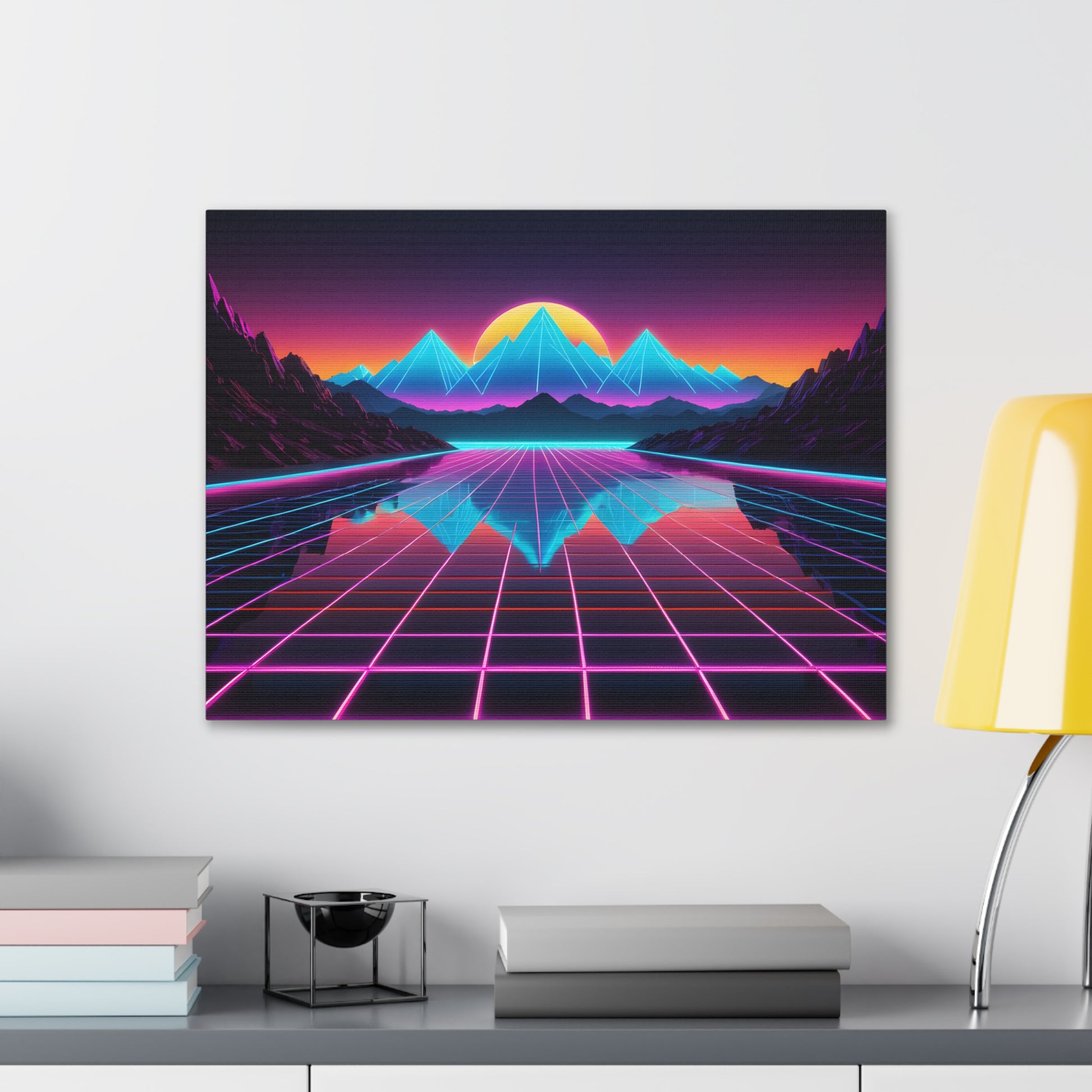 Immerse your surroundings in the neon glow of "Skyline Dreams: Outrun Wall Décor." Let this iconic artwork be the focal point, bringing the pulsating energy of the 80s into your home or office.