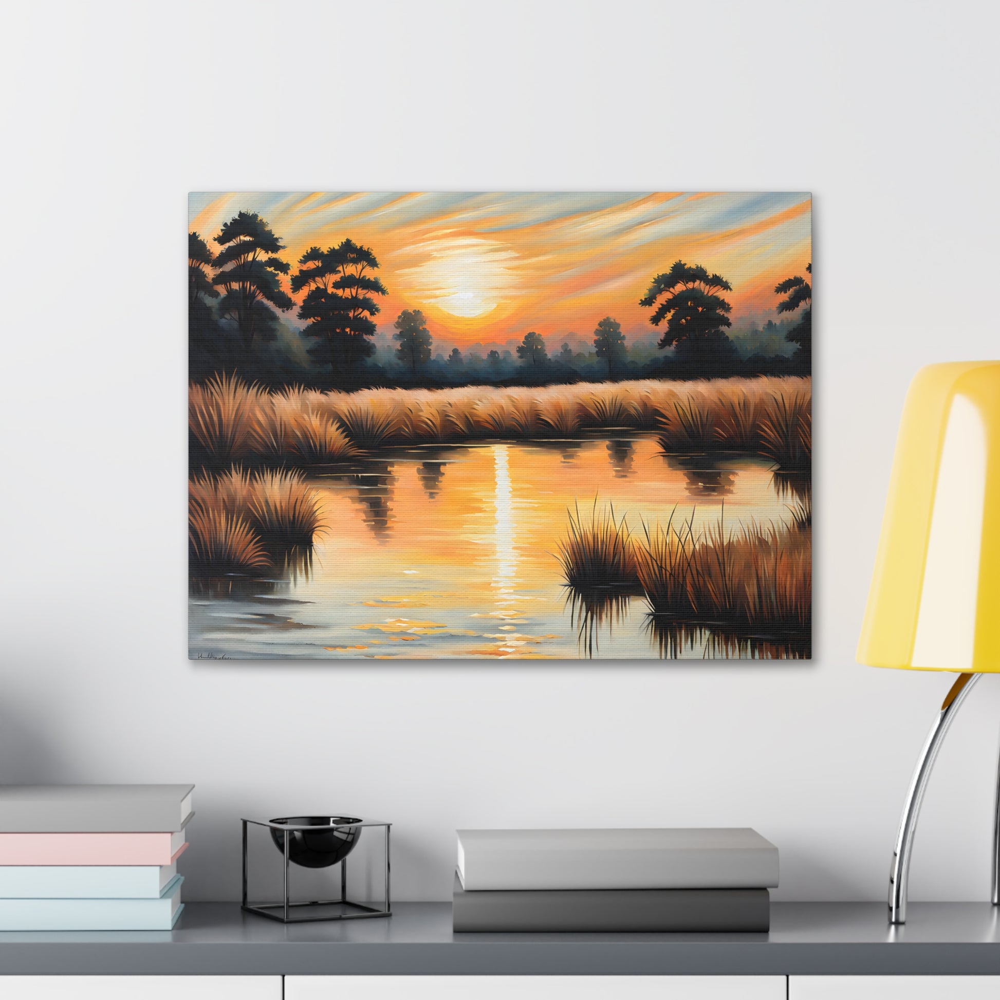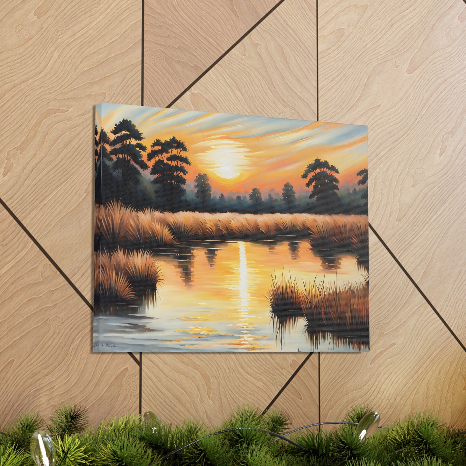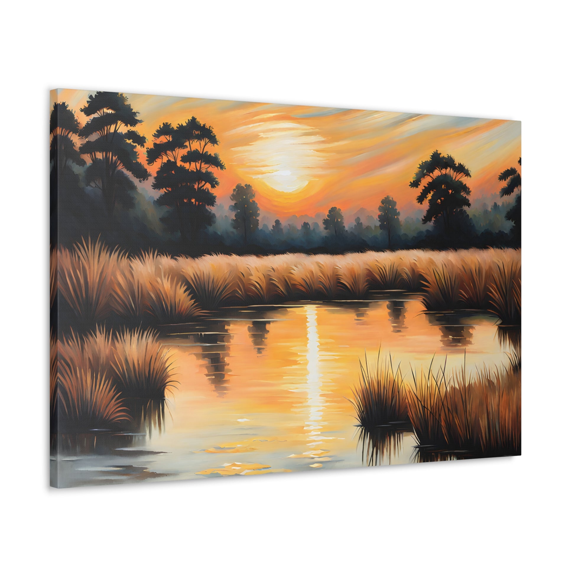 "Sunlit Brook" captures the serene beauty of a stream illuminated by the soft glow of the sun. Painted on cotton canvas, this classic oil painting brings a calming and peaceful natural scene into your home, ideal for indoor use.