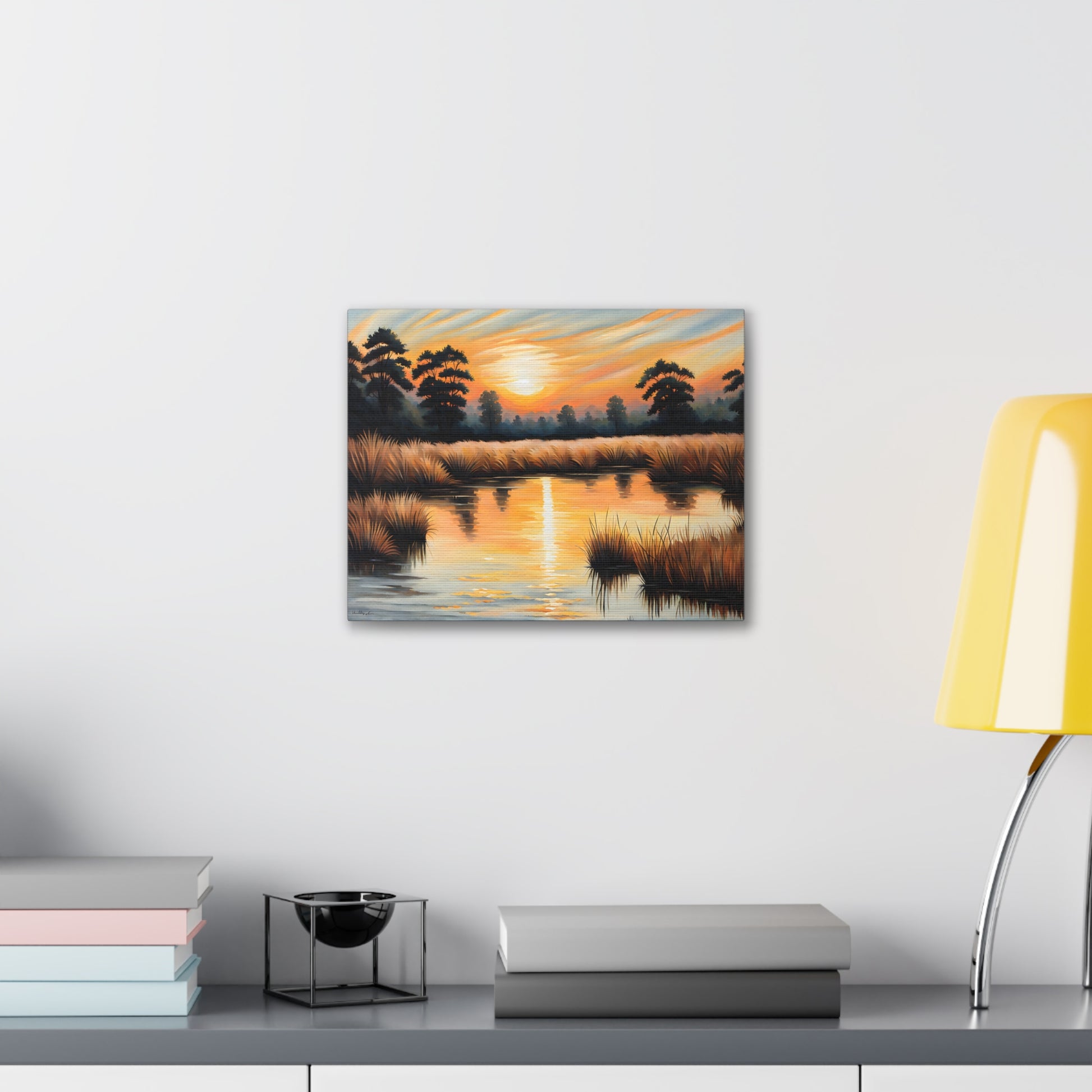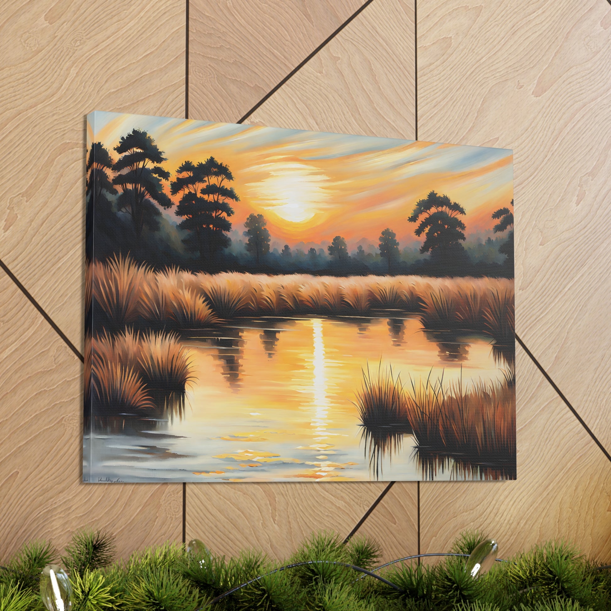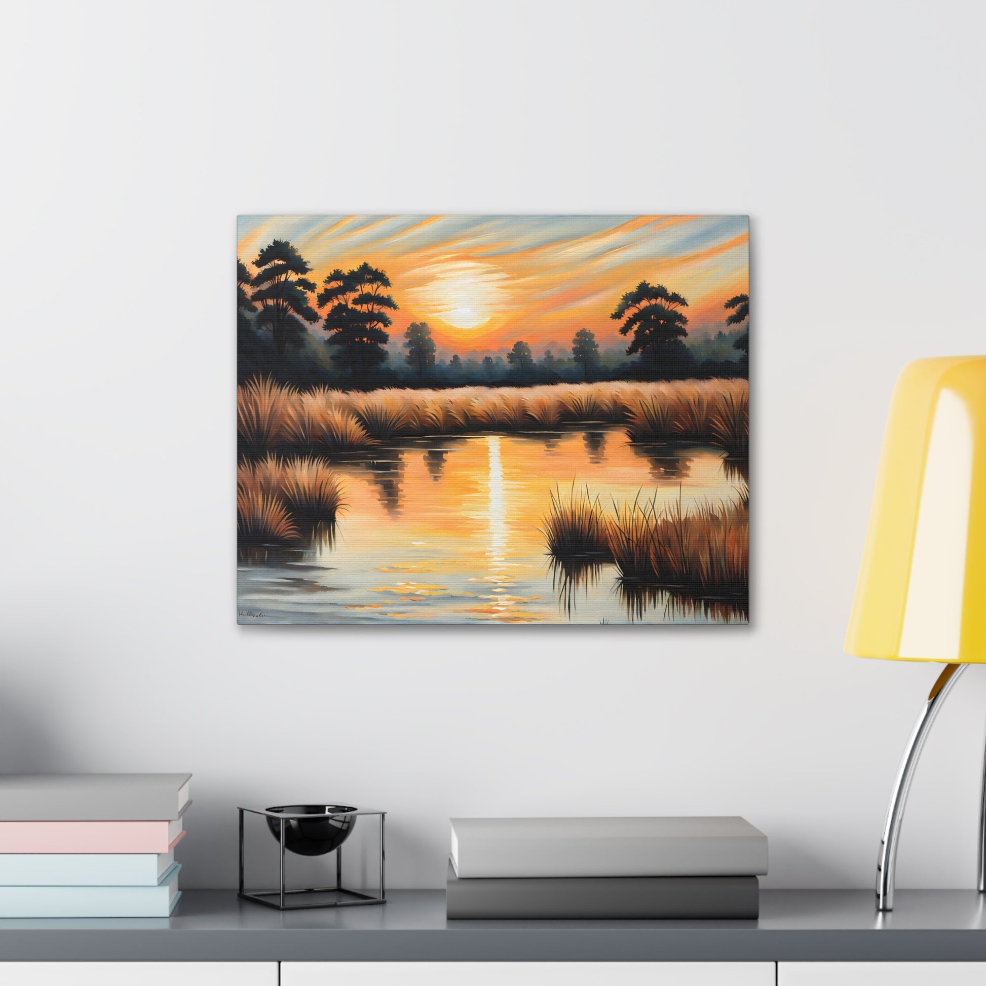 "Sunlit Brook" captures the serene beauty of a stream illuminated by the soft glow of the sun. Painted on cotton canvas, this classic oil painting brings a calming and peaceful natural scene into your home, ideal for indoor use.