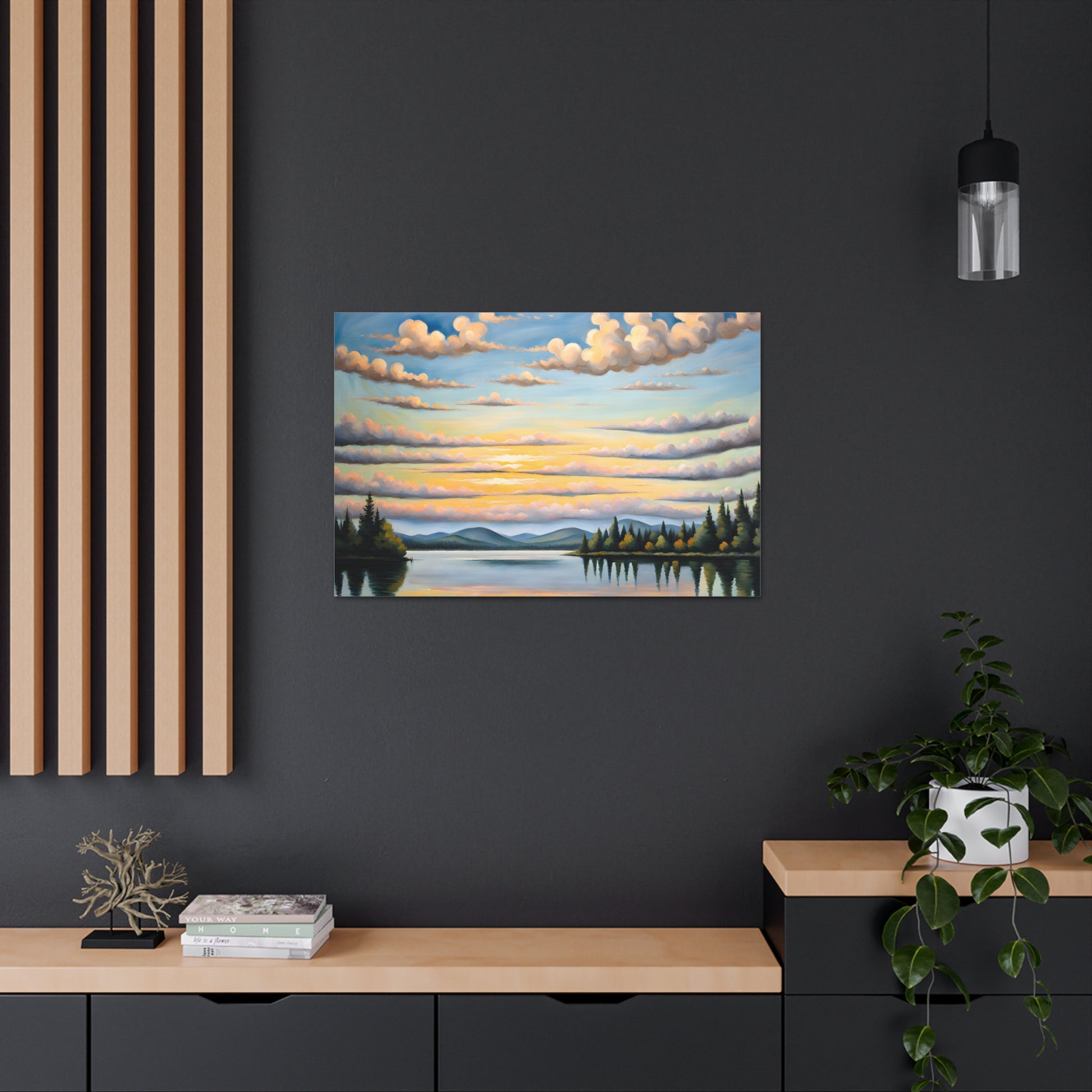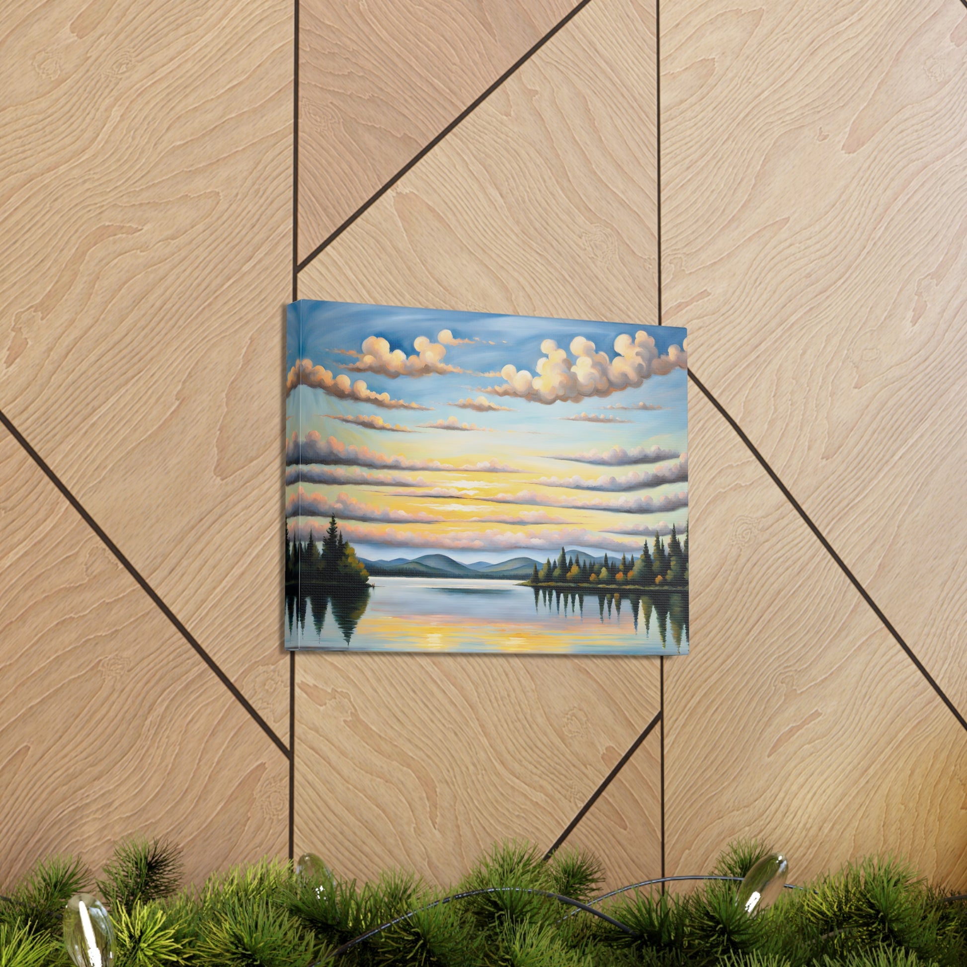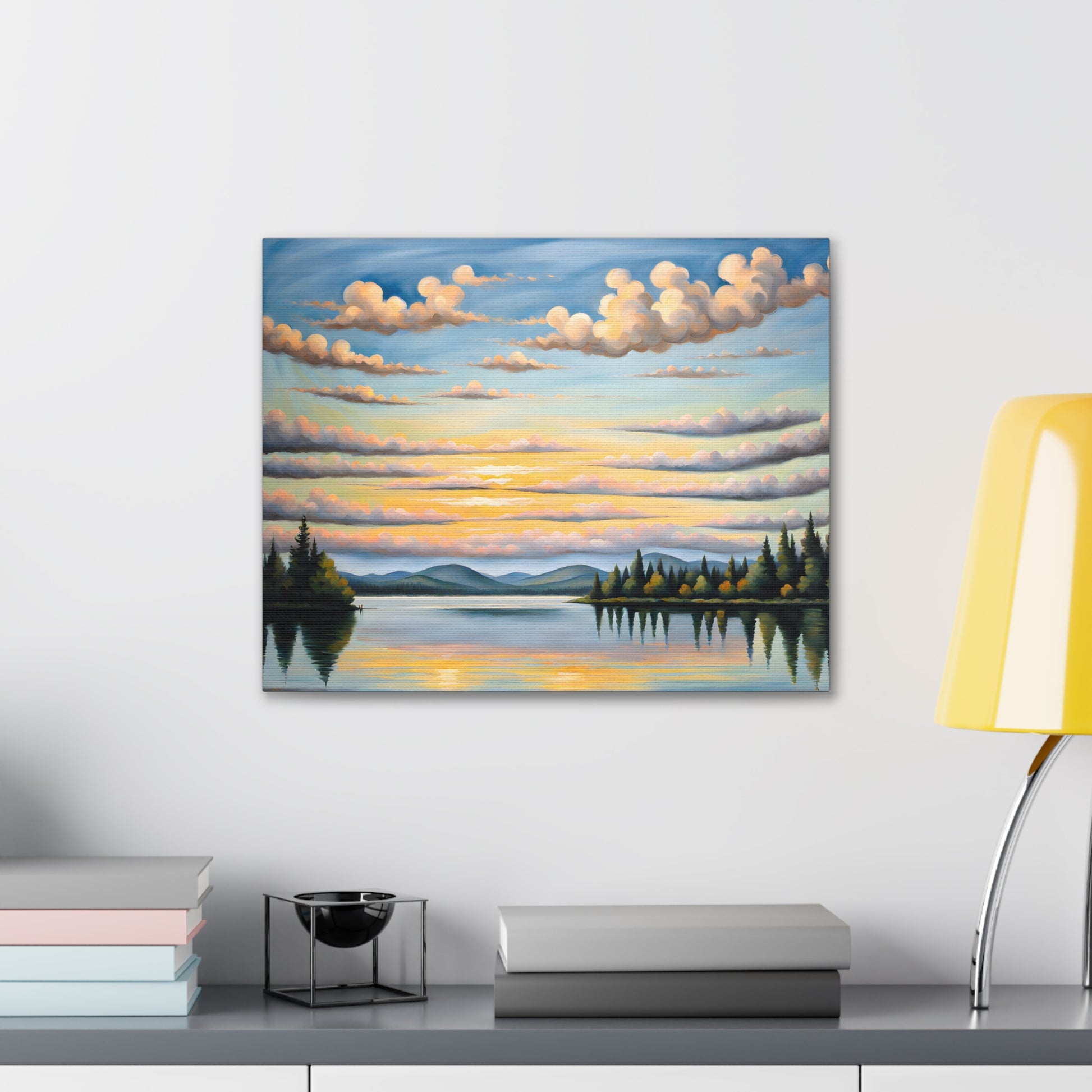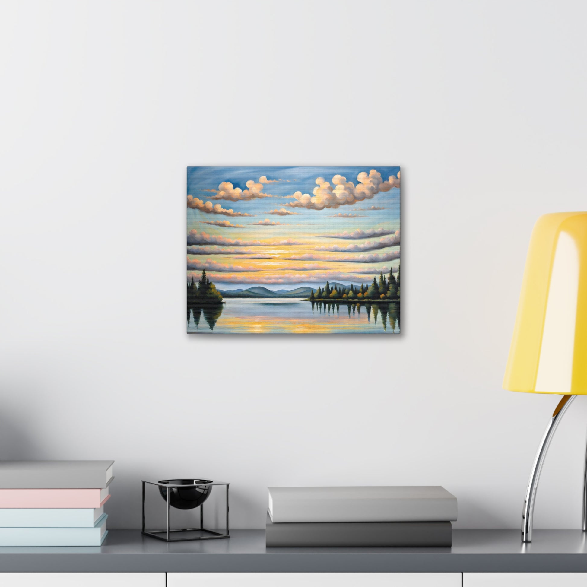 Bathe in the golden hues of Sunset Ridge, a tranquil landscape painting that captures the beauty of rolling hills at sunset. The delicate brushwork on cotton canvas brings this serene scene to life.
