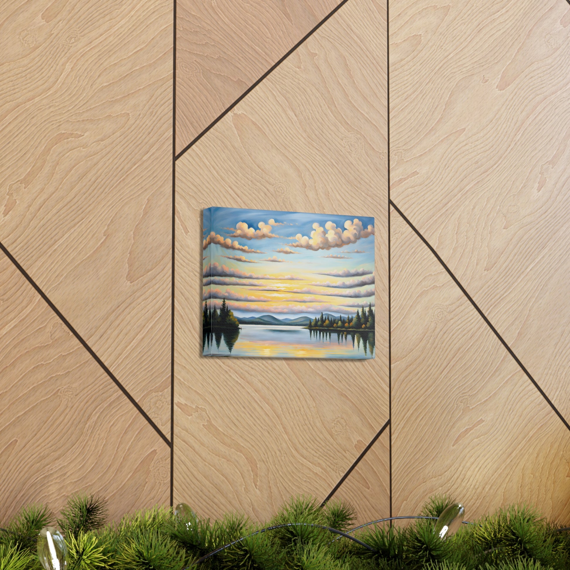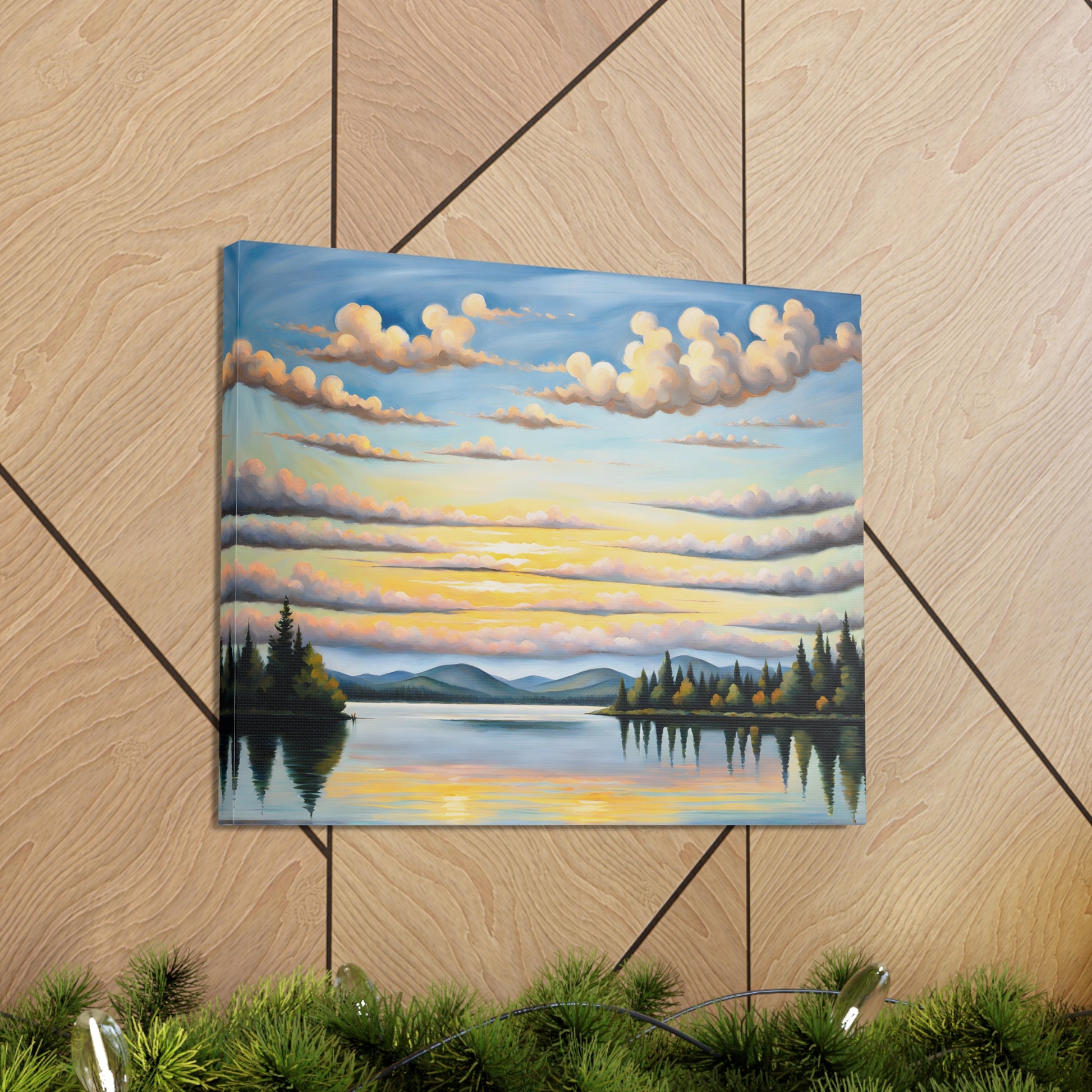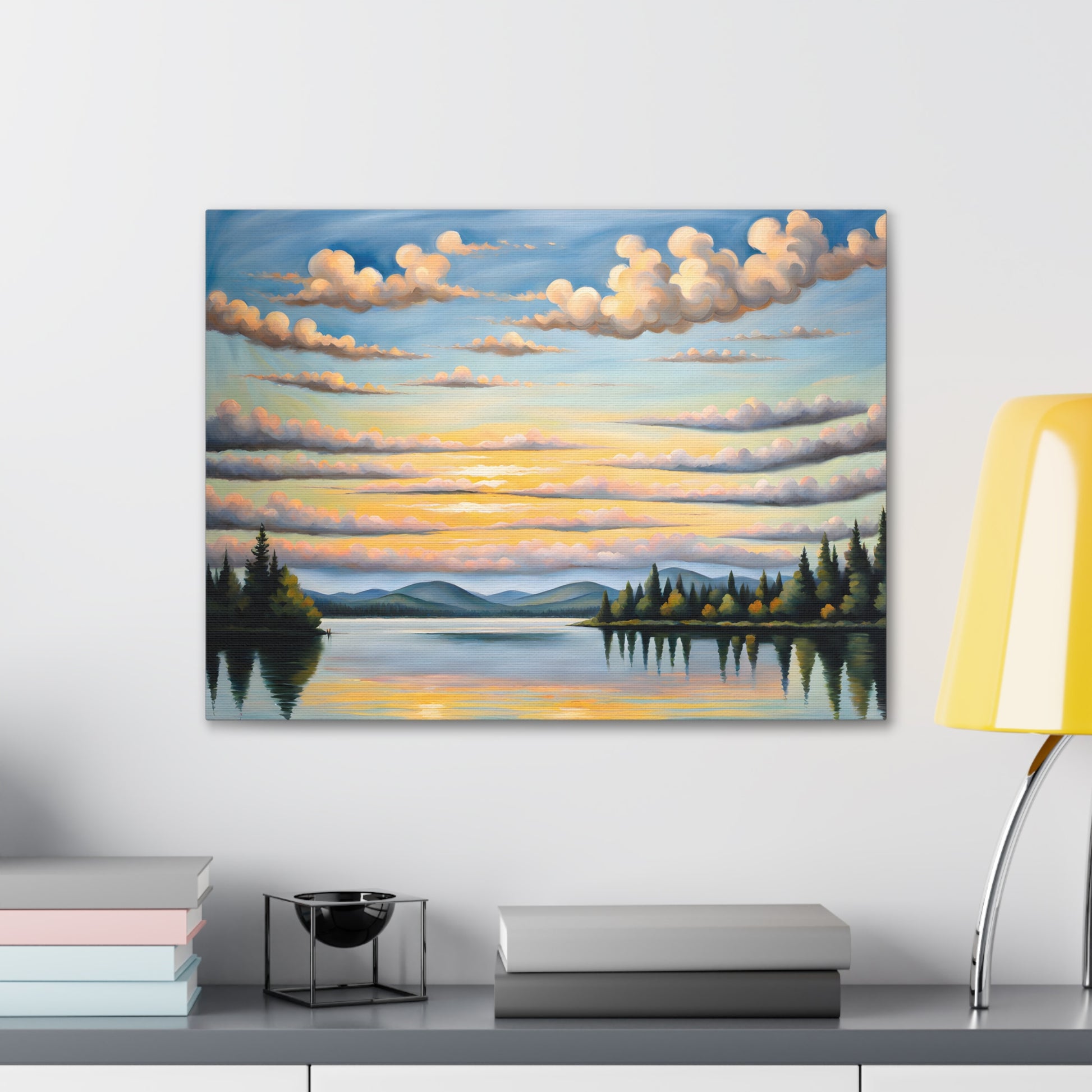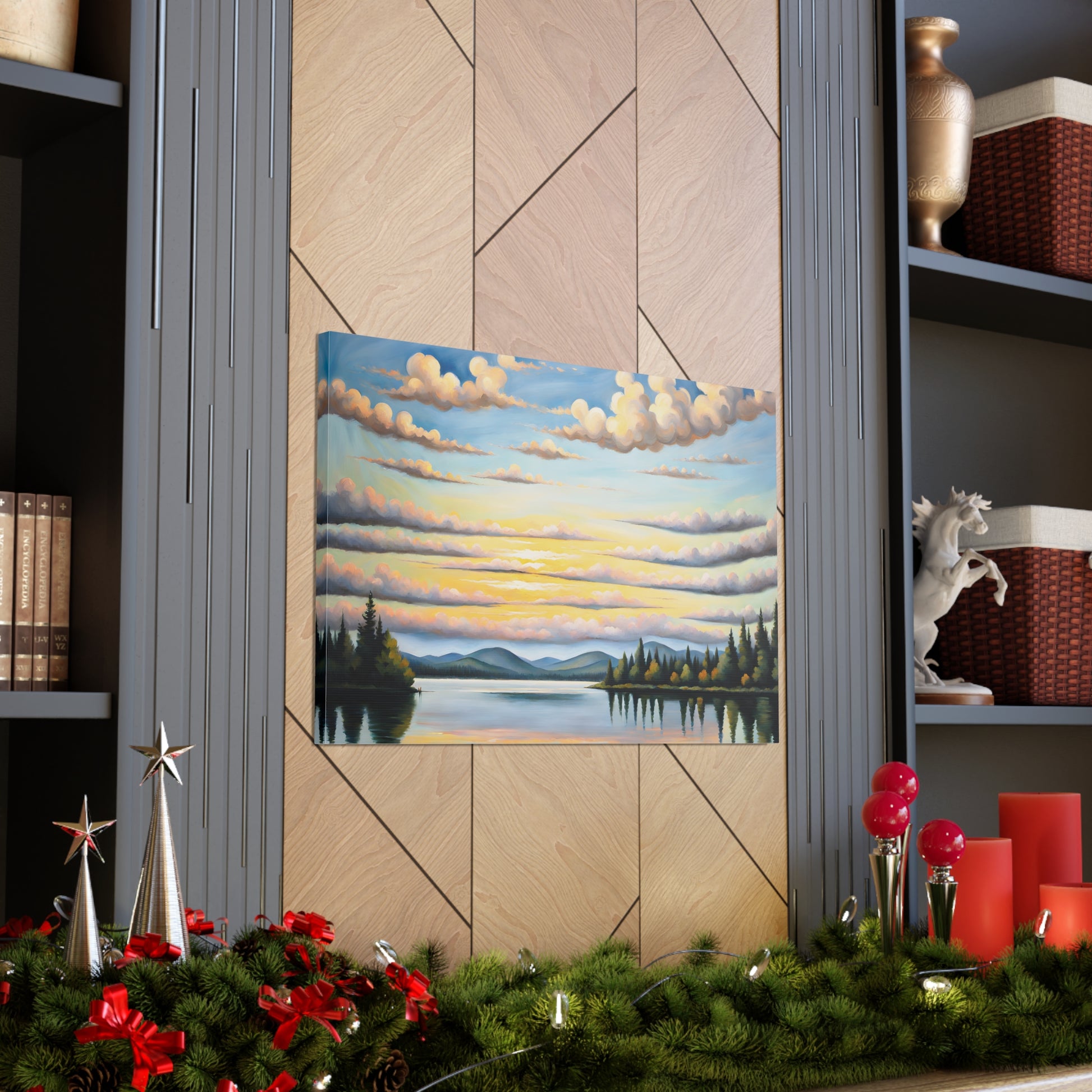 Bathe in the golden hues of Sunset Ridge, a tranquil landscape painting that captures the beauty of rolling hills at sunset. The delicate brushwork on cotton canvas brings this serene scene to life.