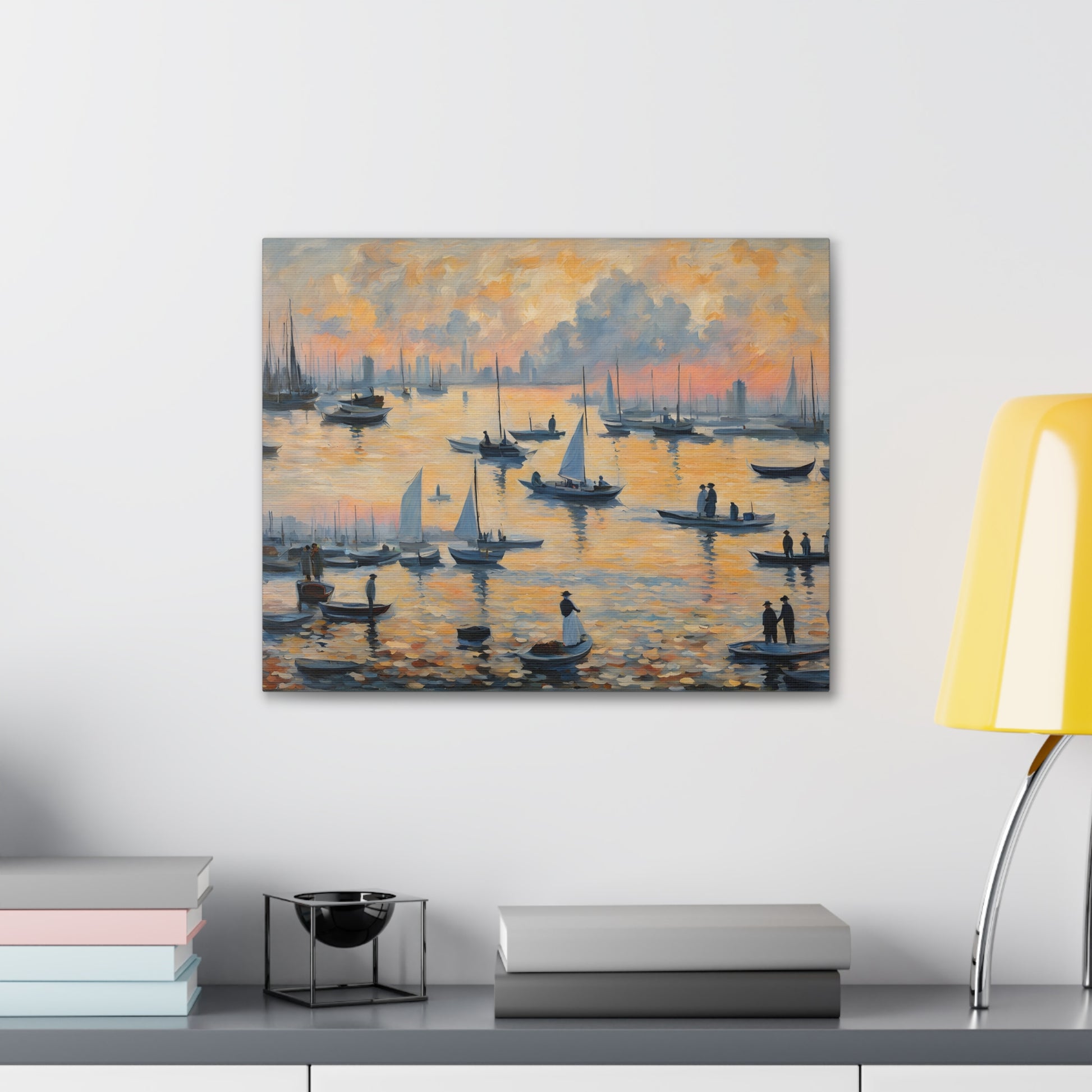 Immerse yourself in the tranquil beauty of "Sunset Shores," a captivating canvas artwork that transports you to the serenity of coastal twilight. Crafted with care on premium-quality cotton canvas, this piece captures the mesmerizing hues of the setting sun as it kisses the shores with its warm glow.