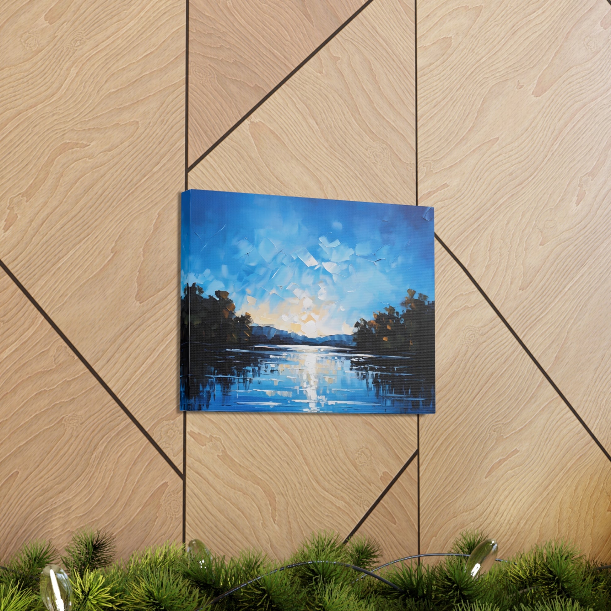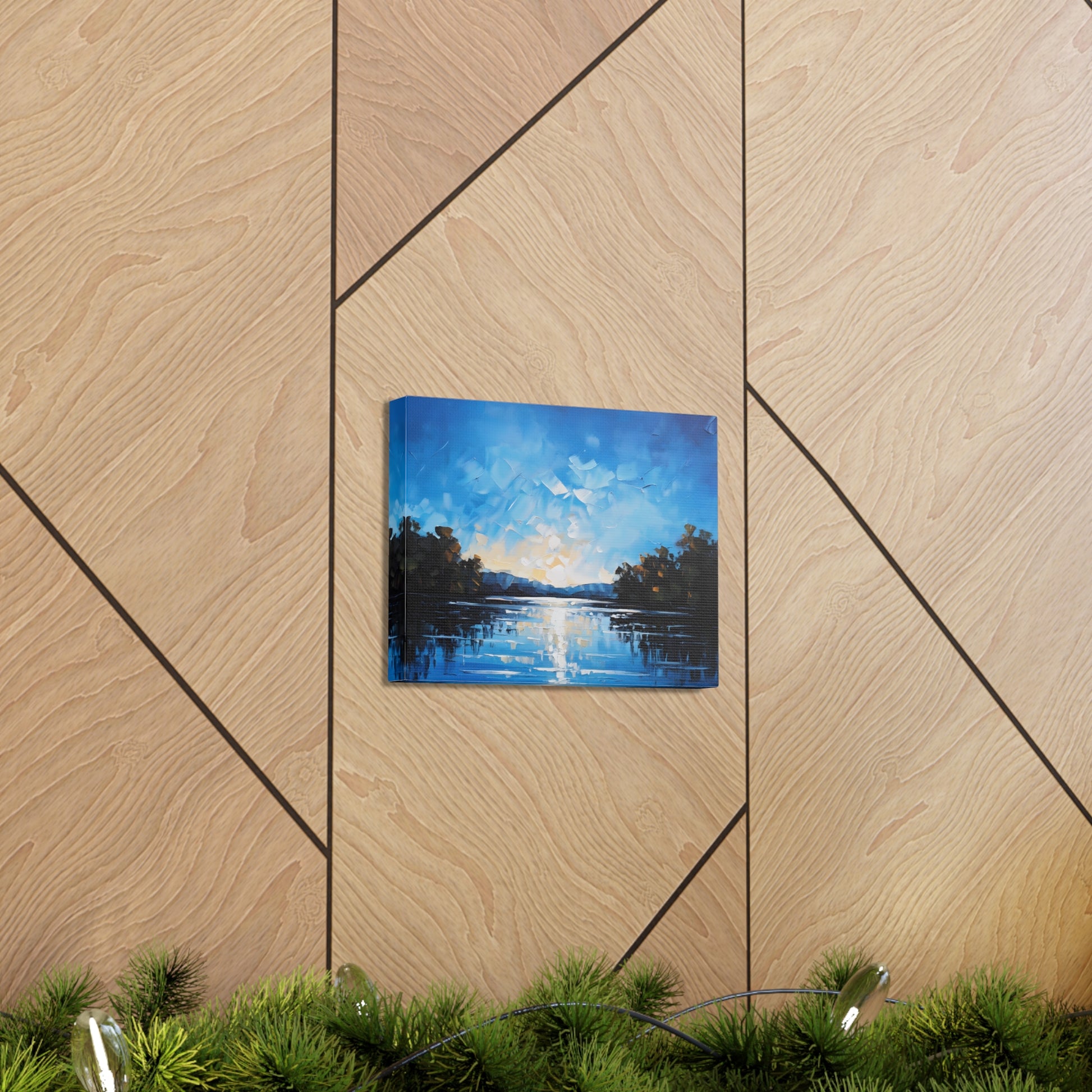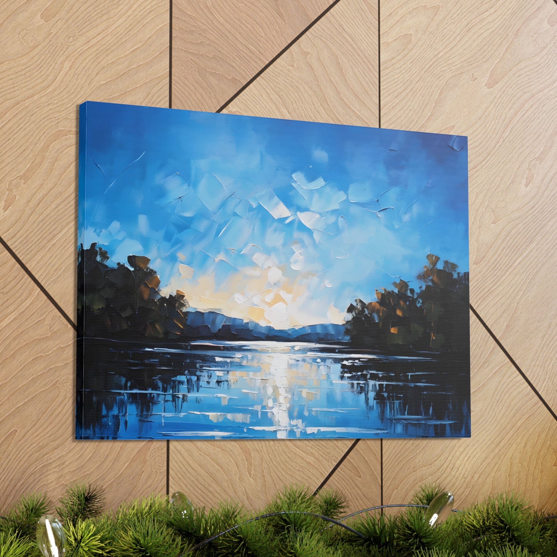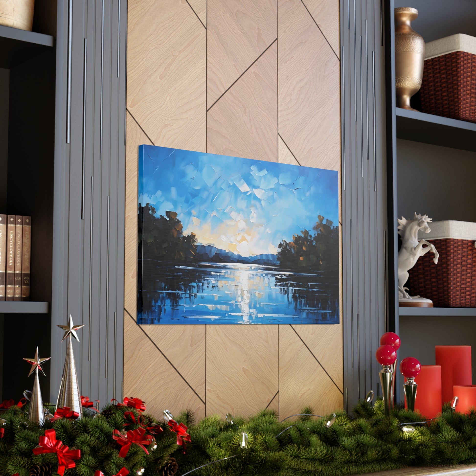 Experience the calm of the water with "Tranquil Bay." This serene oil painting on cotton canvas offers a peaceful view of a quiet bay at dusk, ideal for creating a relaxed atmosphere. NB! For indoor use only.