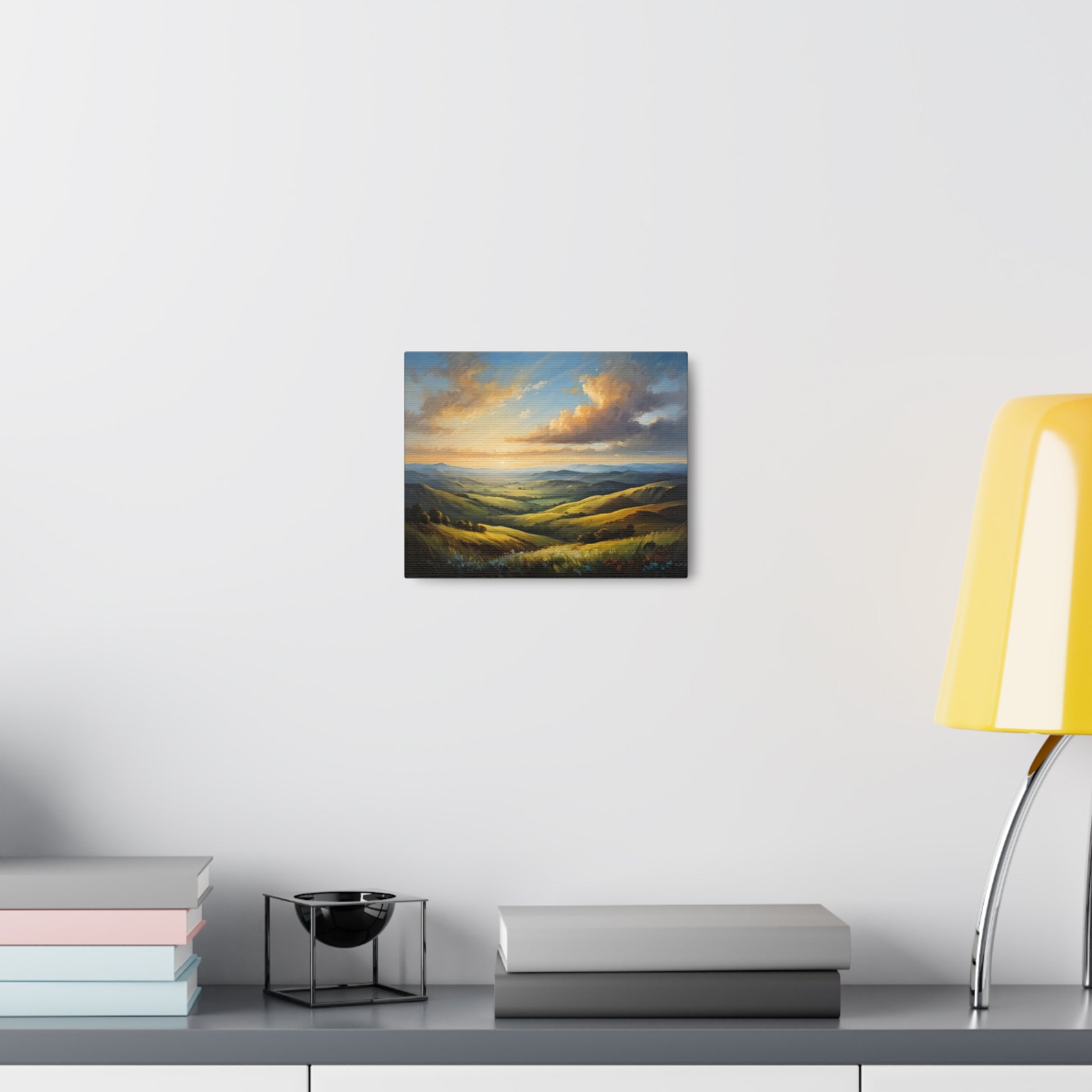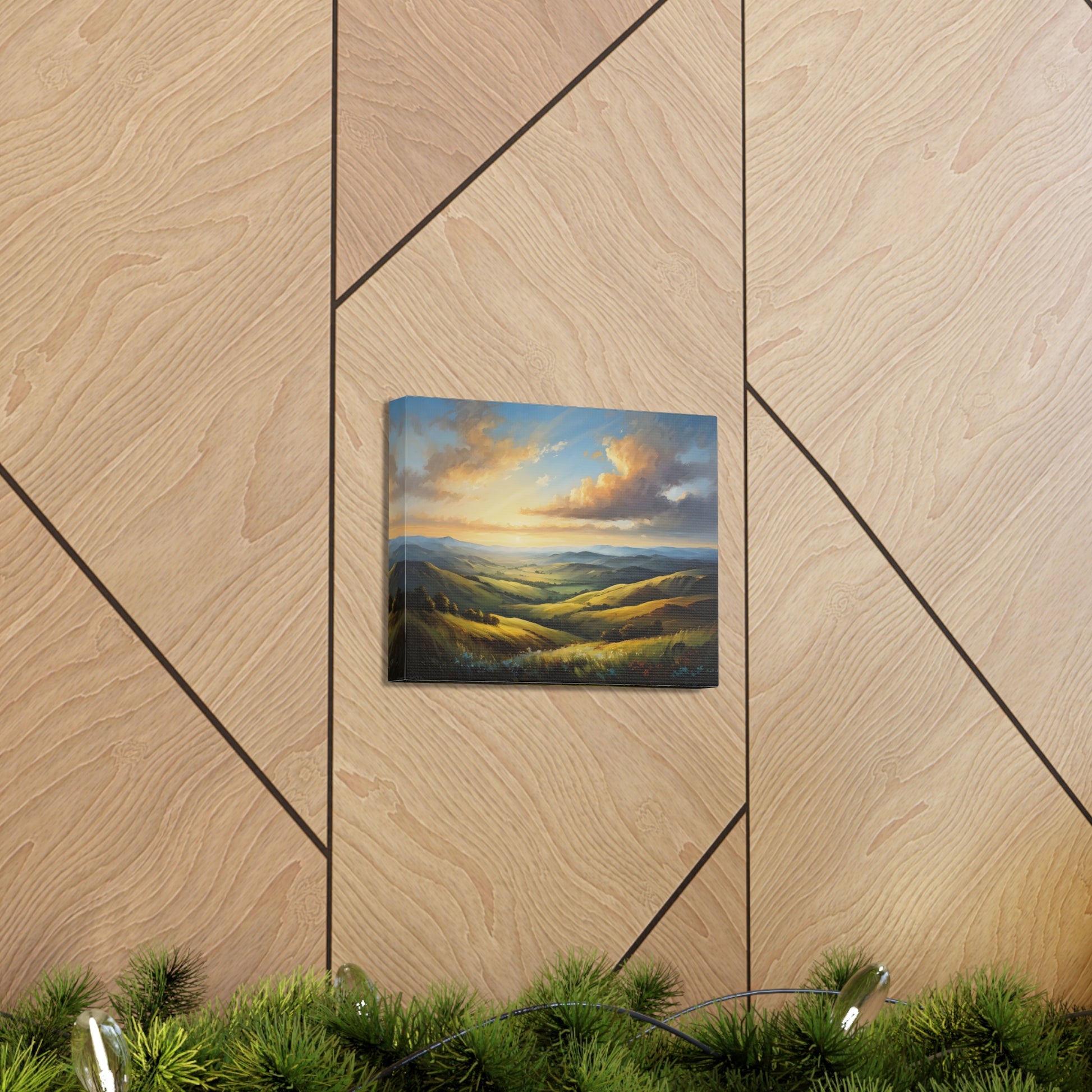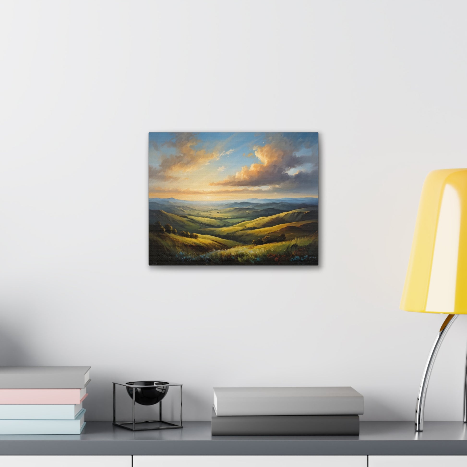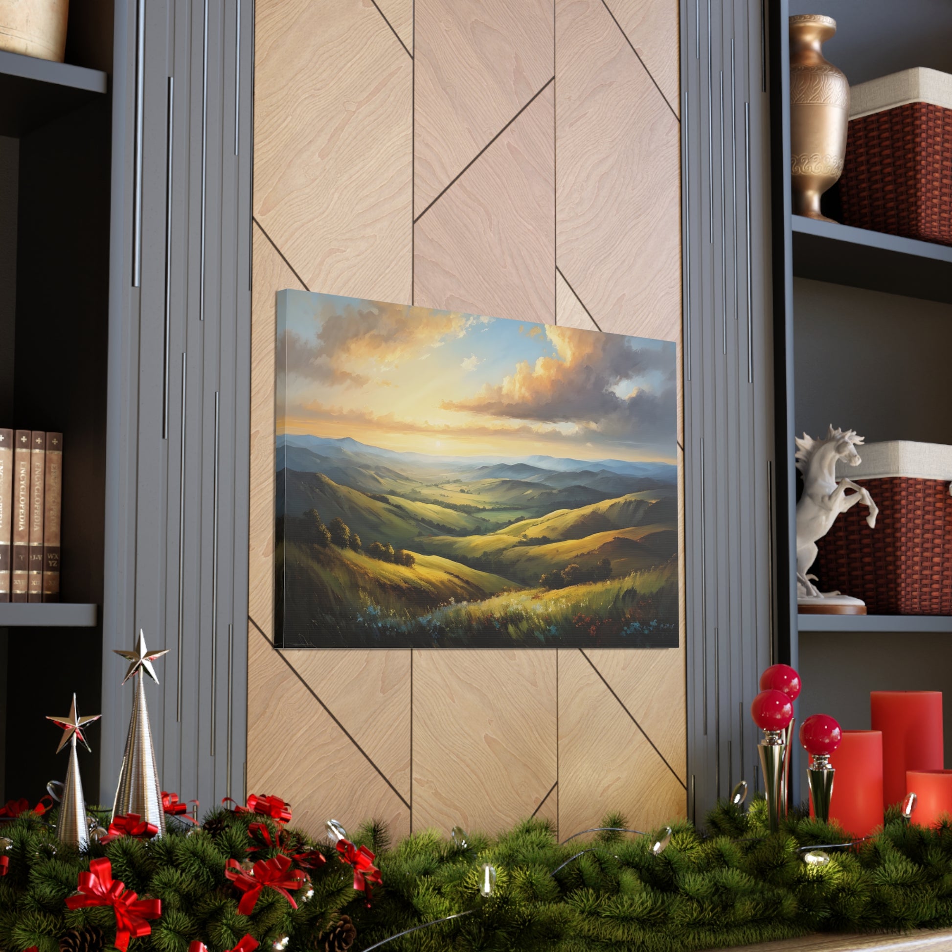 A stunning canvas featuring an oil painting of rolling grassy hills, perfect for adding a touch of nature and tranquility to any room. Ideal for art lovers and nature enthusiasts, this canvas is relevant for home decor, gifts for birthdays, housewarmings, Mother's Day, and anniversaries.