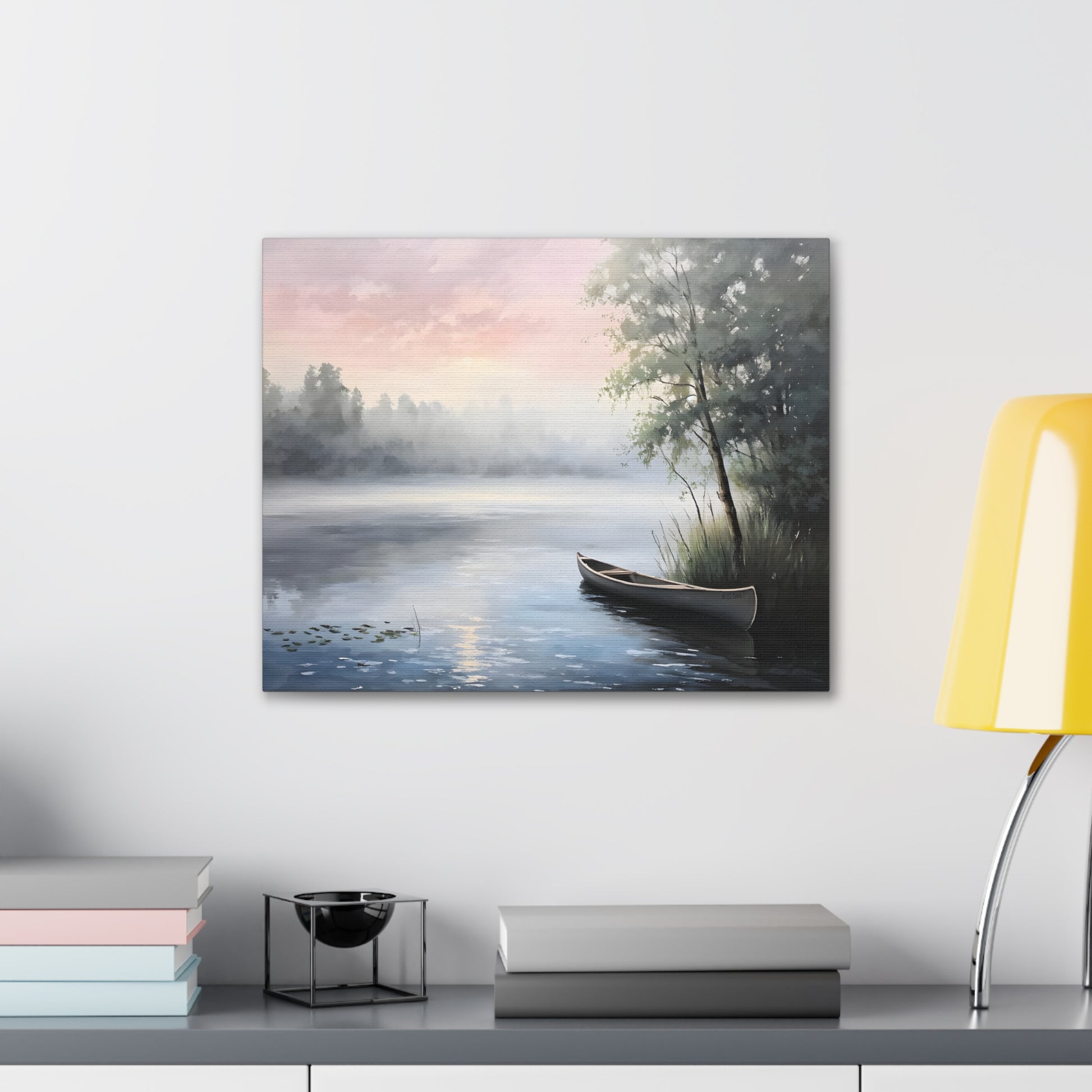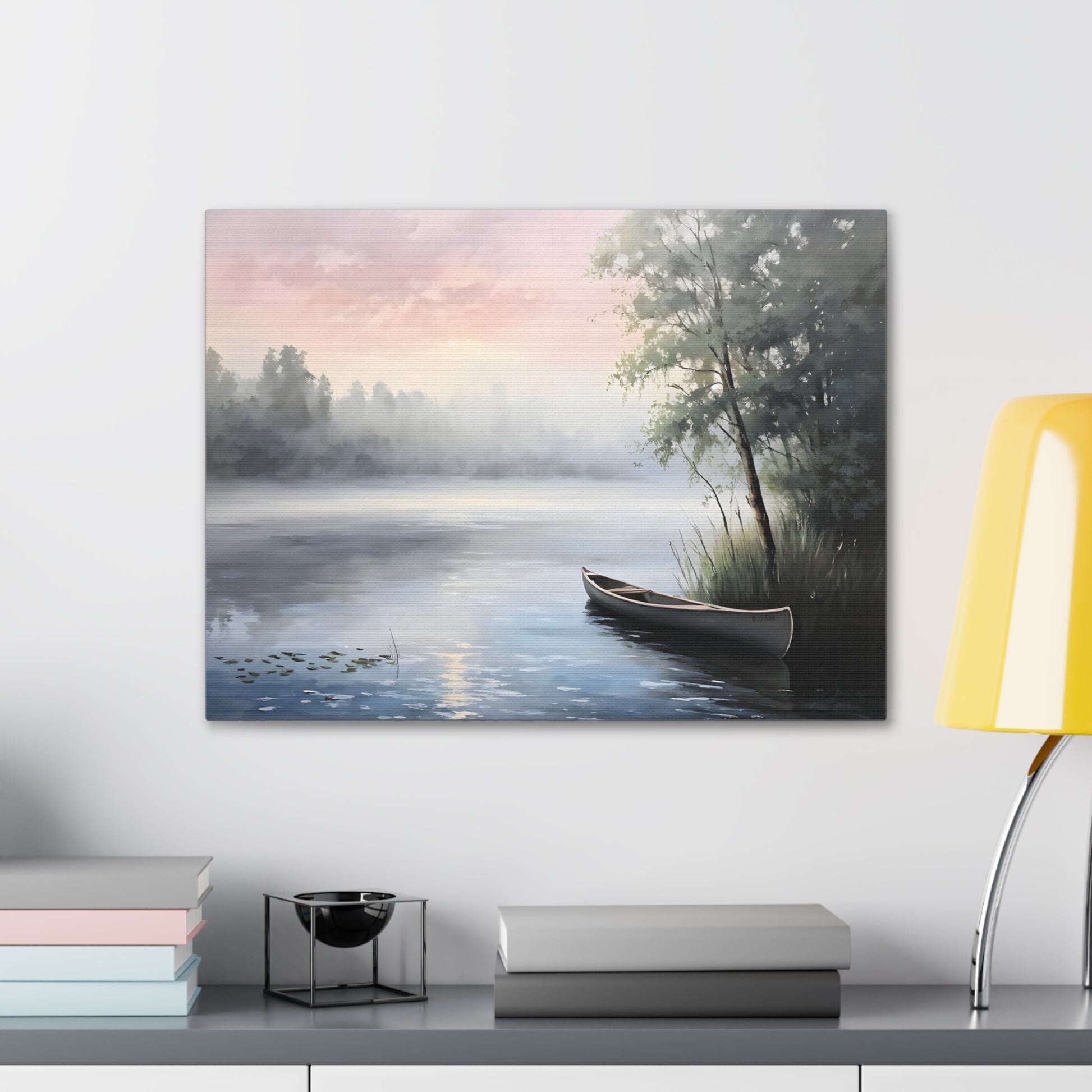 - "Misty Morning Lake: Classic Oil Painting"