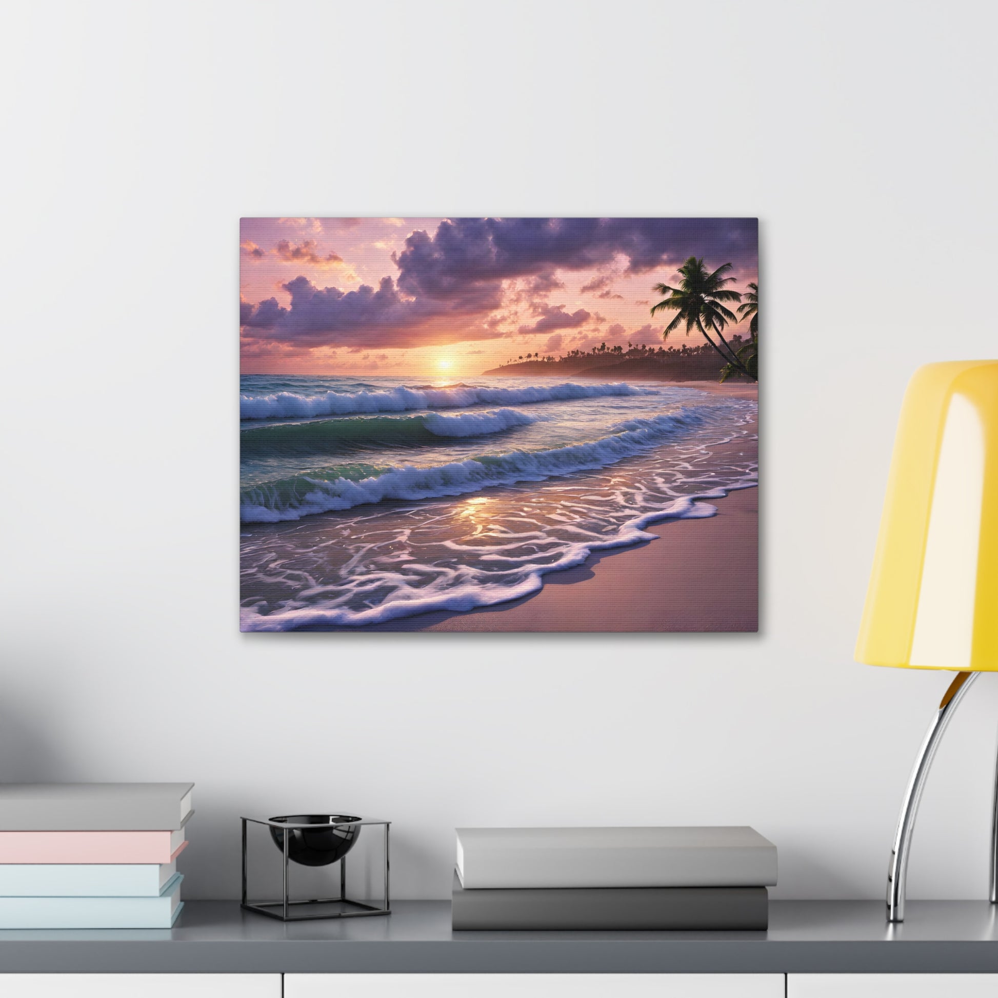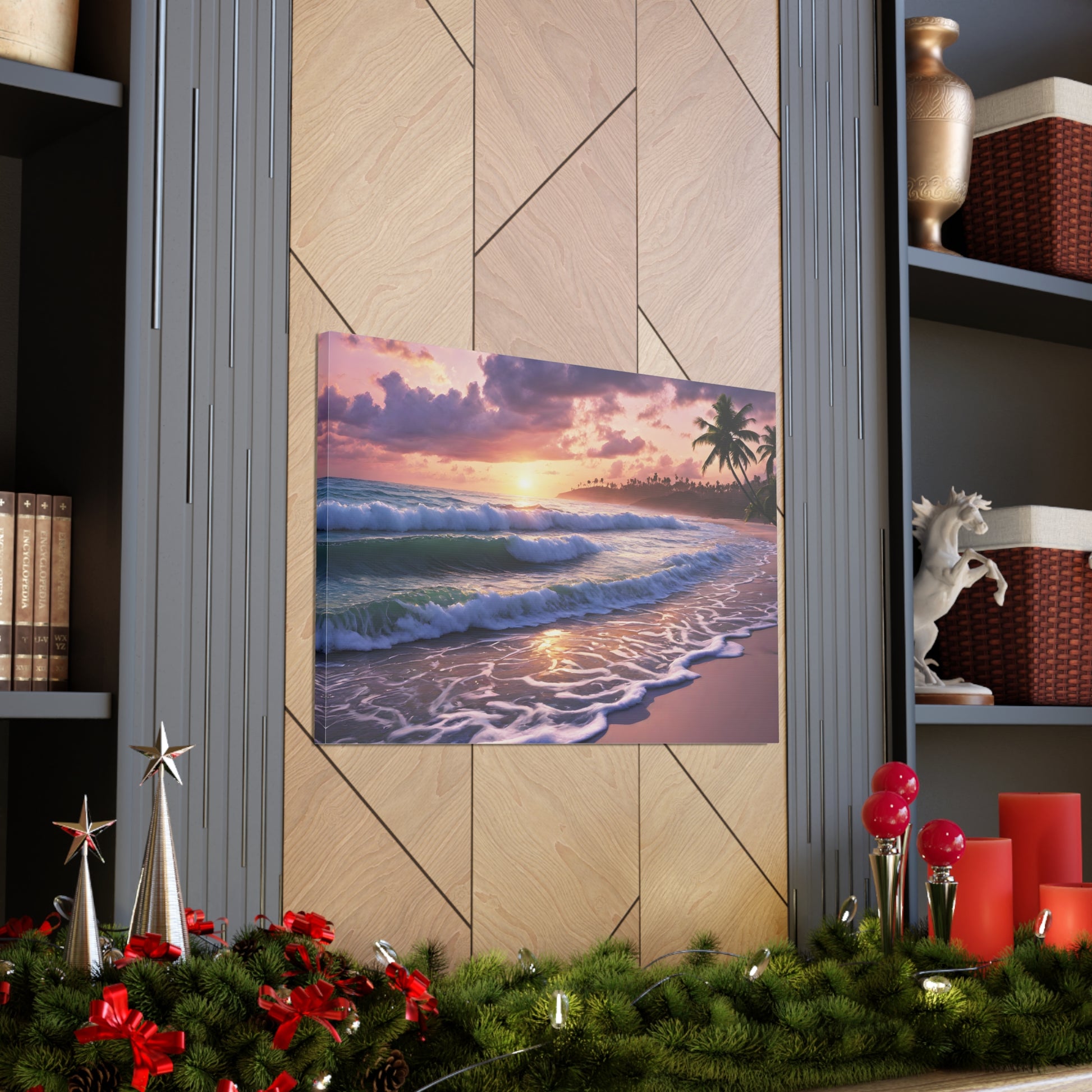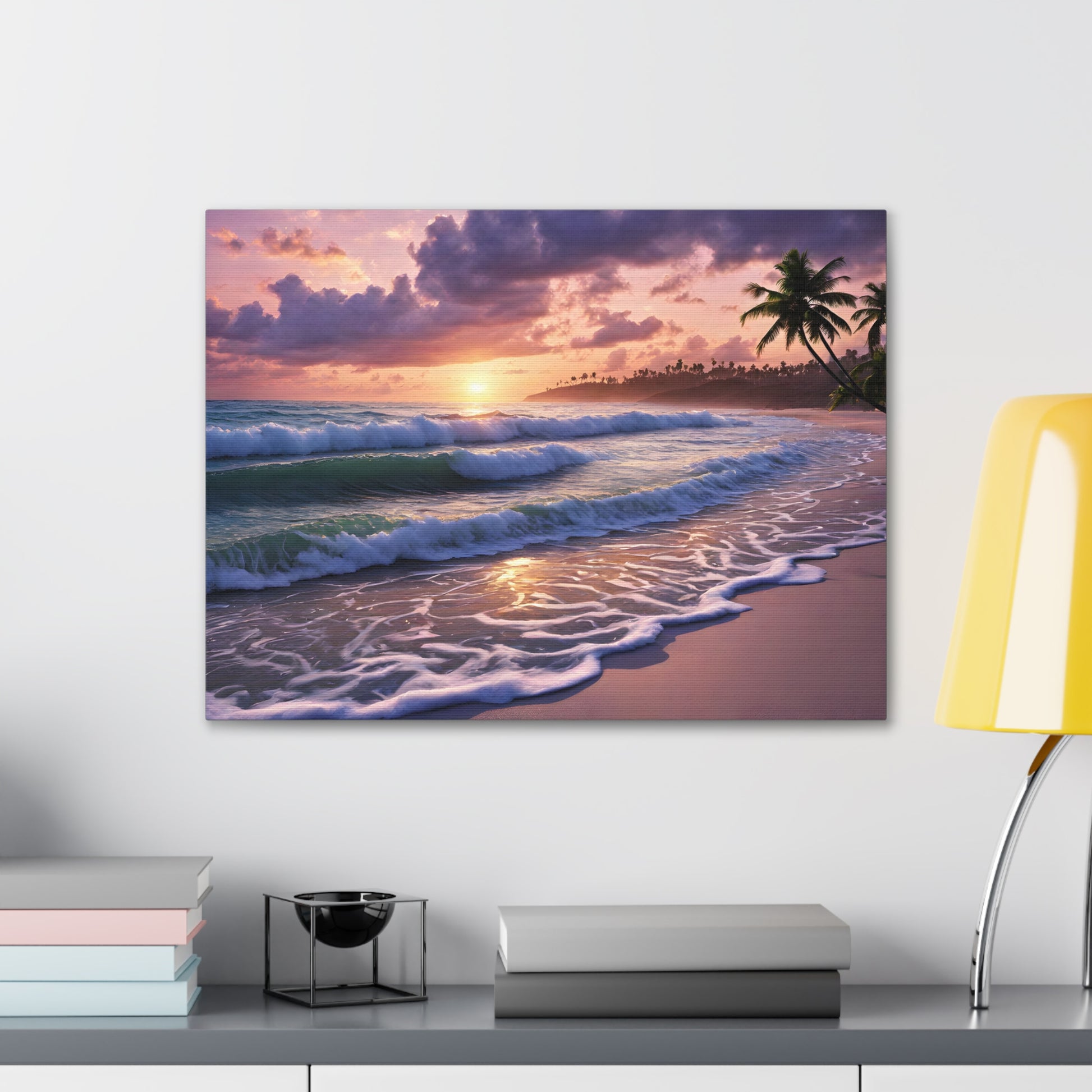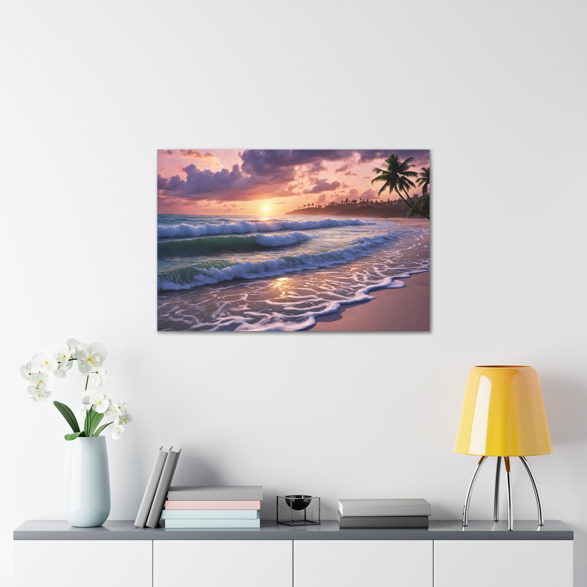 Immerse your surroundings in the enchanting glow of "Tropical Sunset." Let this canvas art be the focal point, infusing your home or office with the relaxing ambiance of a tropical evening.