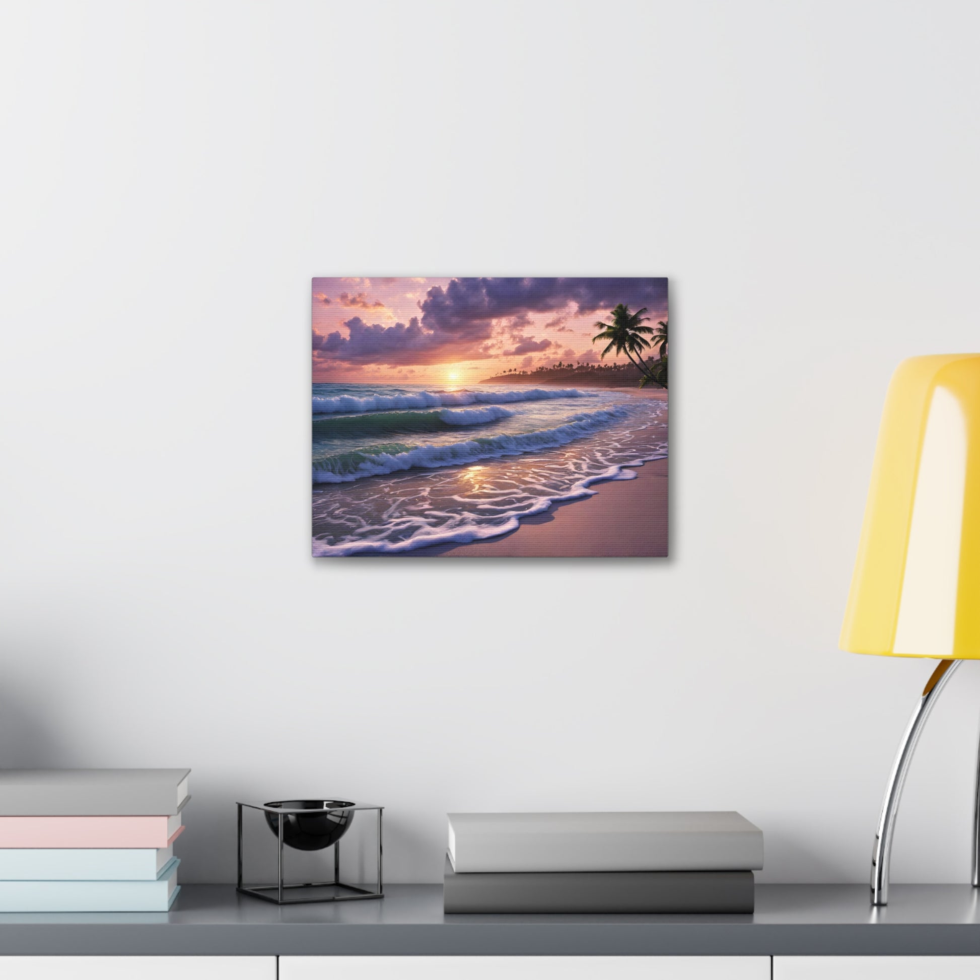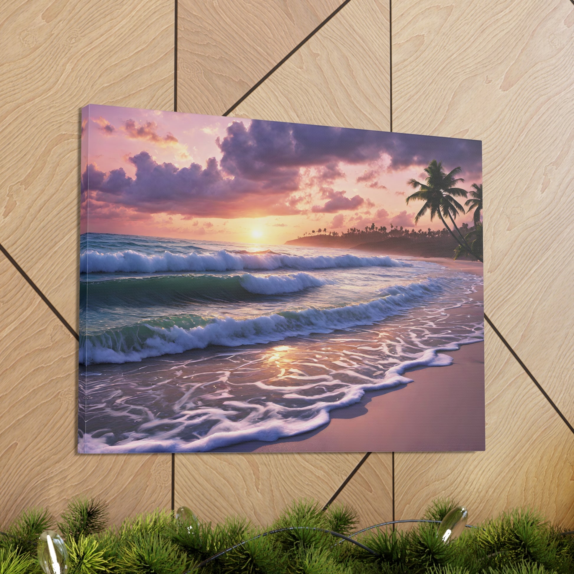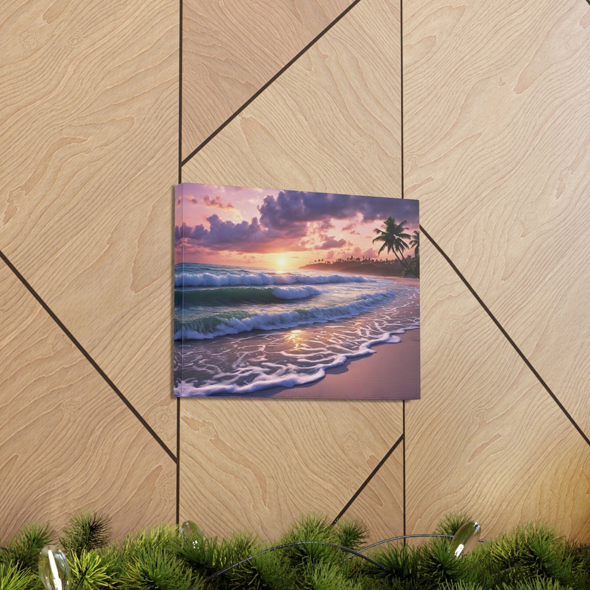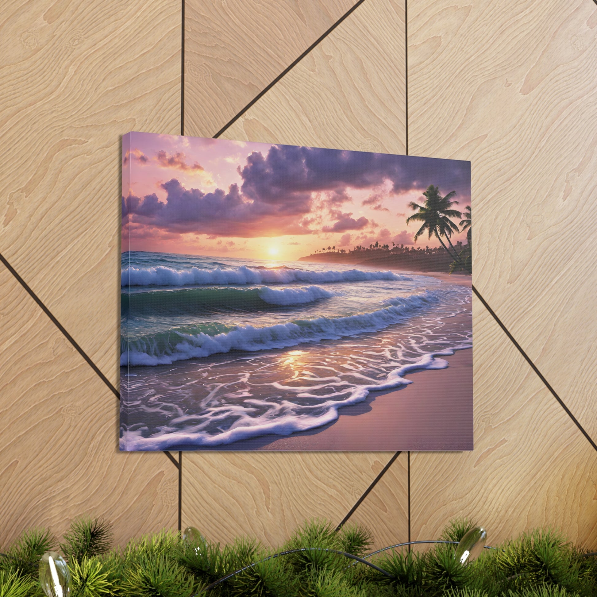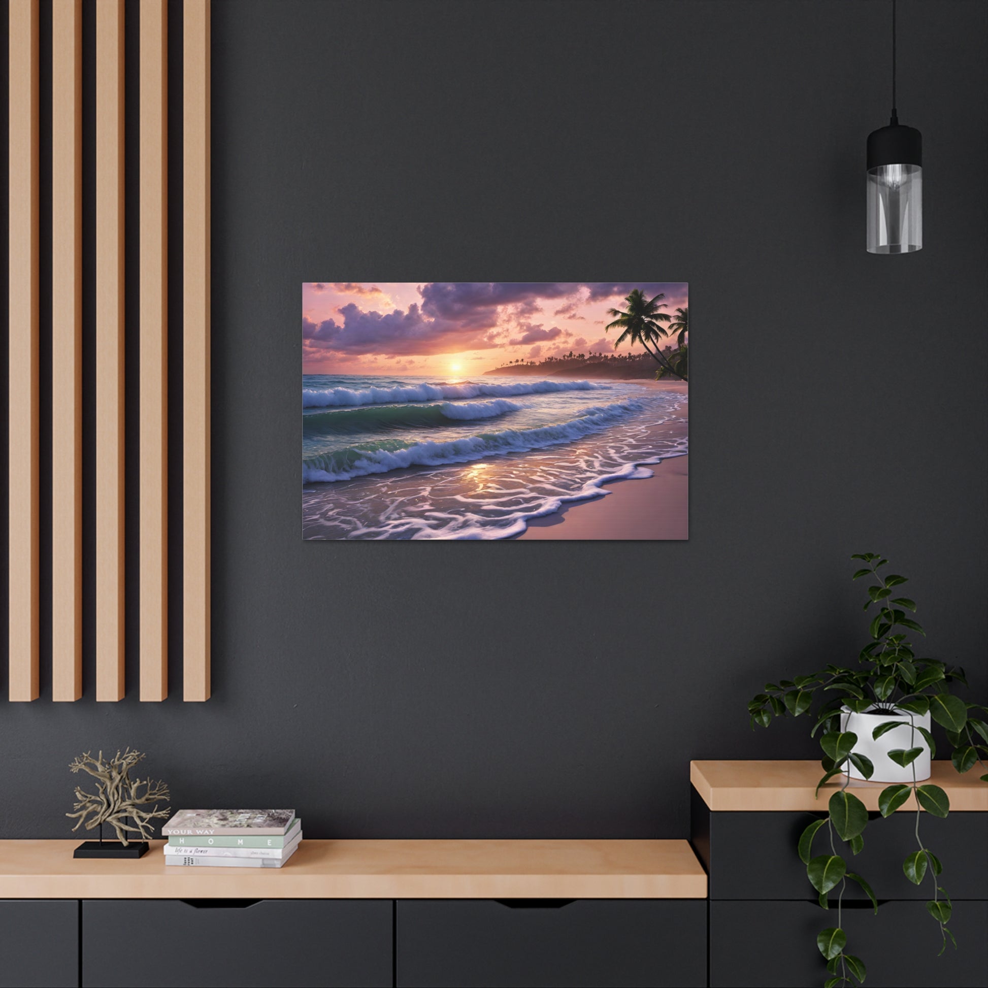 Immerse your surroundings in the enchanting glow of "Tropical Sunset." Let this canvas art be the focal point, infusing your home or office with the relaxing ambiance of a tropical evening.