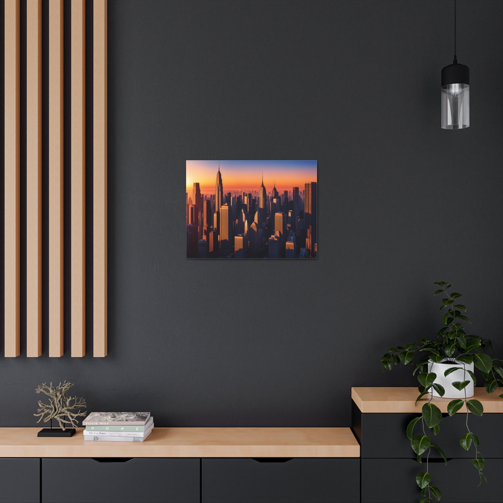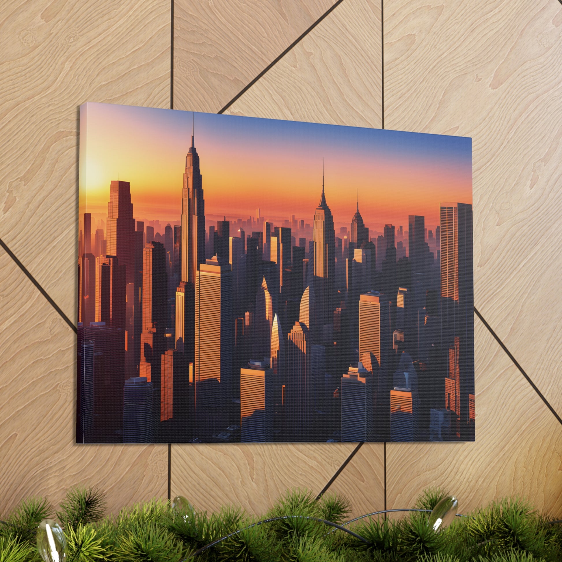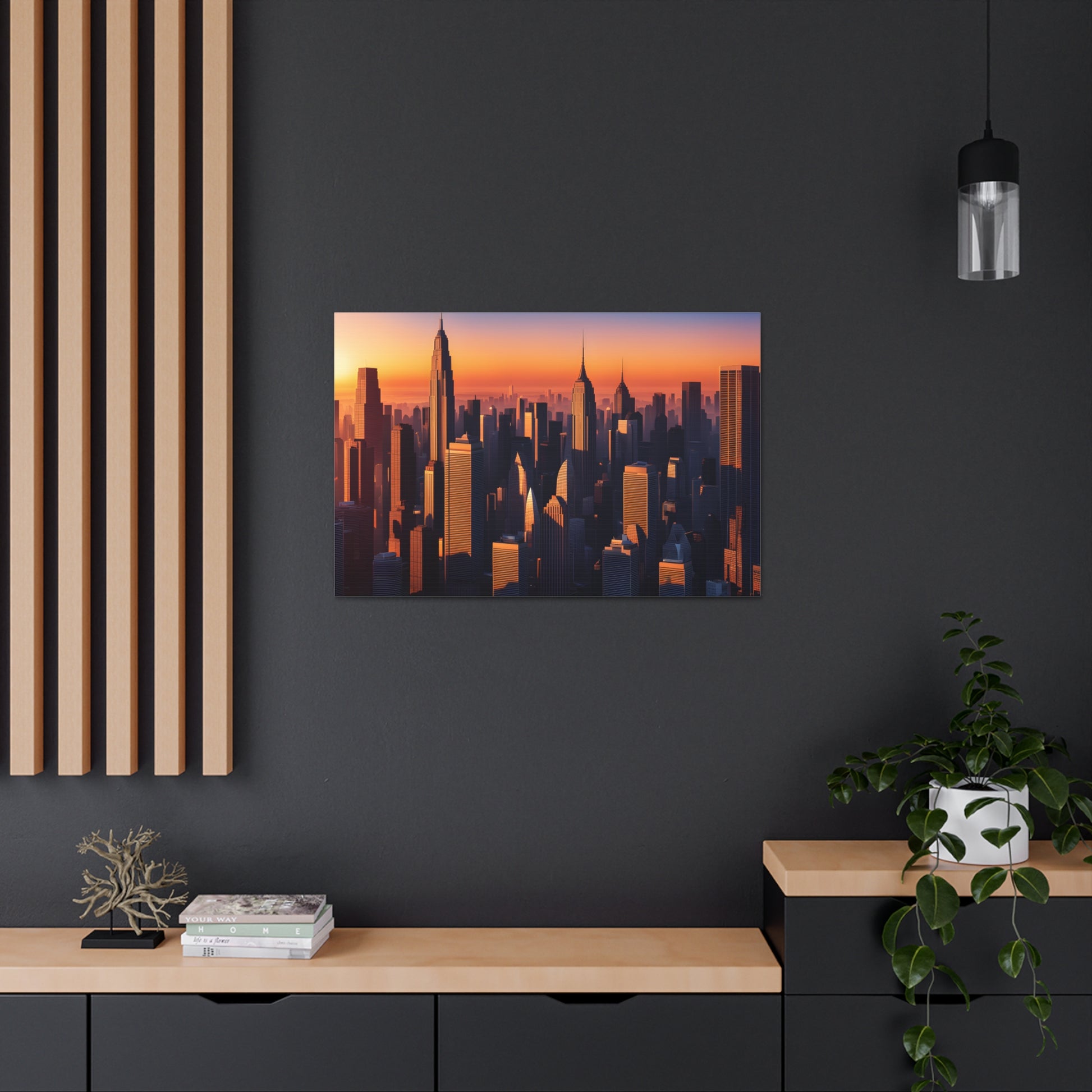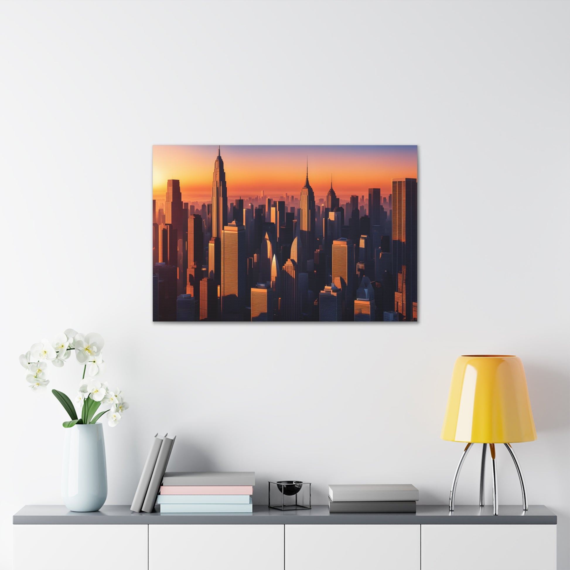 Witness the birth of a new day with "Urban Dawn." This captivating canvas art piece brings the energy of dawn to life, capturing the first light as it bathes the urban landscape in a warm embrace.