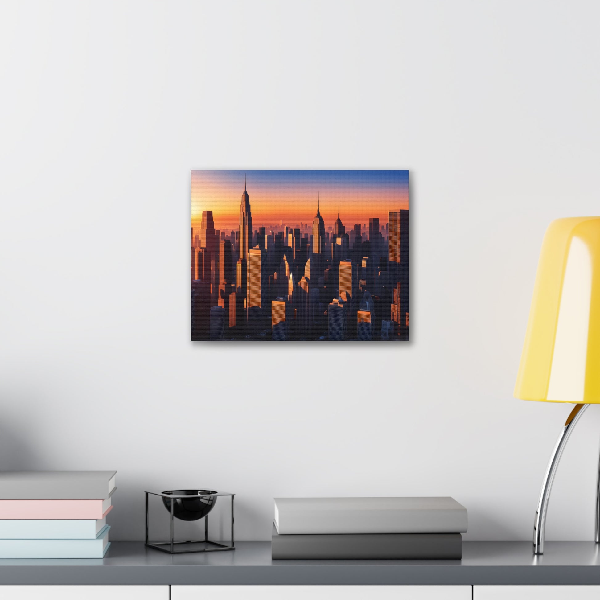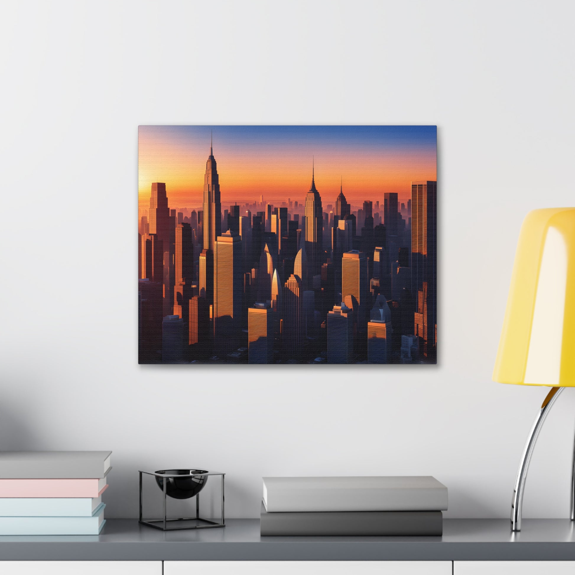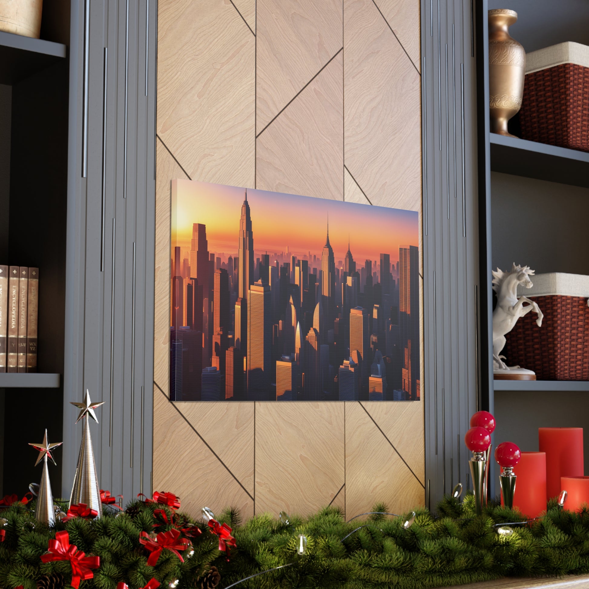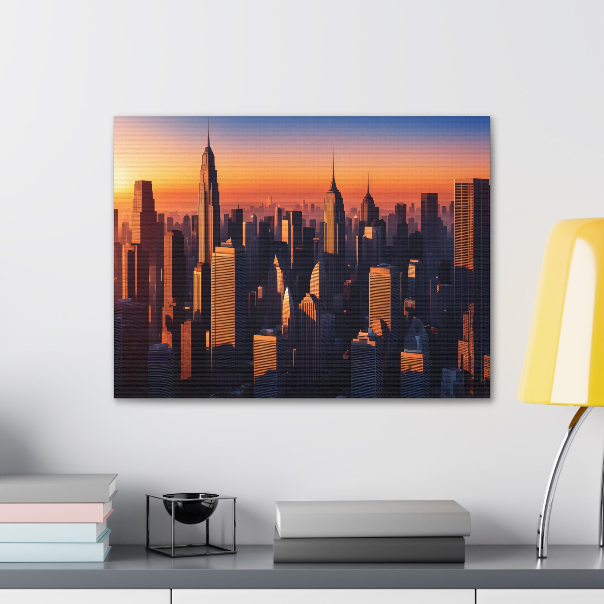 Witness the birth of a new day with "Urban Dawn." This captivating canvas art piece brings the energy of dawn to life, capturing the first light as it bathes the urban landscape in a warm embrace.