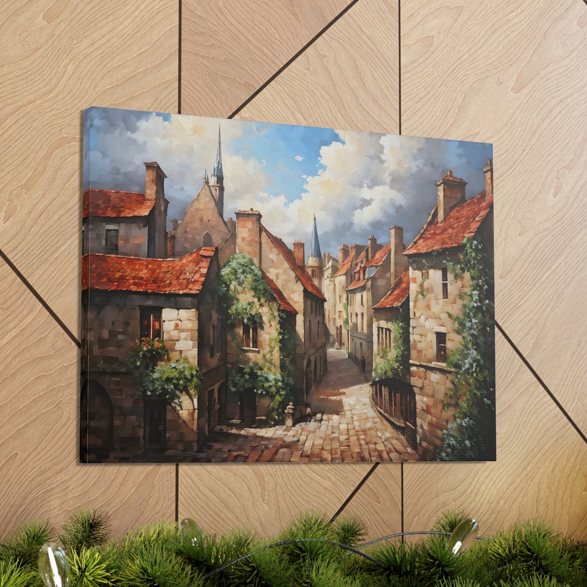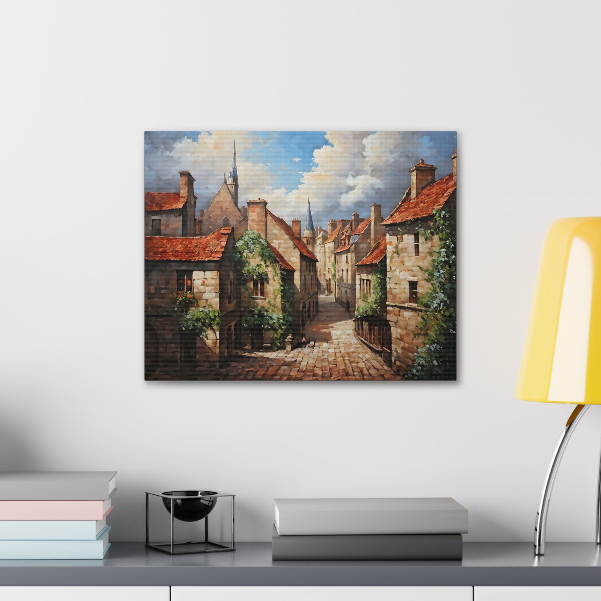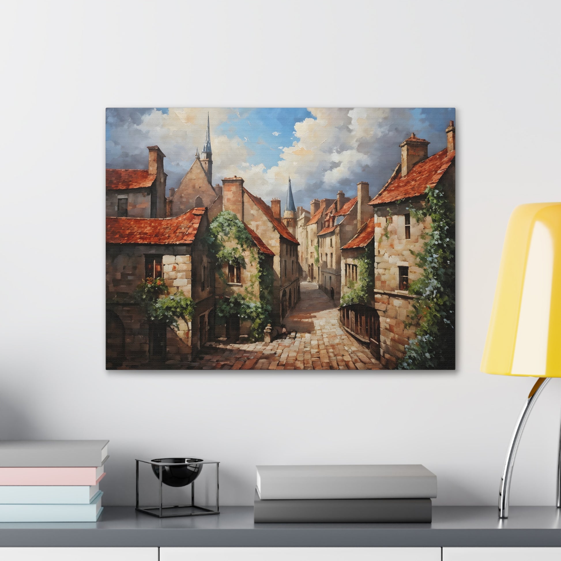 "Vacant Burrow" beautifully captures the timeless charm of an old European street with cobblestone paths and ivy-covered buildings. This oil painting on high-quality cotton canvas adds a touch of rustic elegance to your indoor decor, ideal for creating a vintage ambiance.