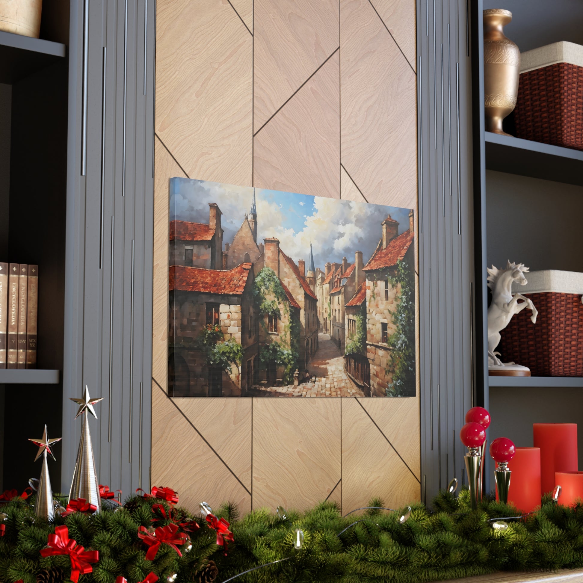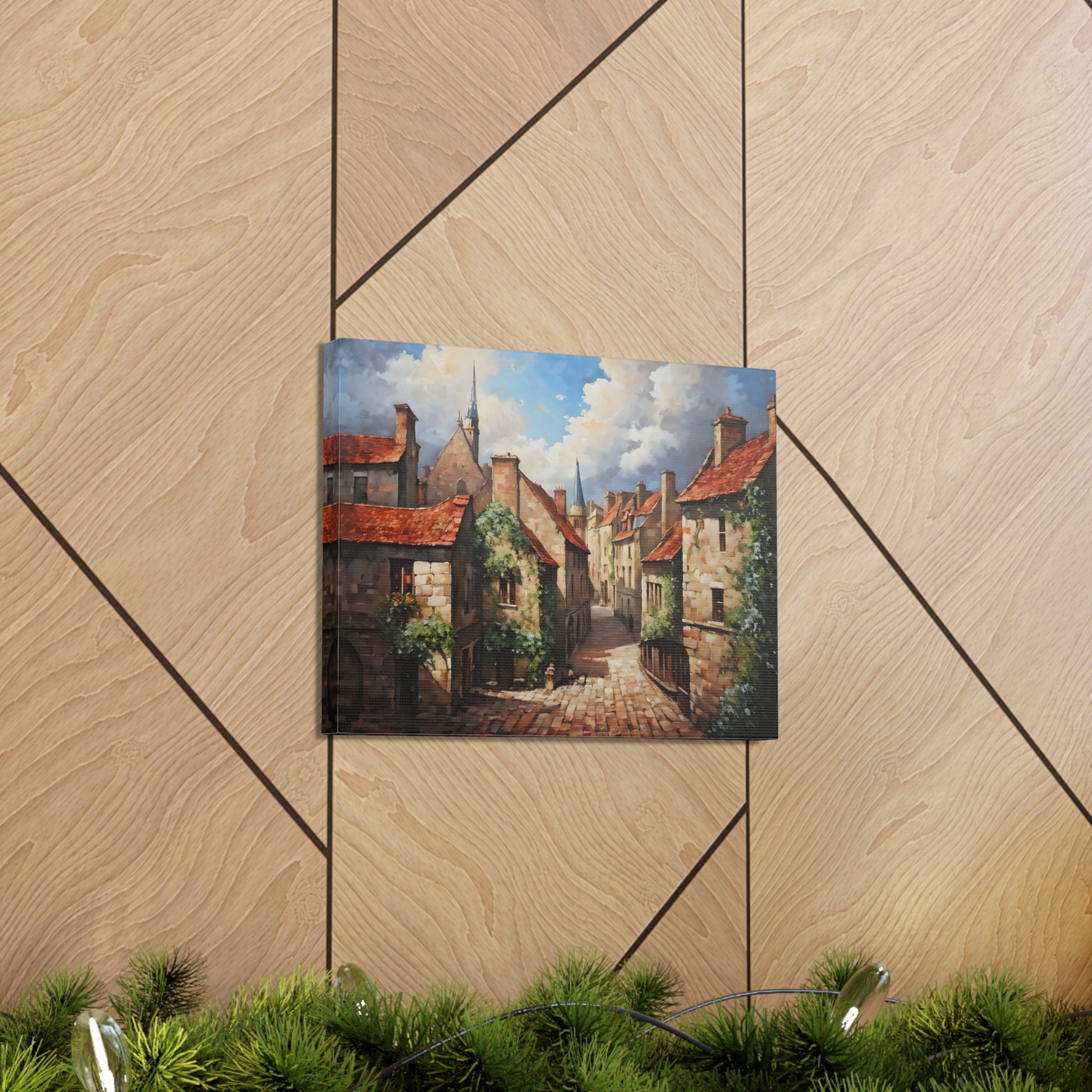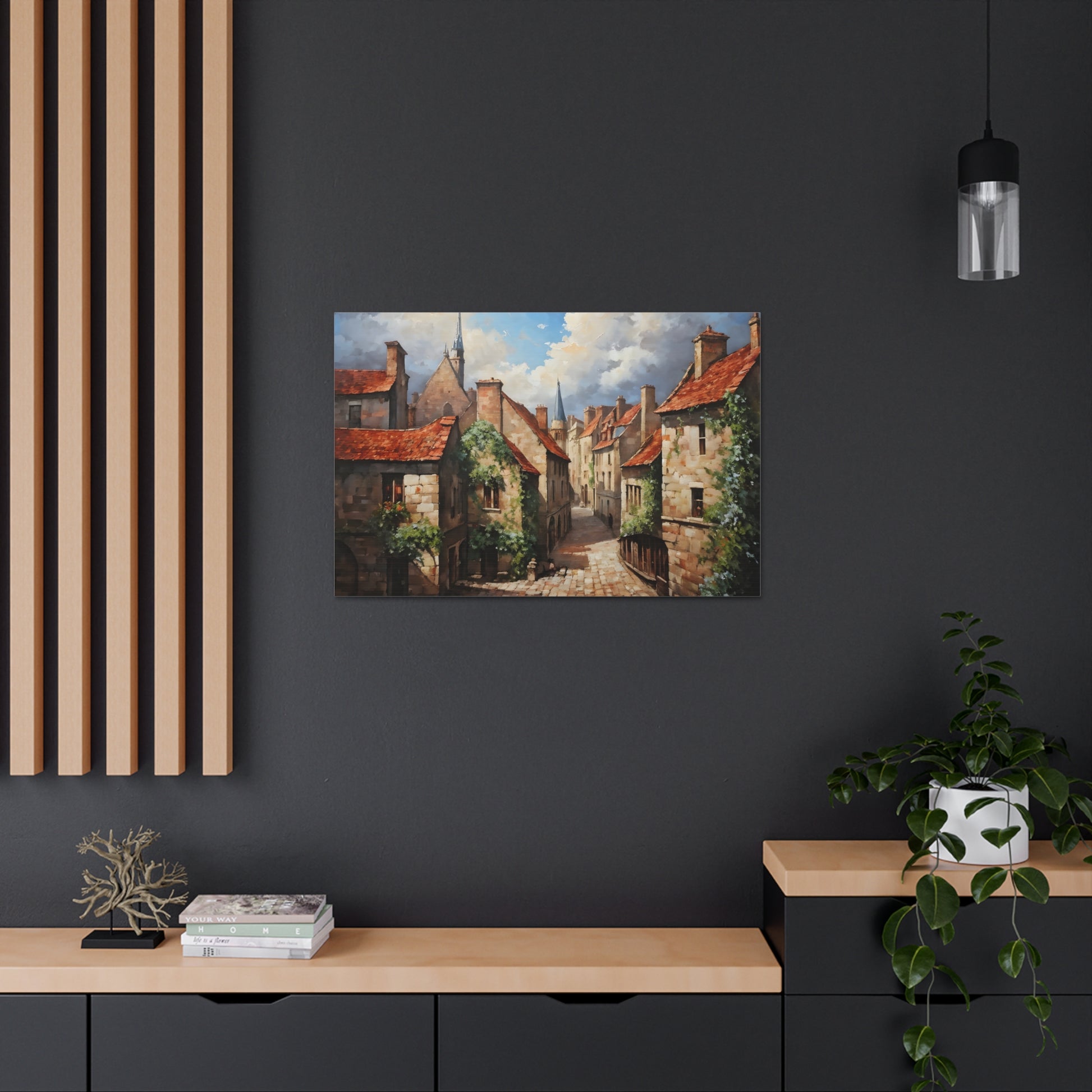 "Vacant Burrow" beautifully captures the timeless charm of an old European street with cobblestone paths and ivy-covered buildings. This oil painting on high-quality cotton canvas adds a touch of rustic elegance to your indoor decor, ideal for creating a vintage ambiance.
