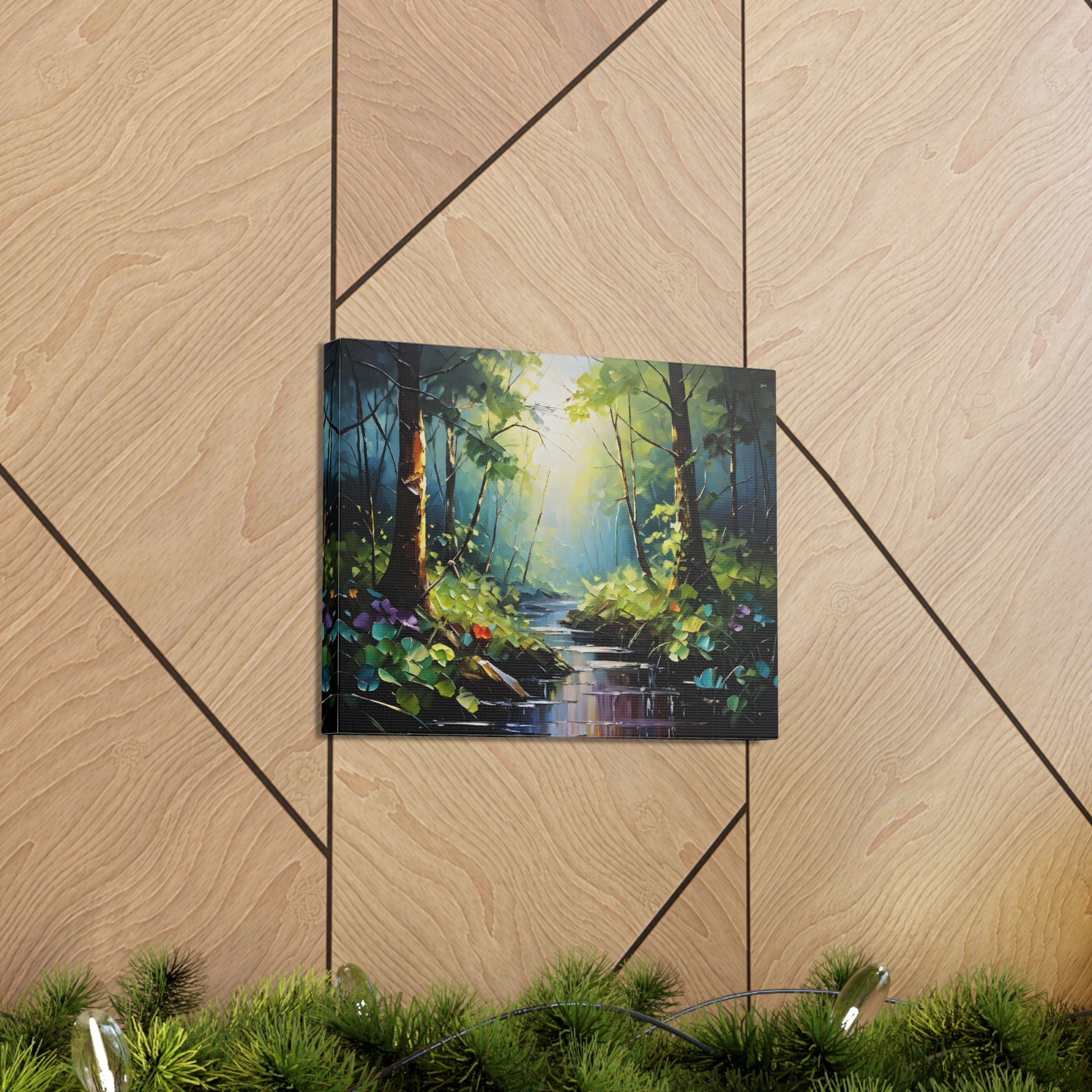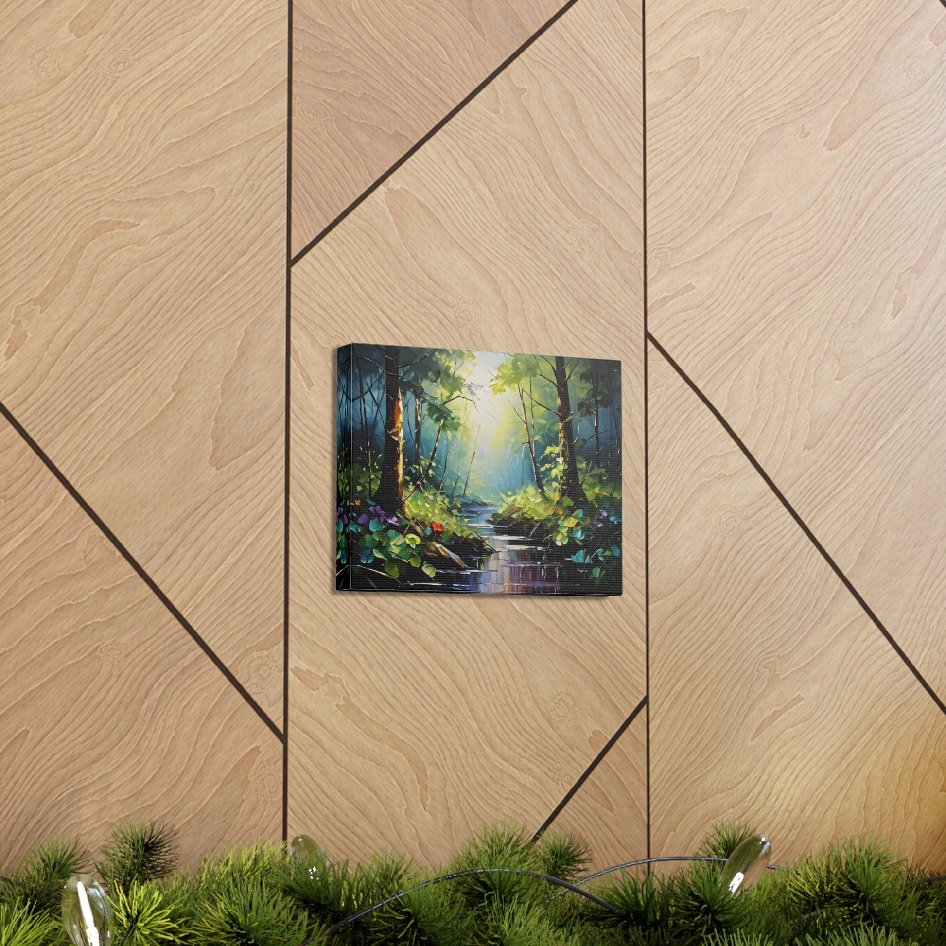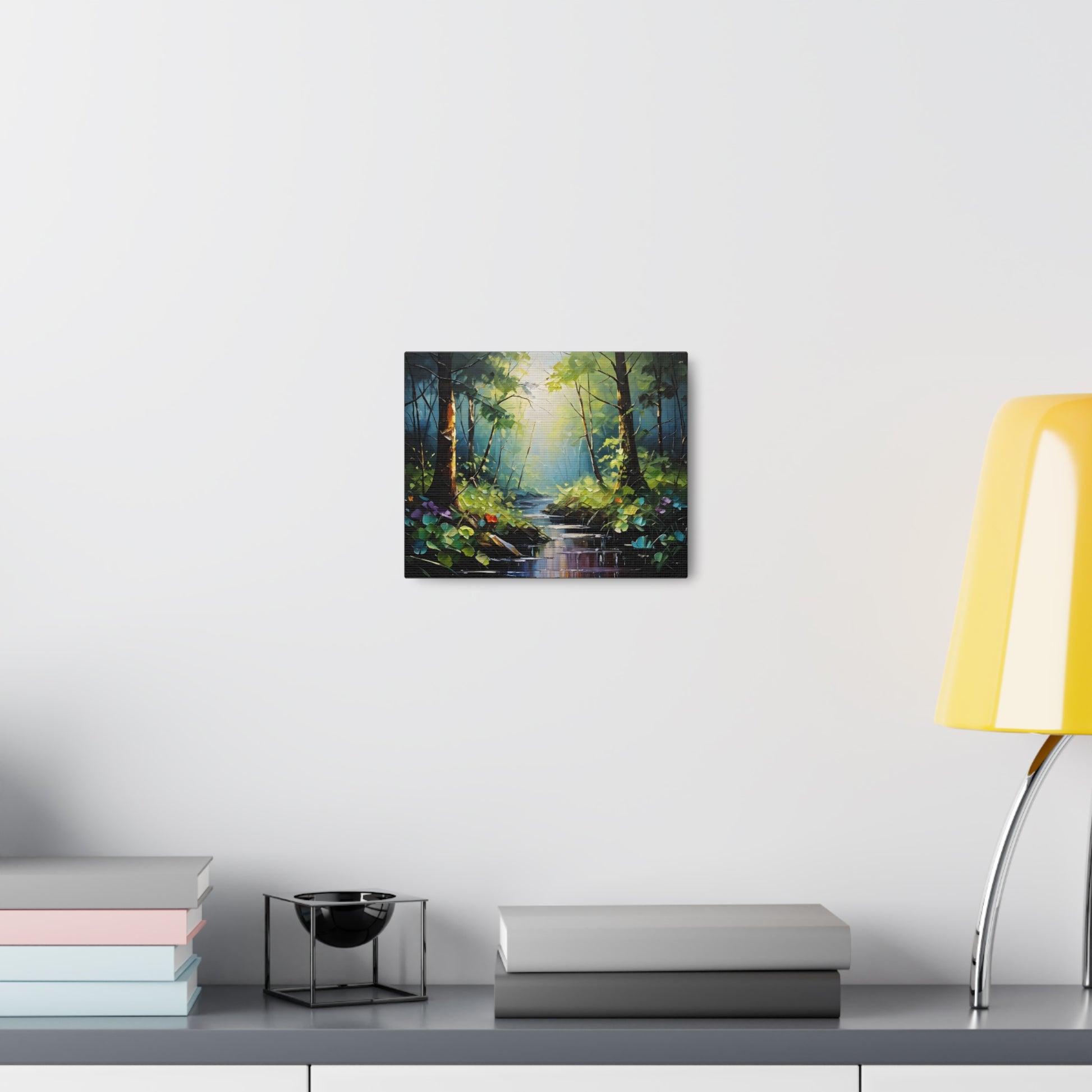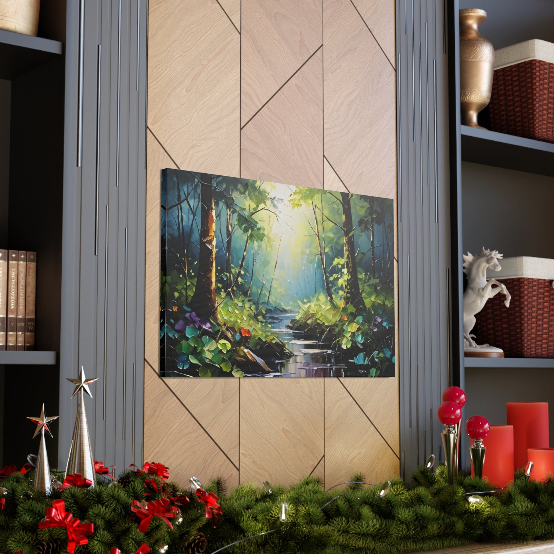 Step into a lush, sunlit forest with "Verdant Glade." This oil painting on cotton canvas captures the peaceful essence of a forest glade, where light filters through the canopy above. NB! For indoor use only, this piece is ideal for adding a touch of nature to your living room or study.