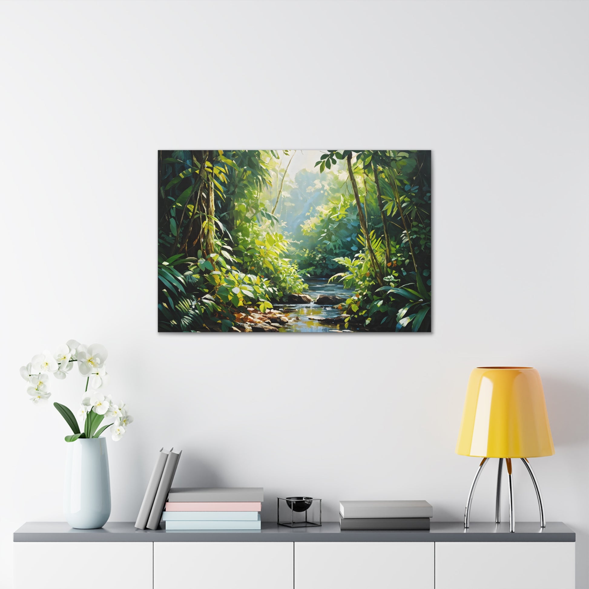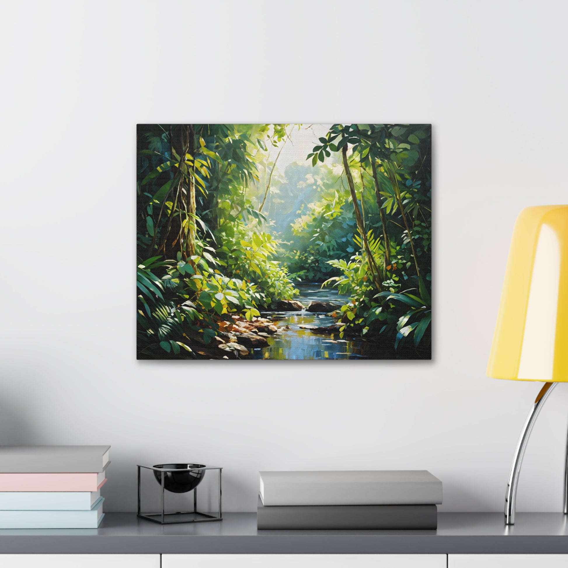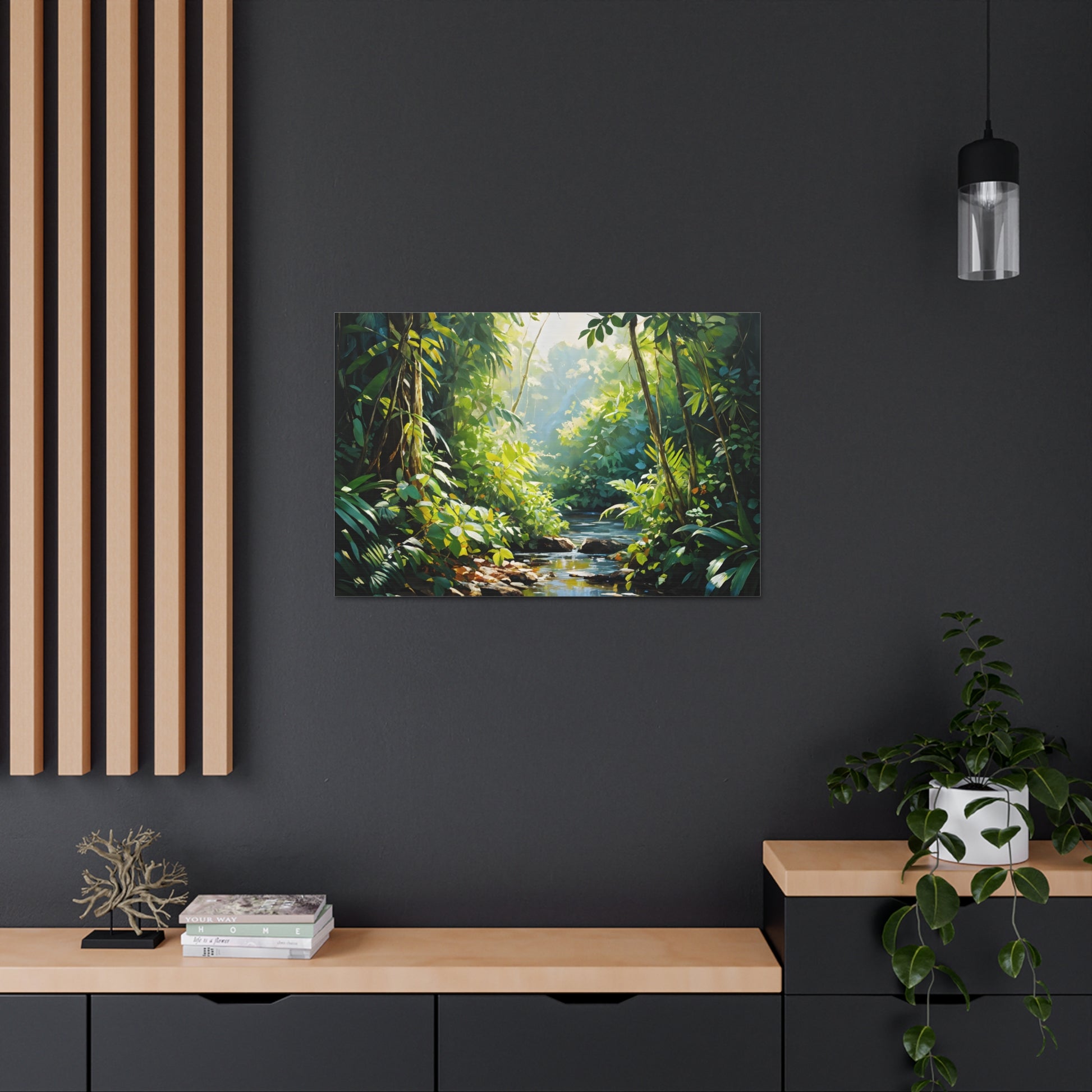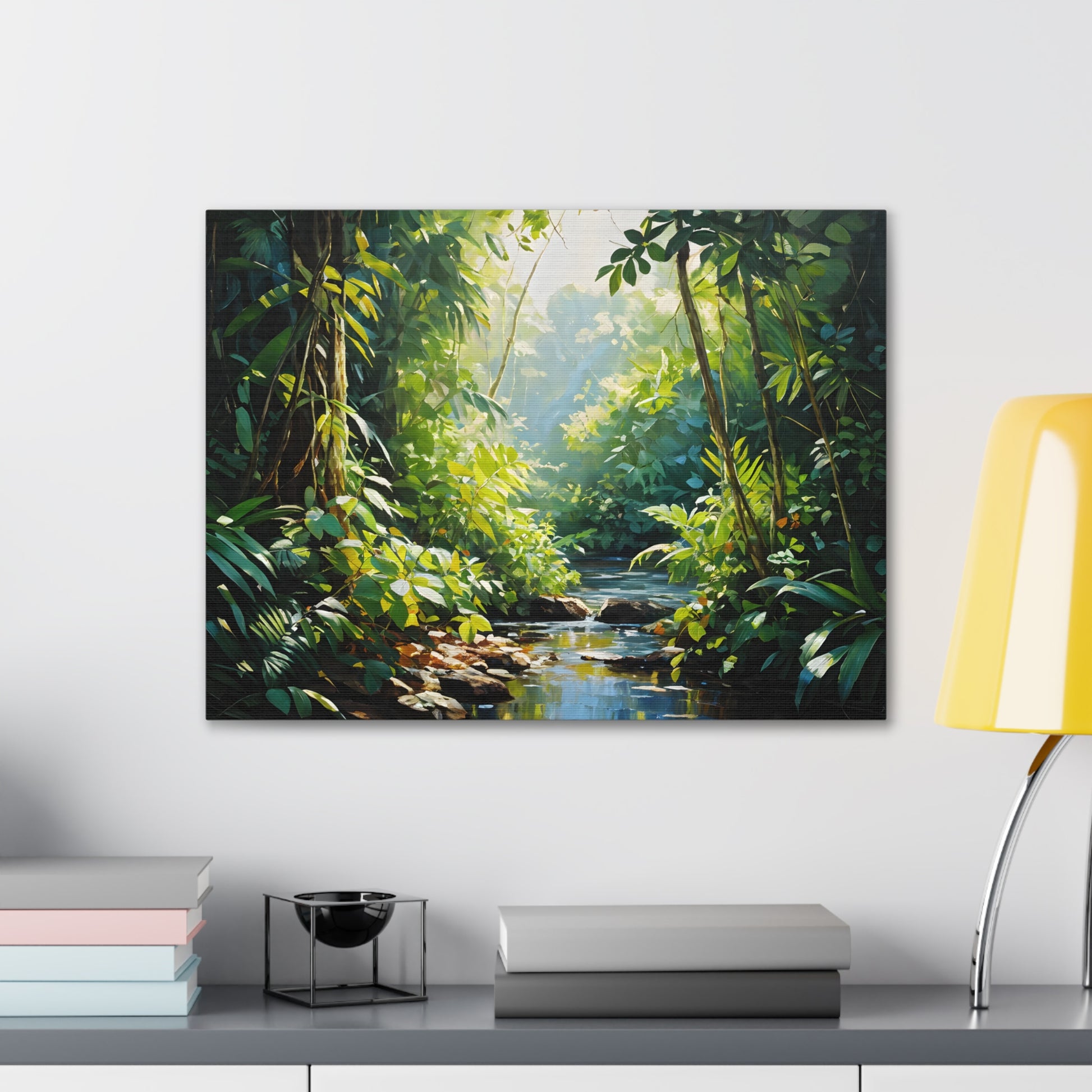 "Verdant Stream" is a tranquil oil painting that captures the lush greenery of a secluded forest path leading to a gentle stream. Painted on high-quality cotton canvas, this piece uses soft greens and subtle light to create a serene, natural setting. Perfect for adding a refreshing touch of nature to your indoor space, "Verdant Stream" is designed for indoor use only.