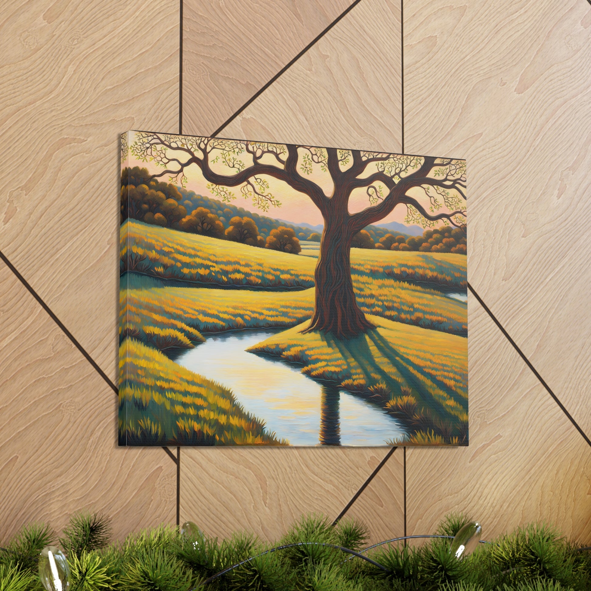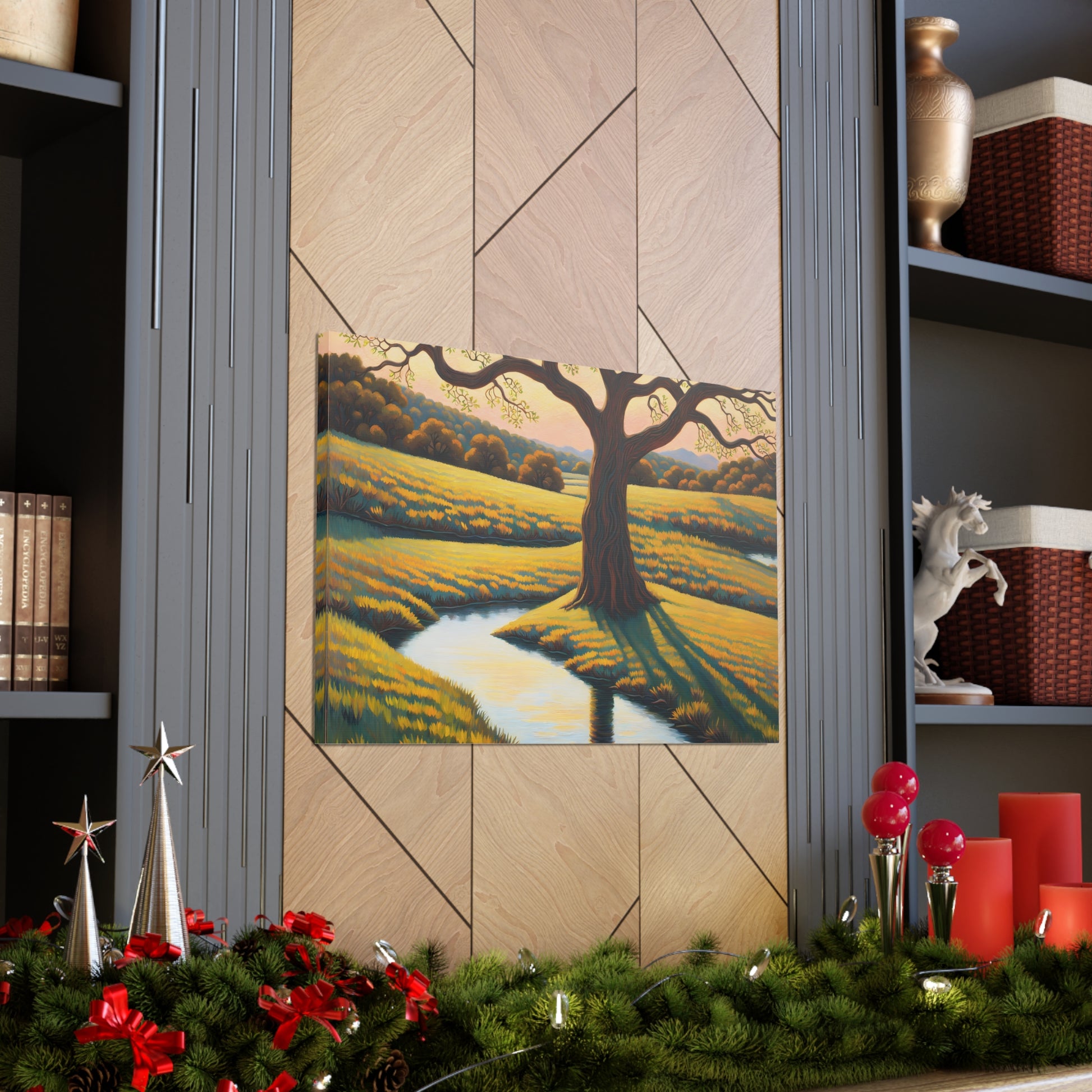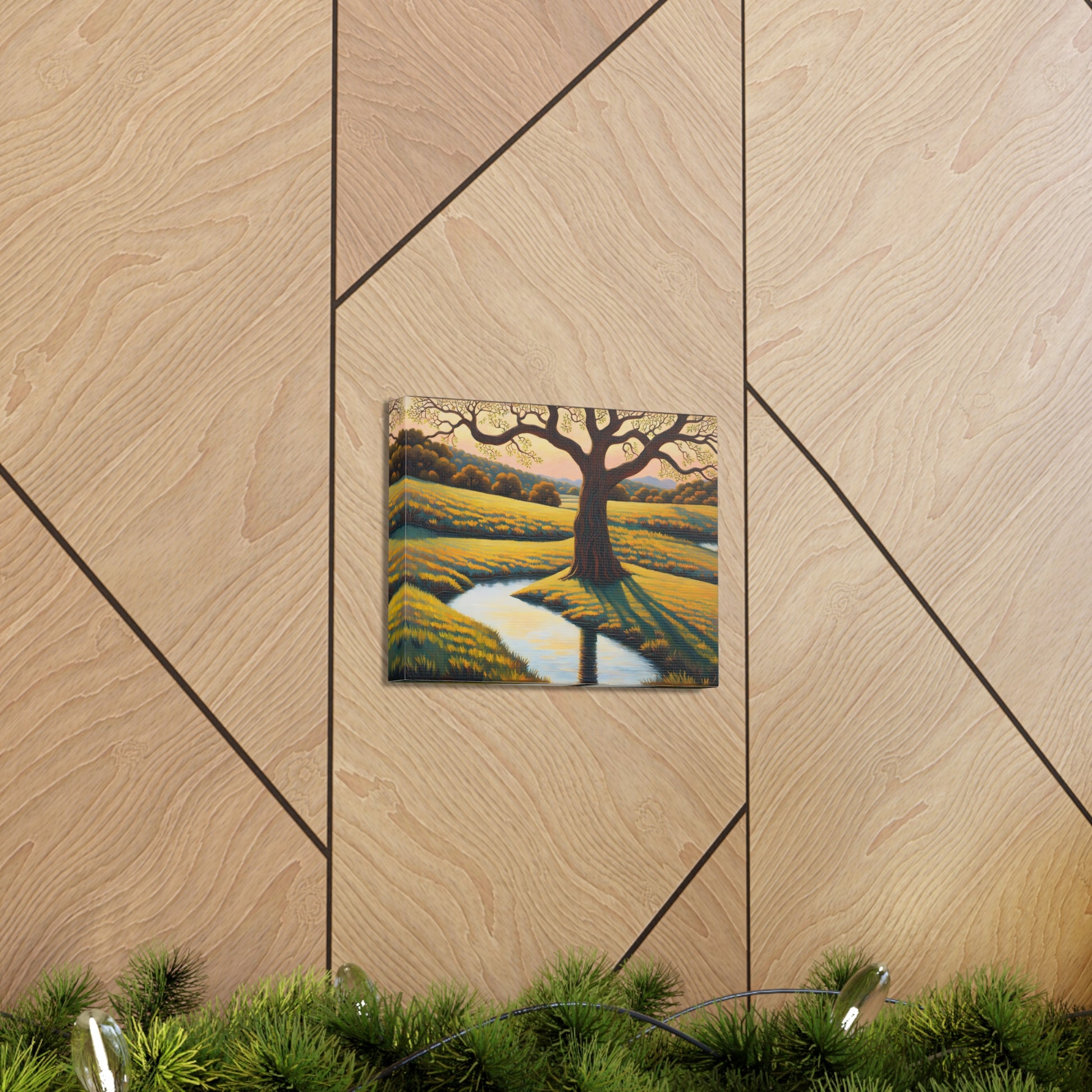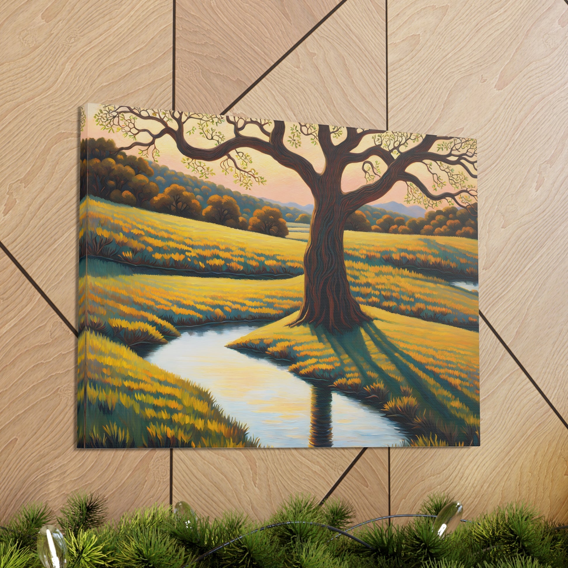 "Whispering Field" depicts a solitary tree standing amidst a rolling landscape, bathed in the warm glow of sunset. Crafted on premium cotton canvas, this oil painting brings the tranquility of an open field into your home. NB! For indoor use only, it's perfect for creating a serene and expansive feel in any room.