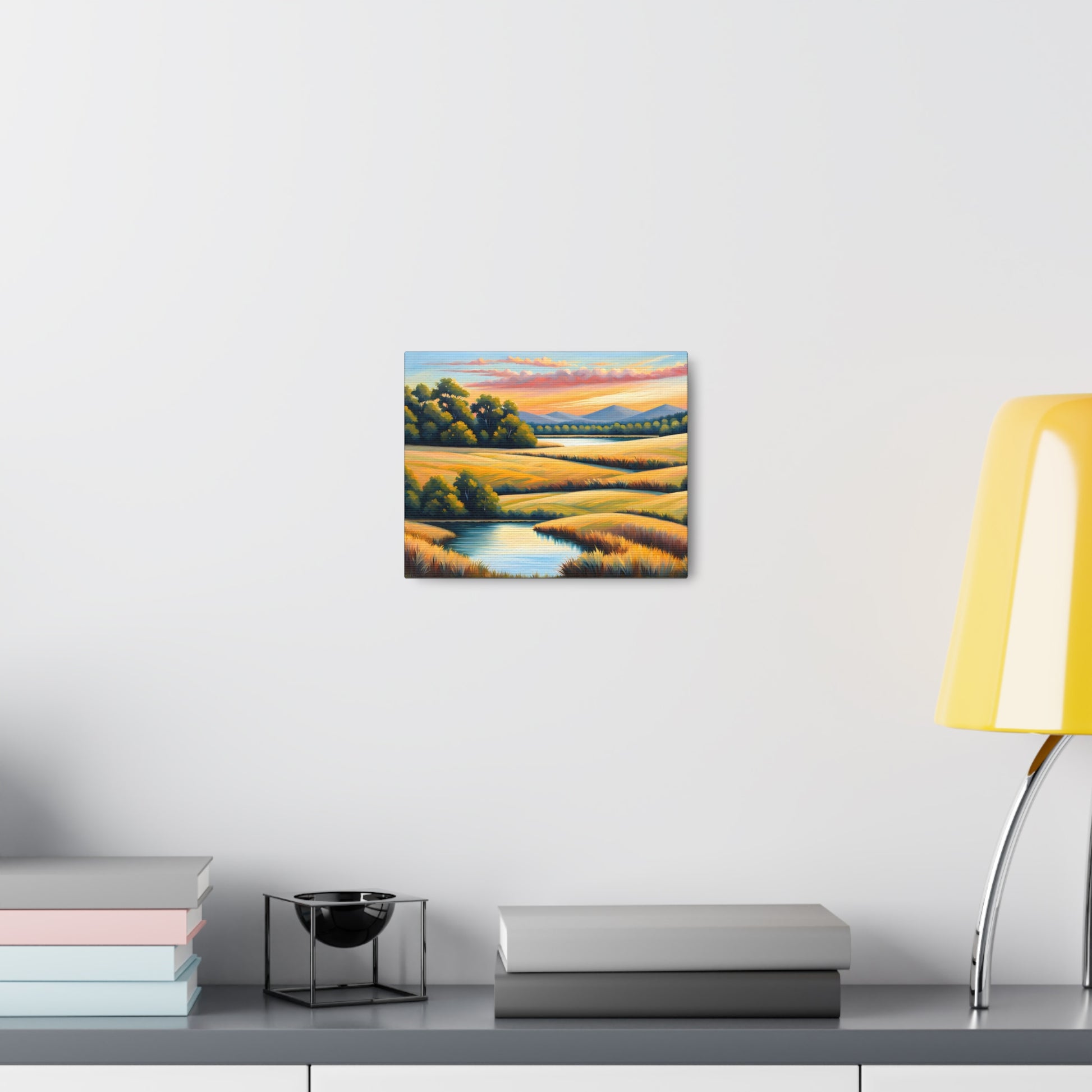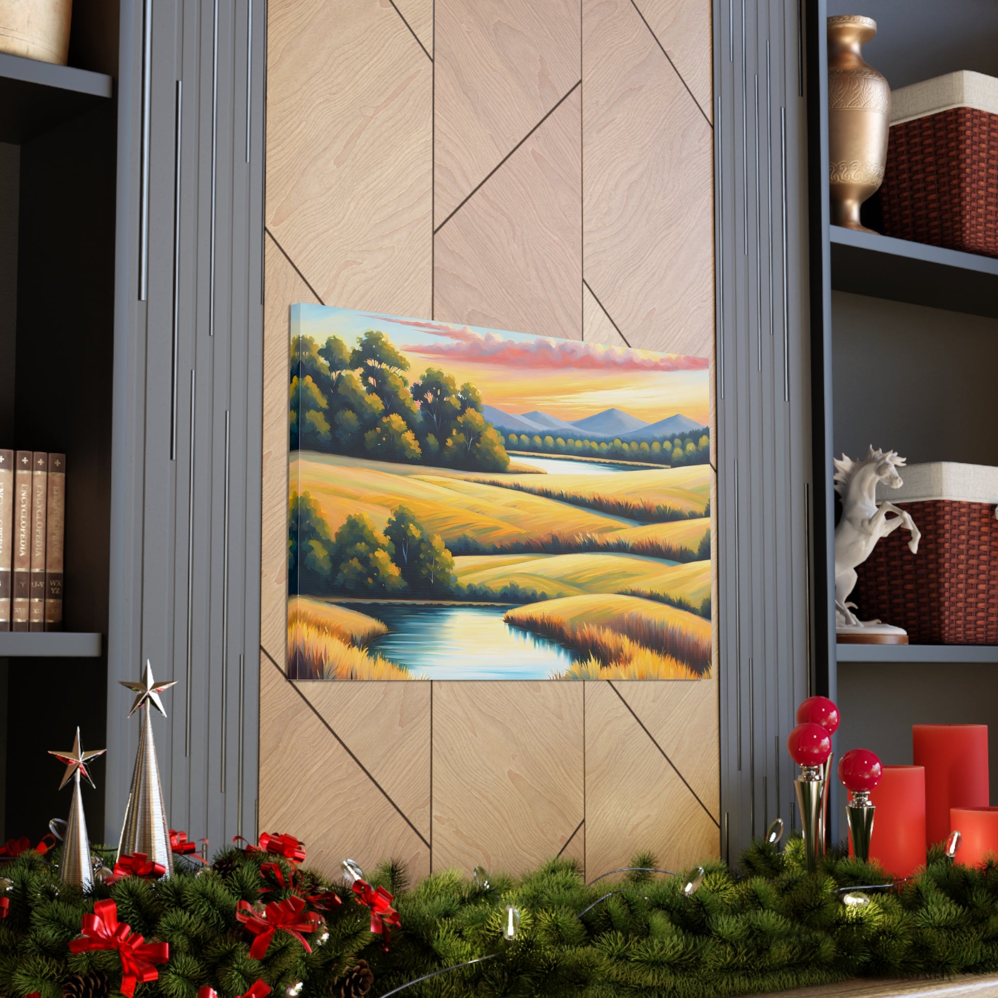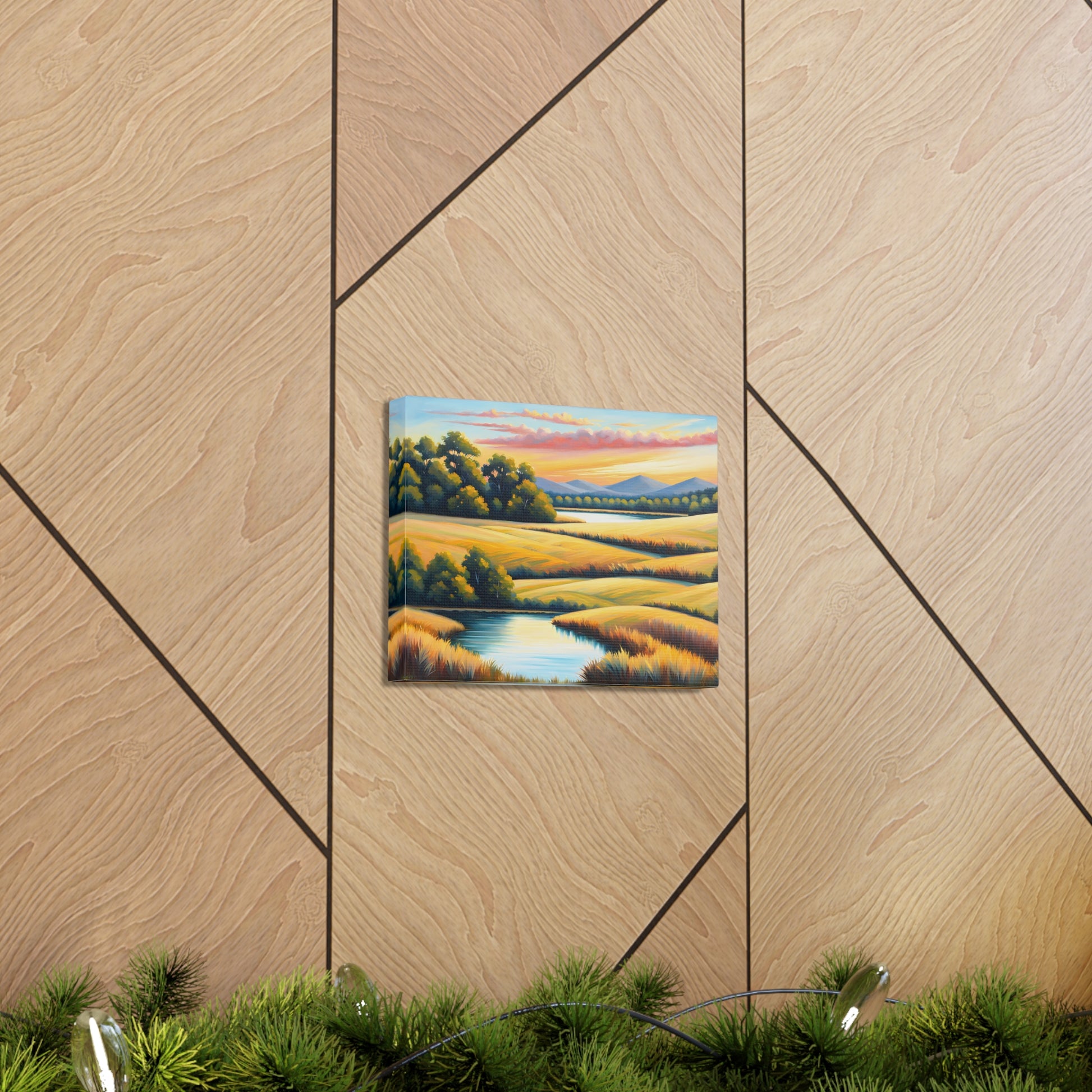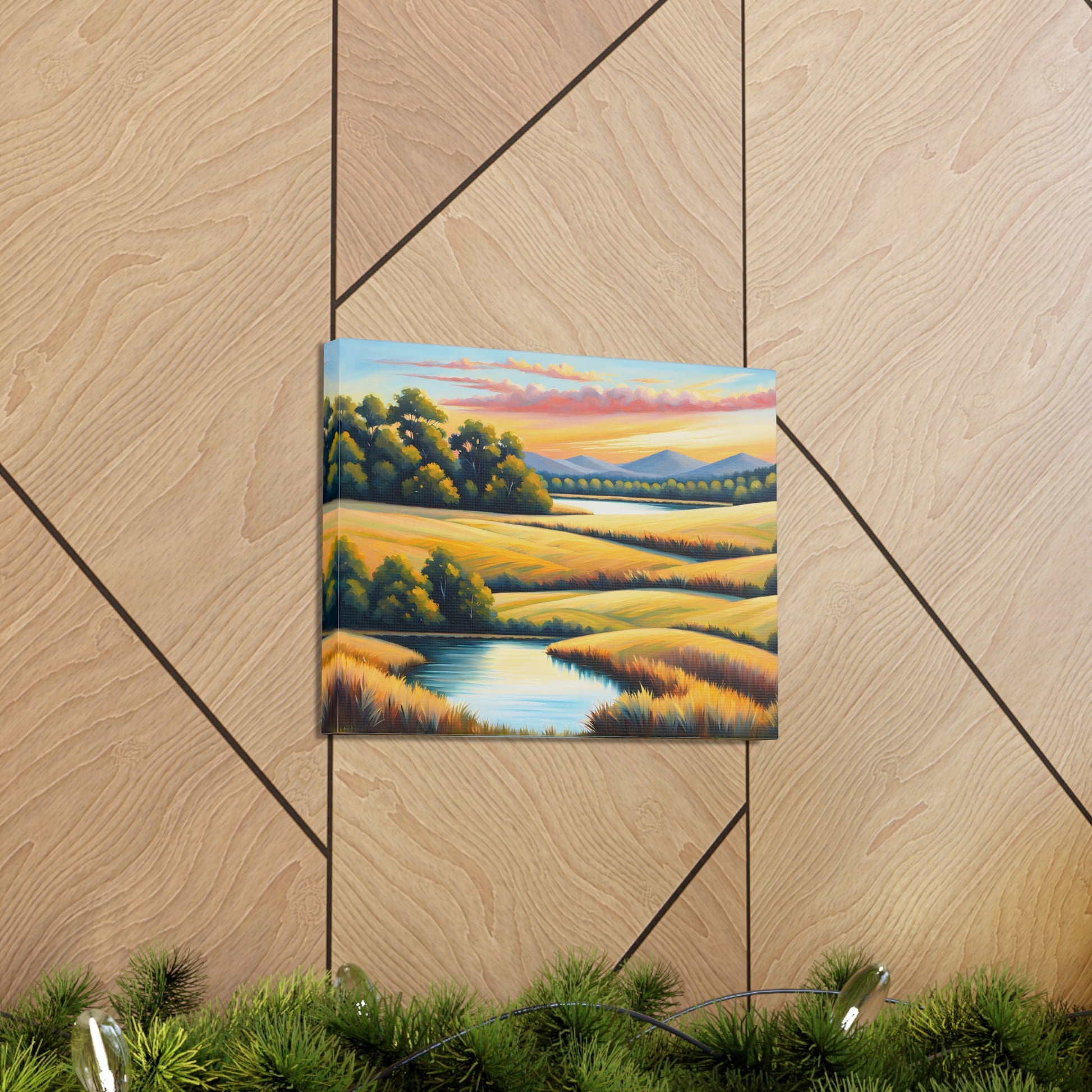 Escape to the calm of "Whispering Meadows," where golden fields stretch out under a soft, colorful sky. This oil painting captures the peaceful beauty of nature’s quiet moments, perfect for bringing warmth to your home.