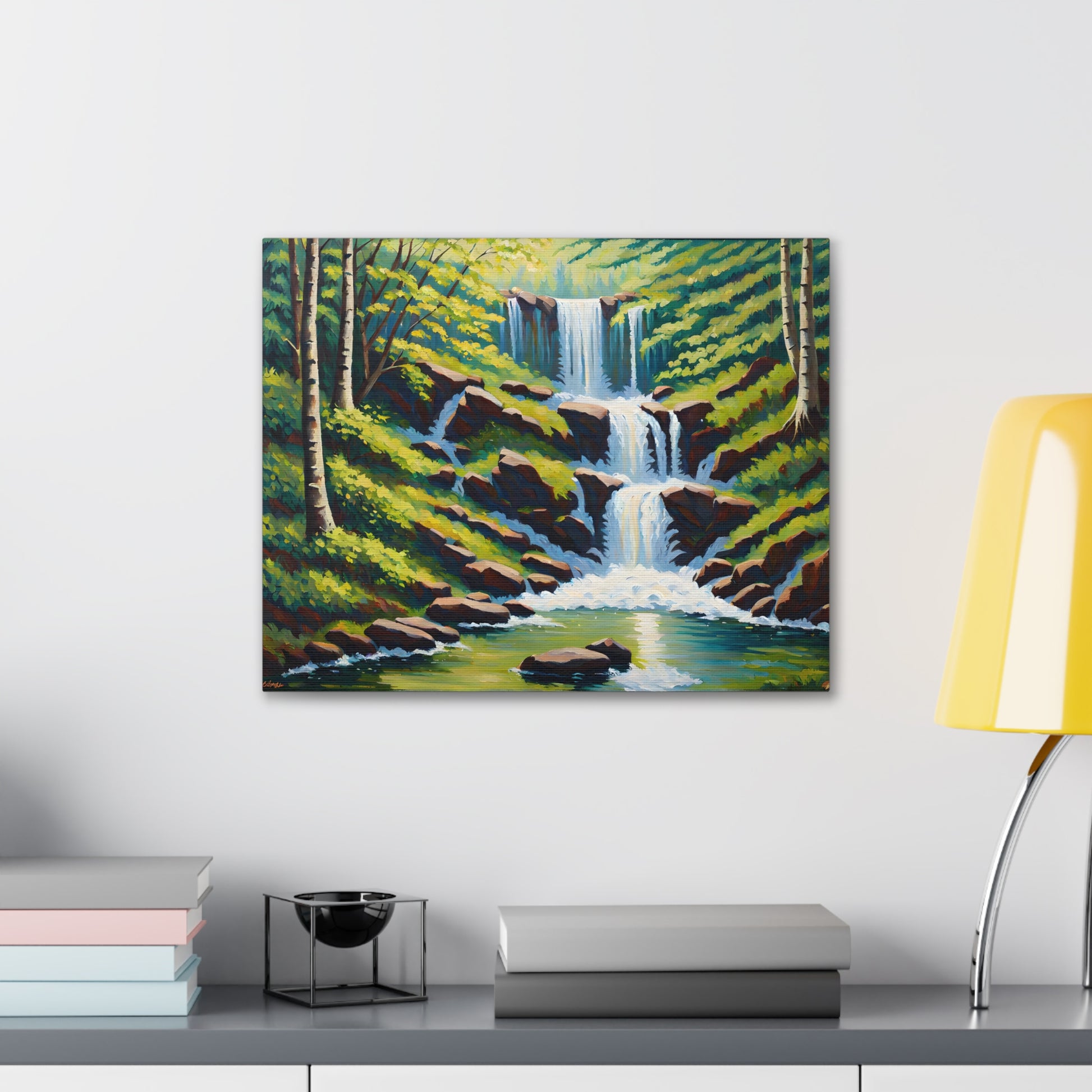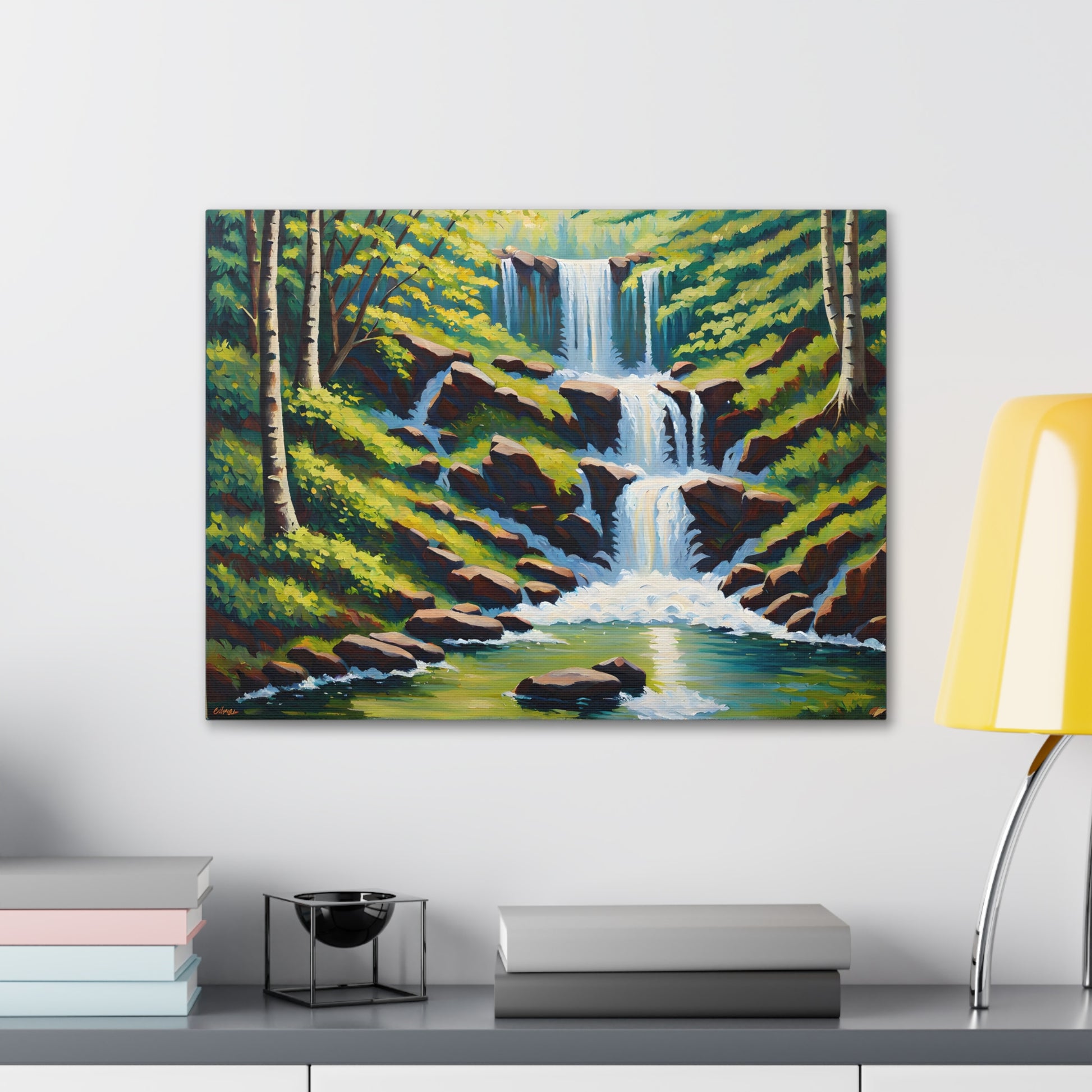 "Woodland Refuge" immerses you in the serenity of a secluded forest, with sunlight filtering through the trees and casting a soft glow. Painted on cotton canvas, this oil painting brings the calming energy of nature into your indoor spaces.