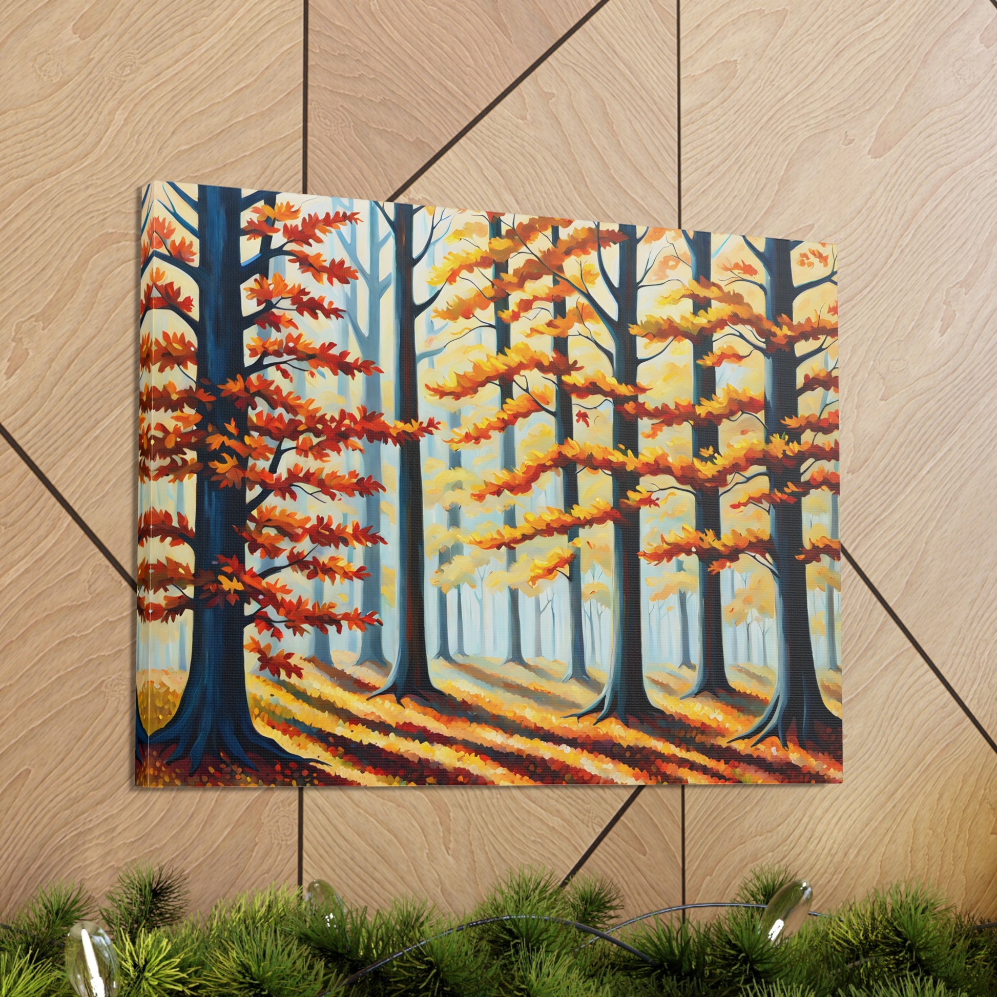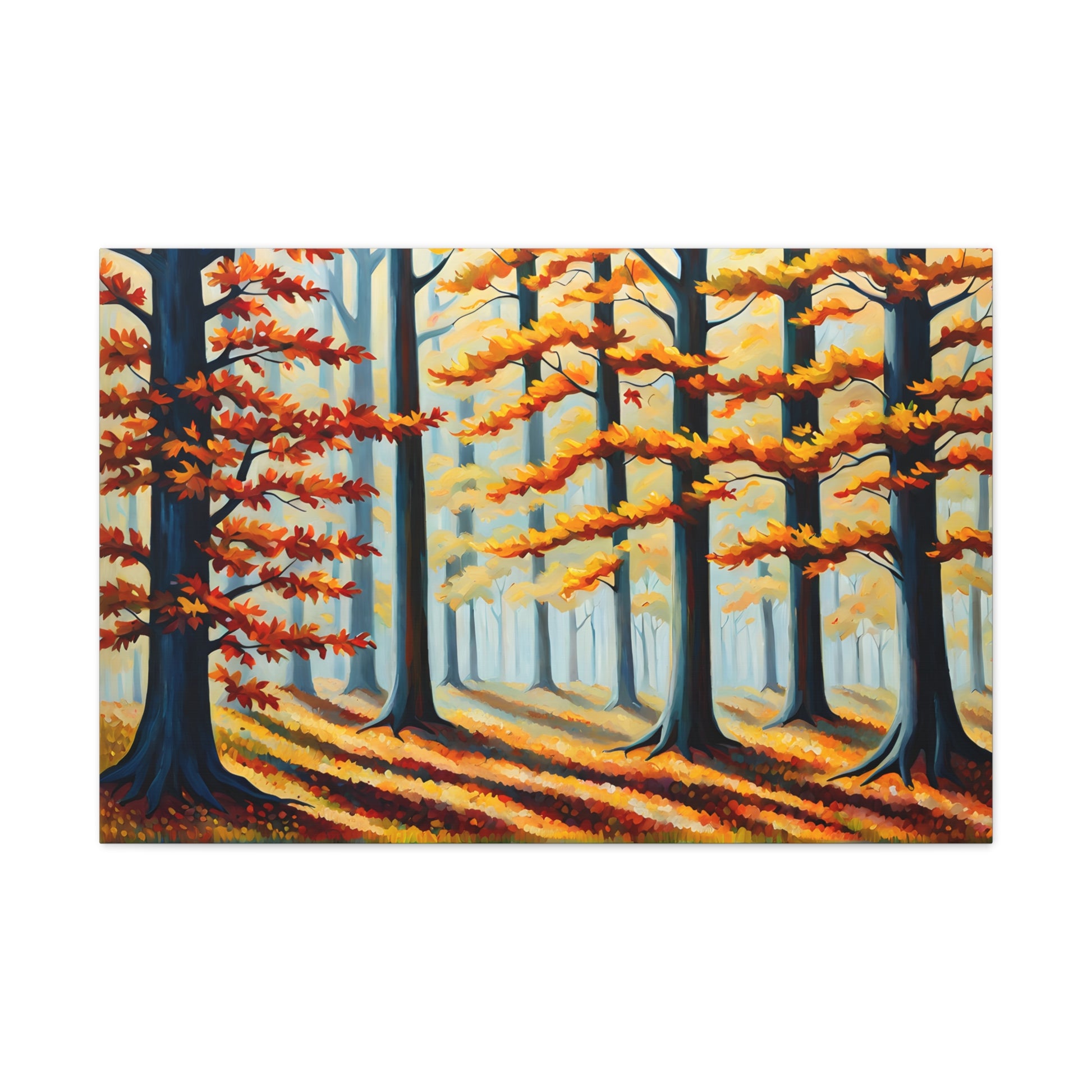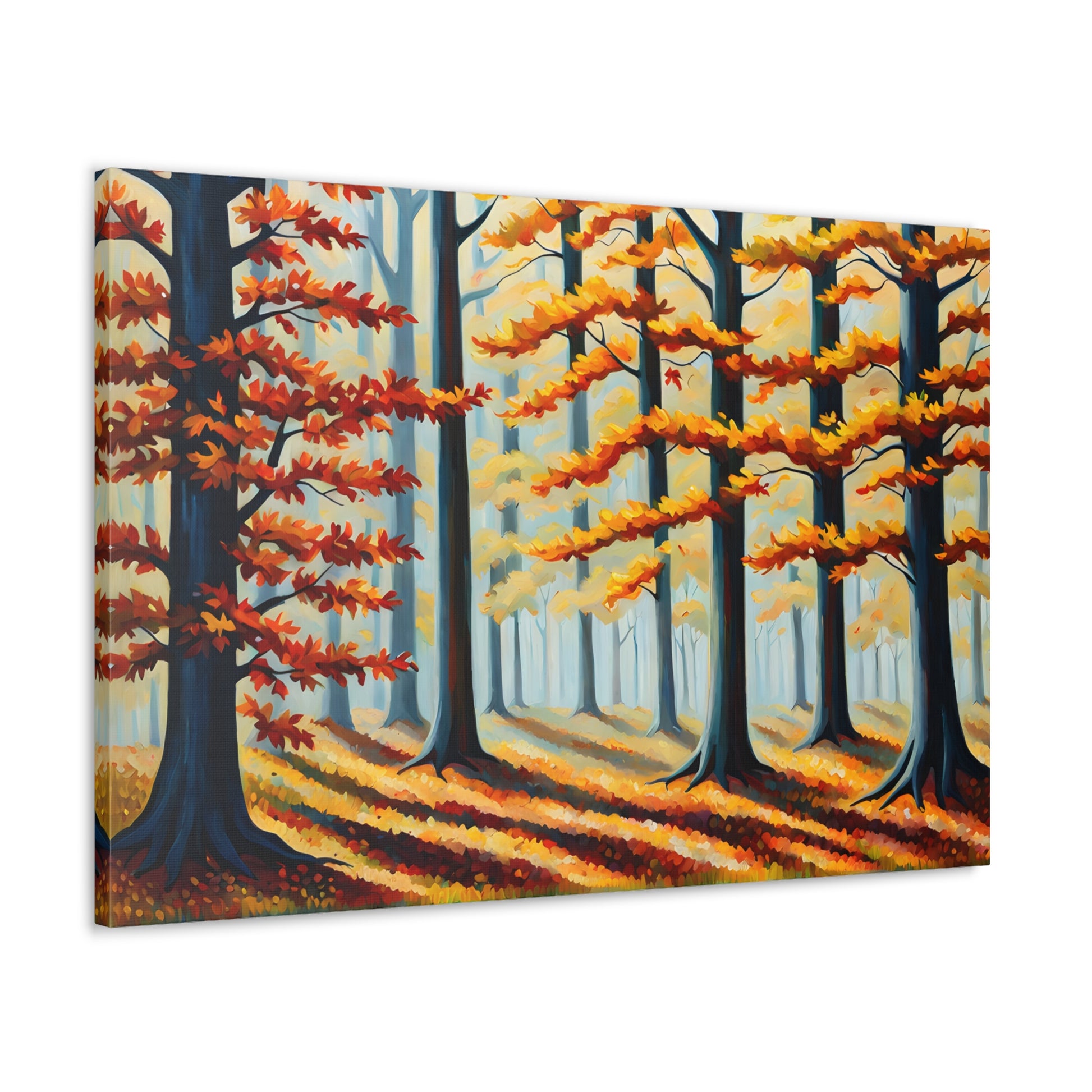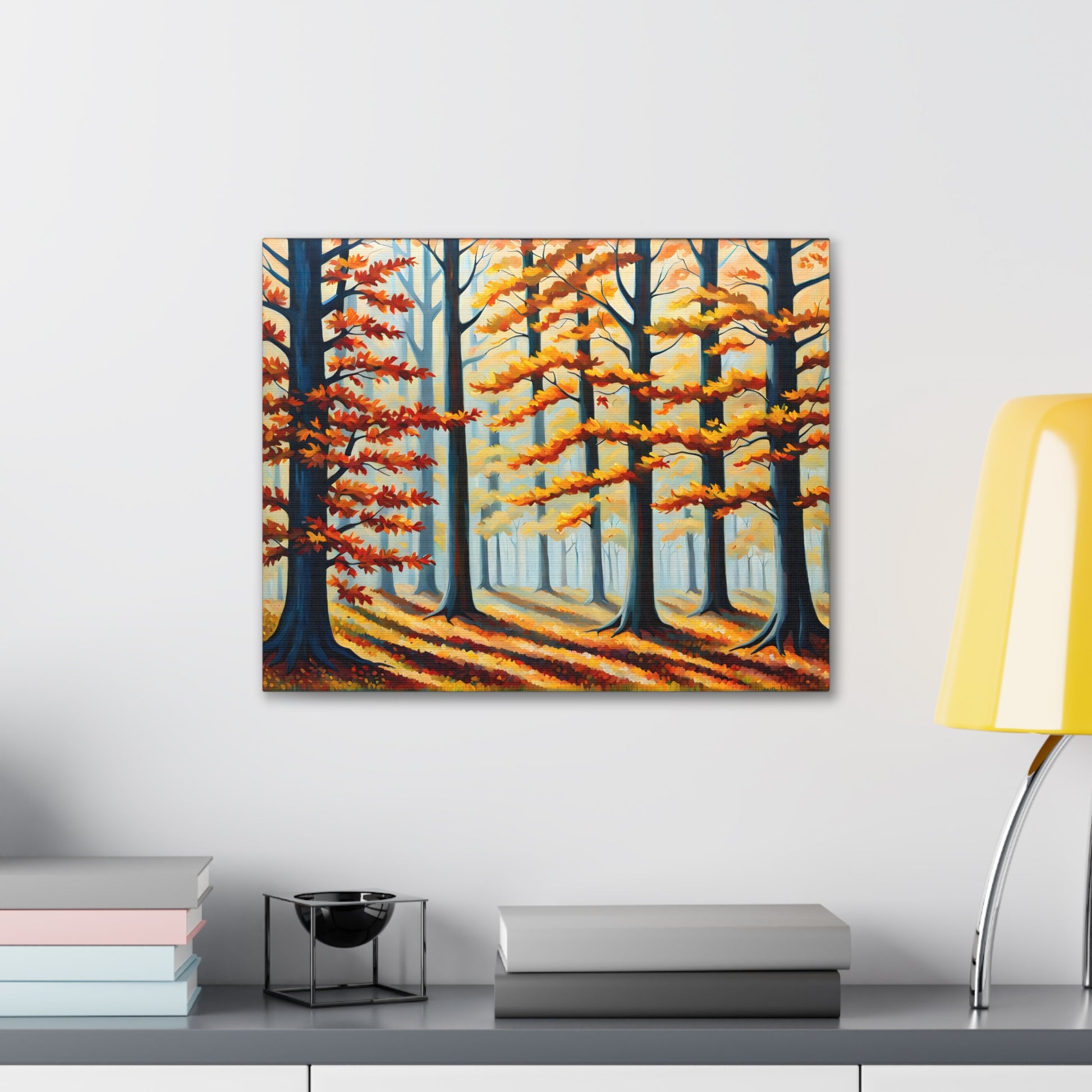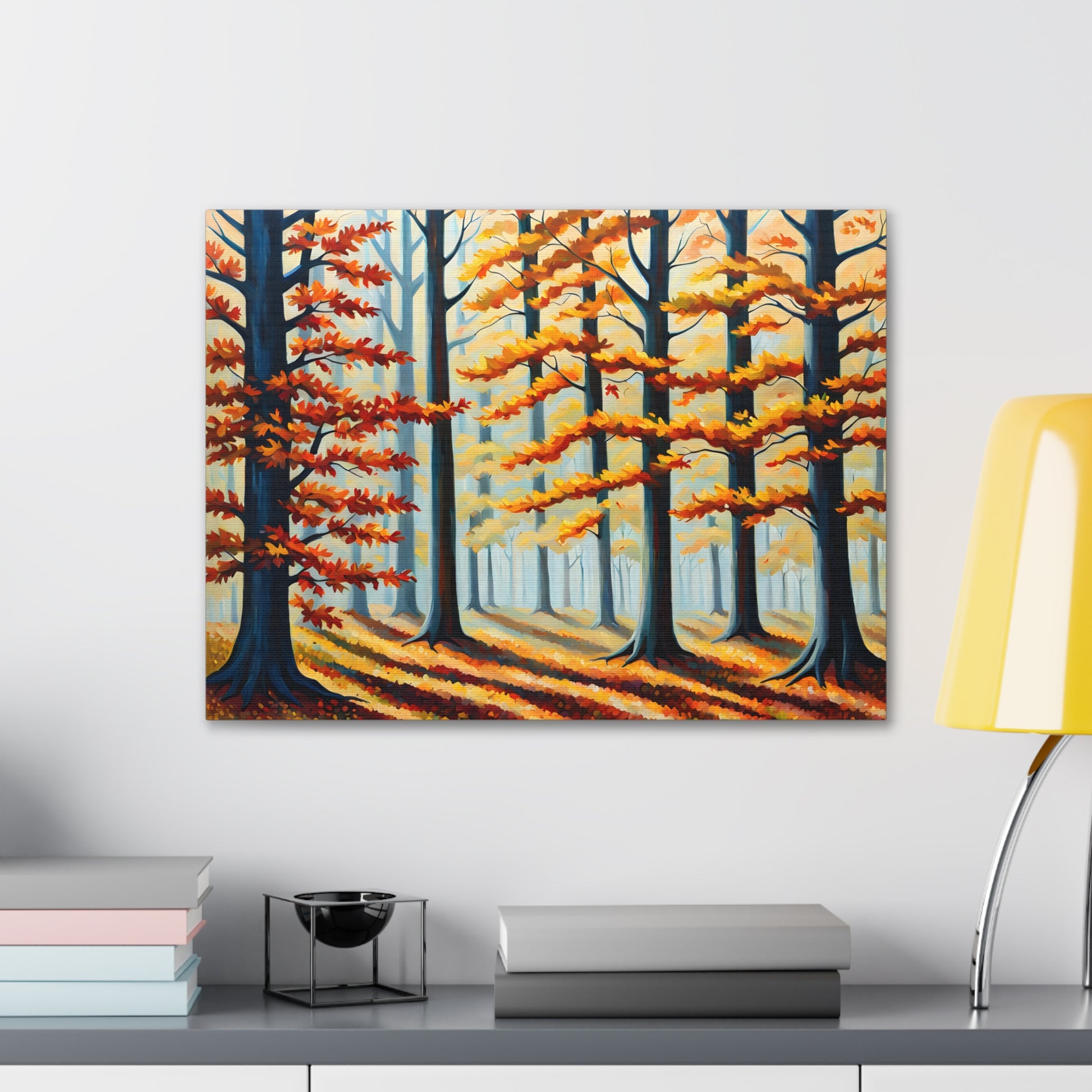 Step into the peaceful stillness of an autumn forest with "Woodland Trail." This oil painting on cotton canvas captures the golden light filtering through trees in an autumn woodland scene. Perfect for creating a cozy, nature-inspired atmosphere in any indoor space.