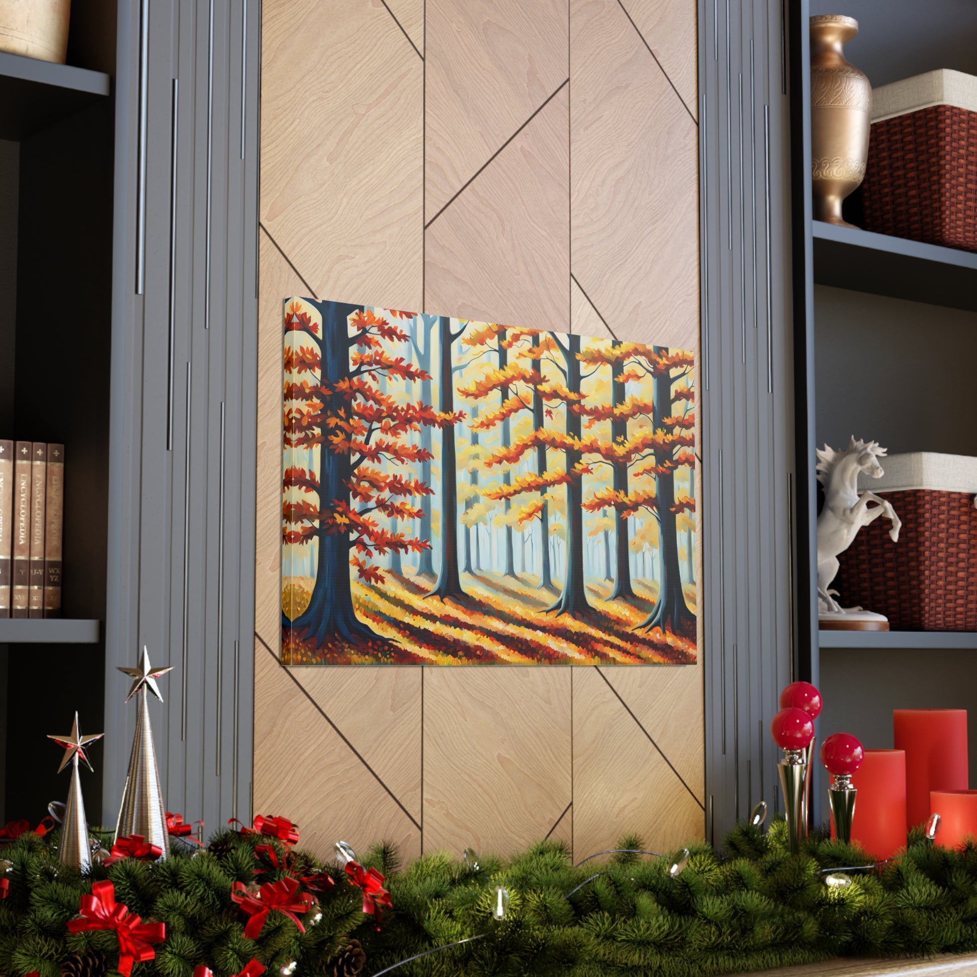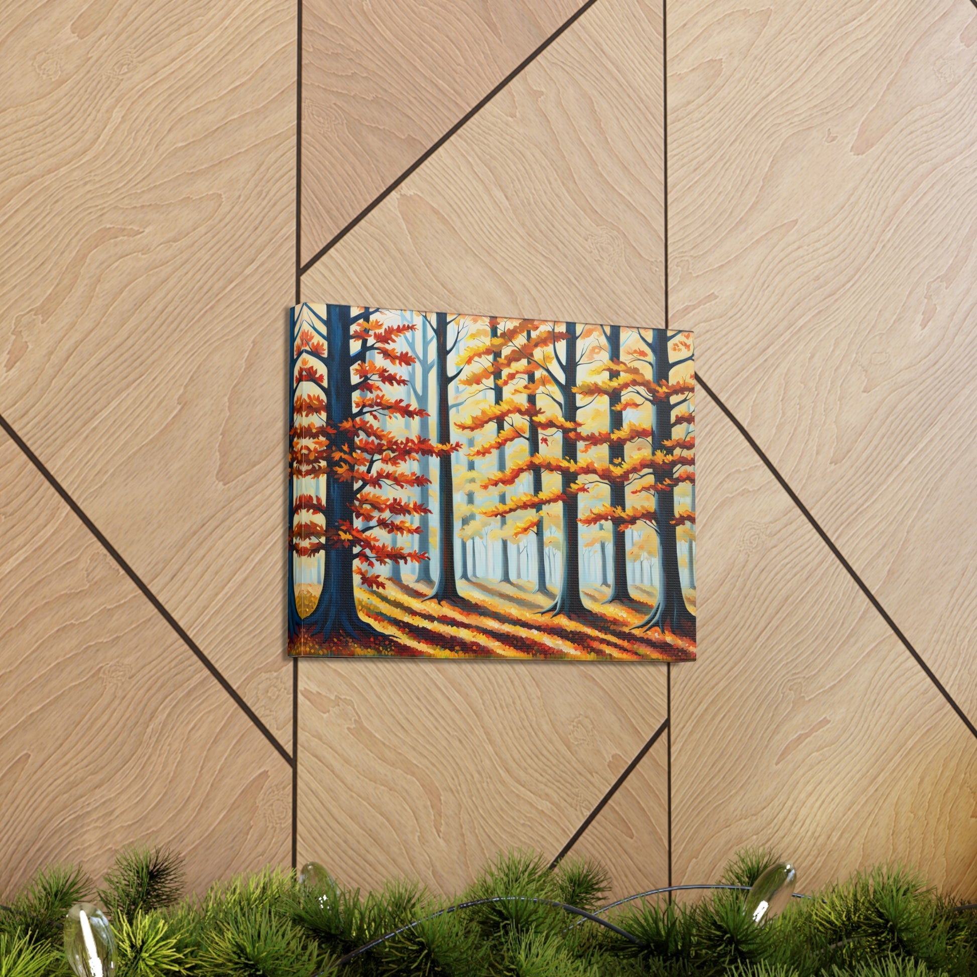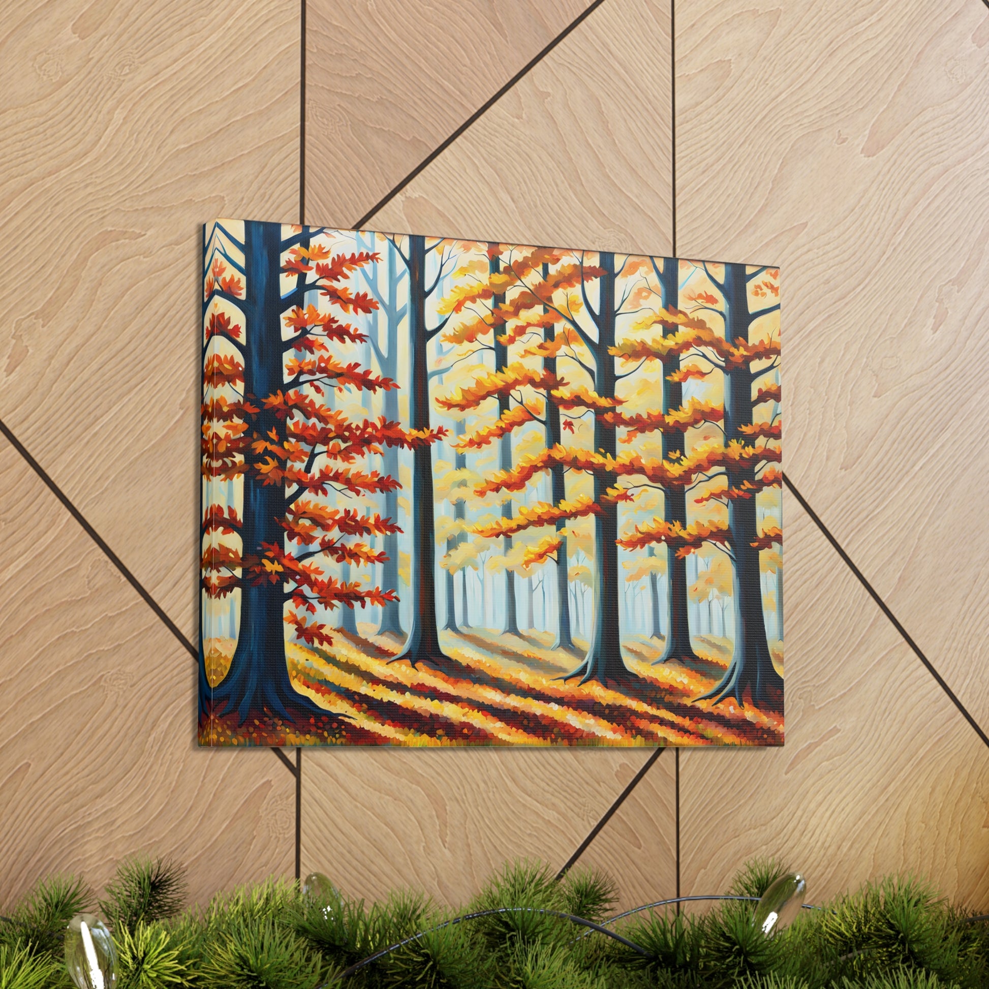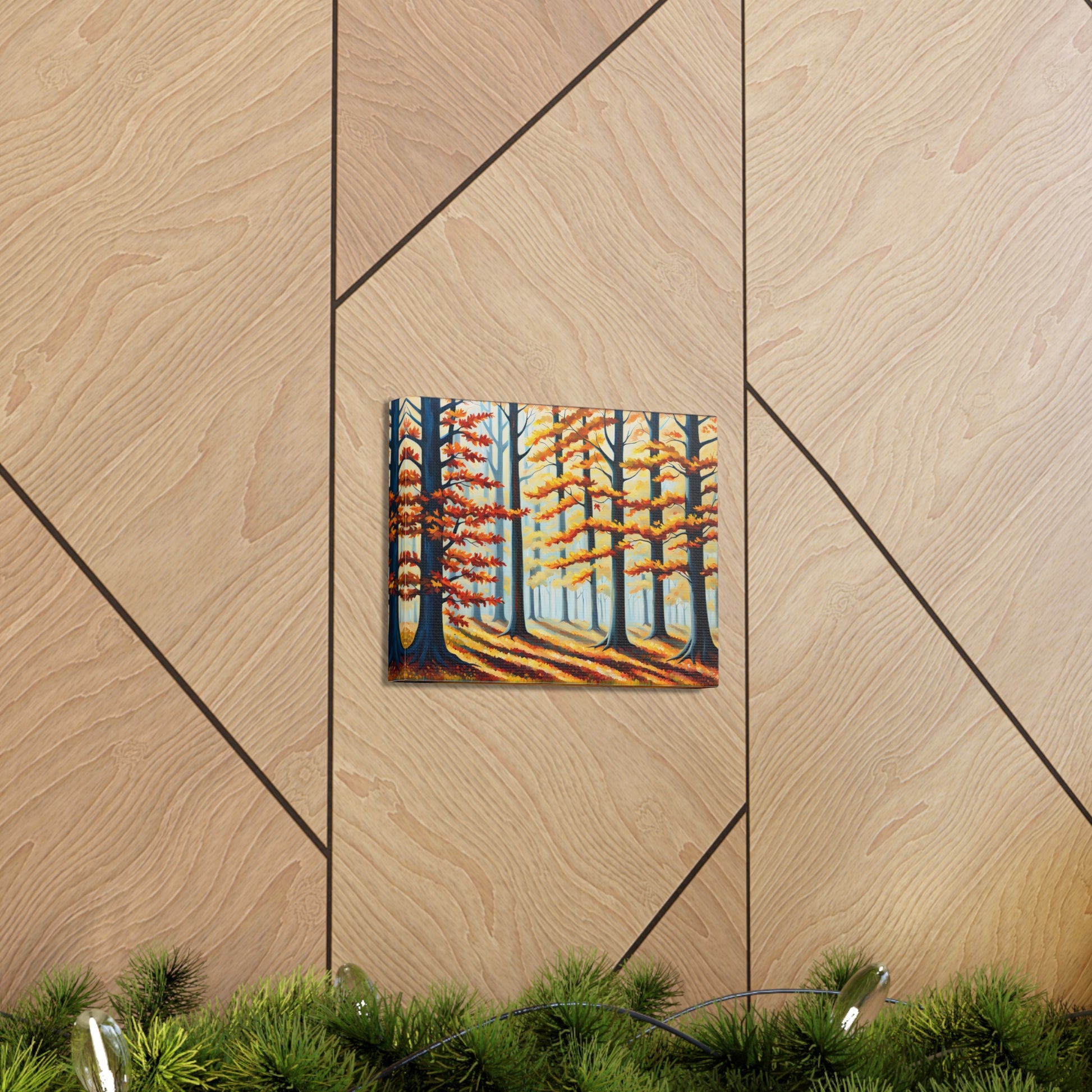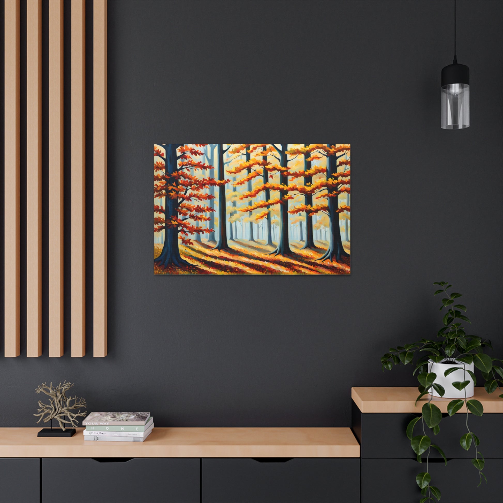 Step into the peaceful stillness of an autumn forest with "Woodland Trail." This oil painting on cotton canvas captures the golden light filtering through trees in an autumn woodland scene. Perfect for creating a cozy, nature-inspired atmosphere in any indoor space.