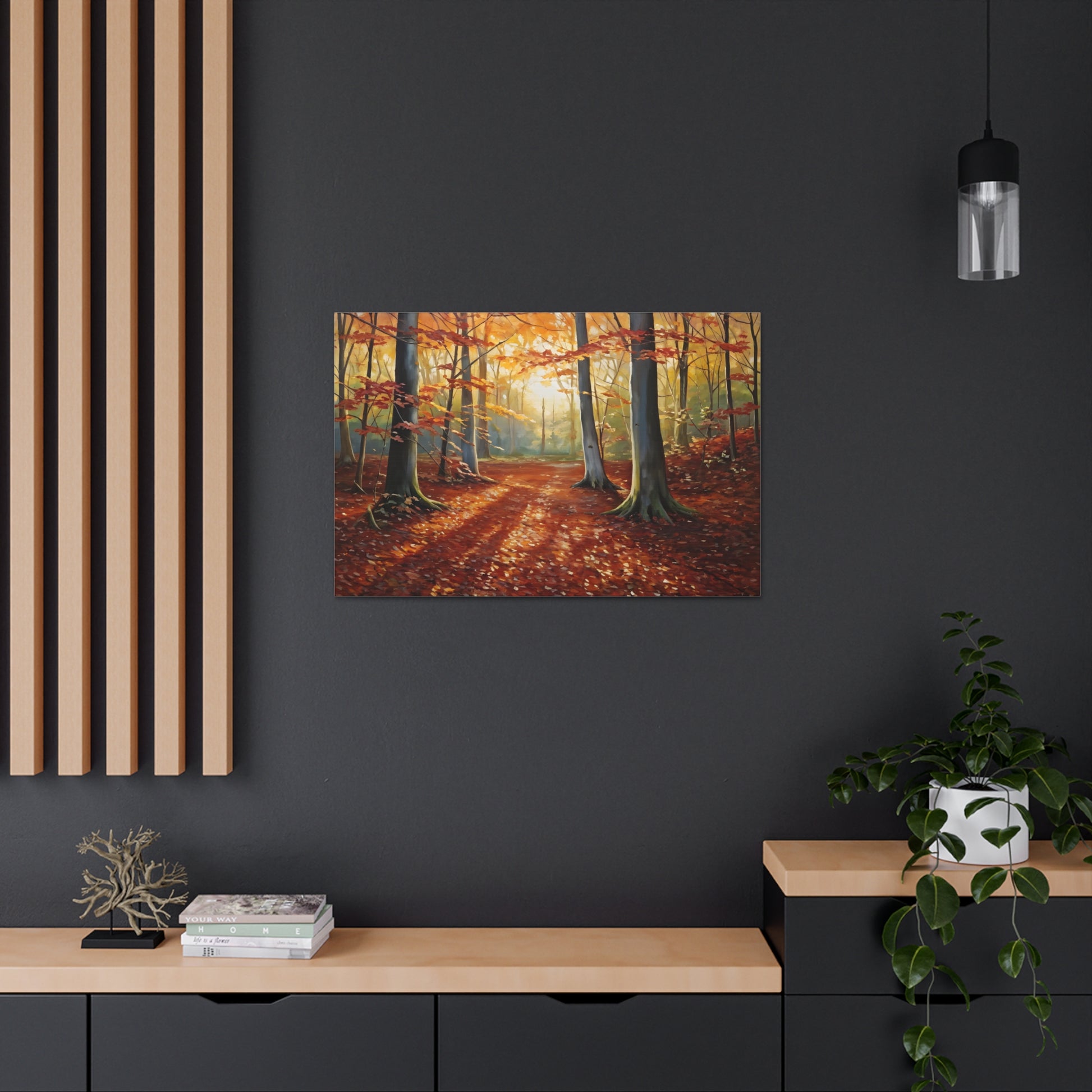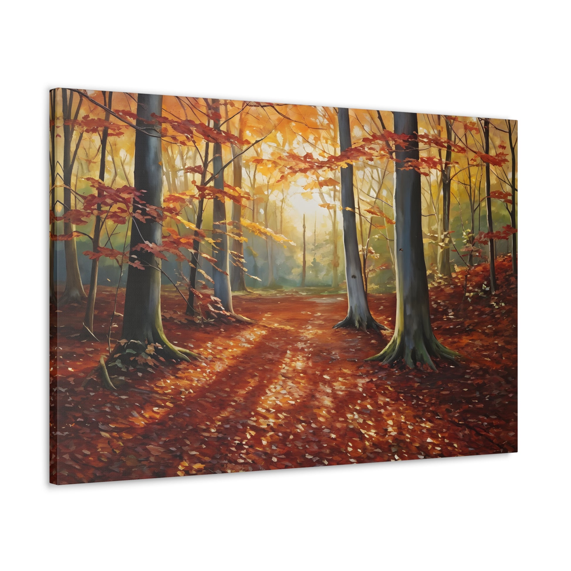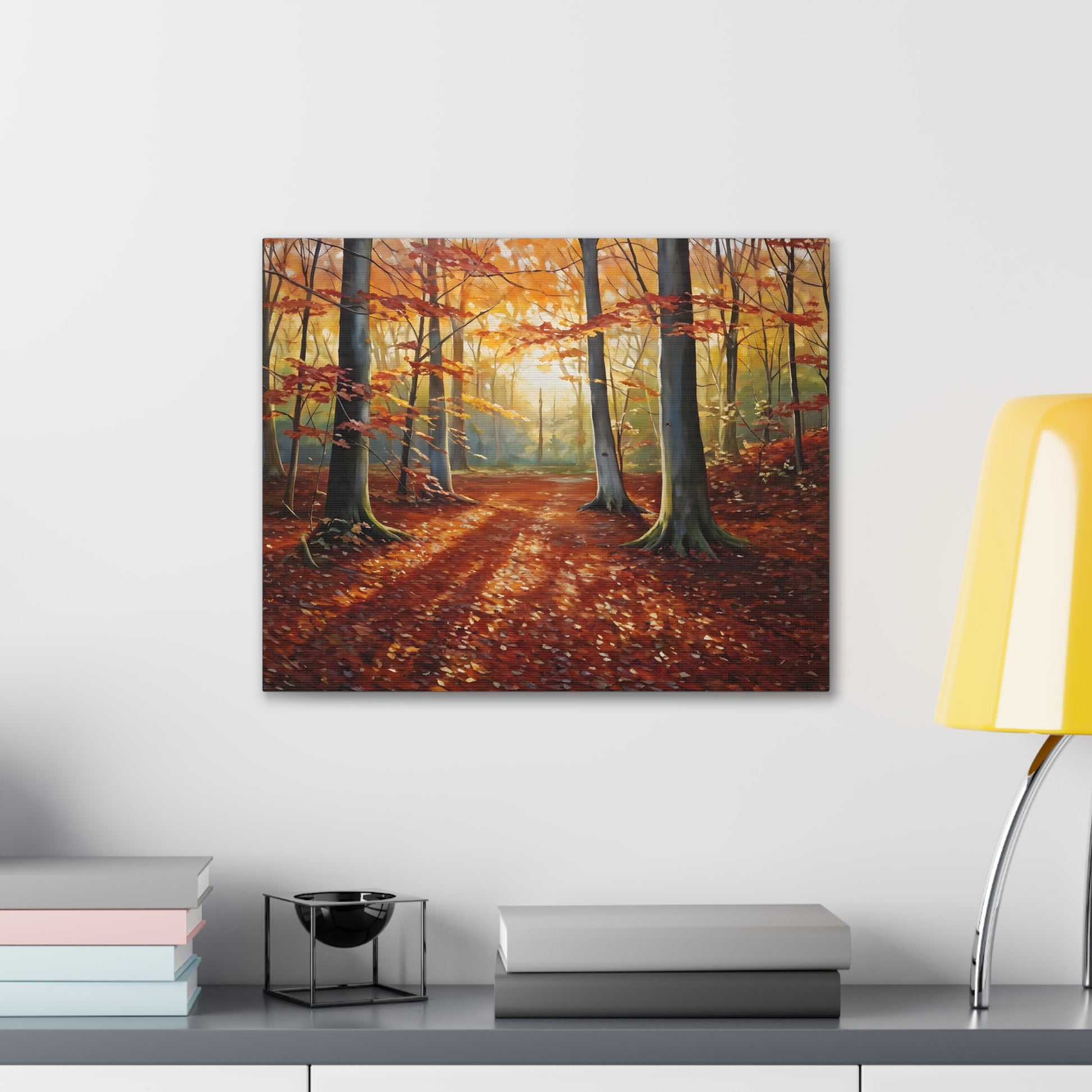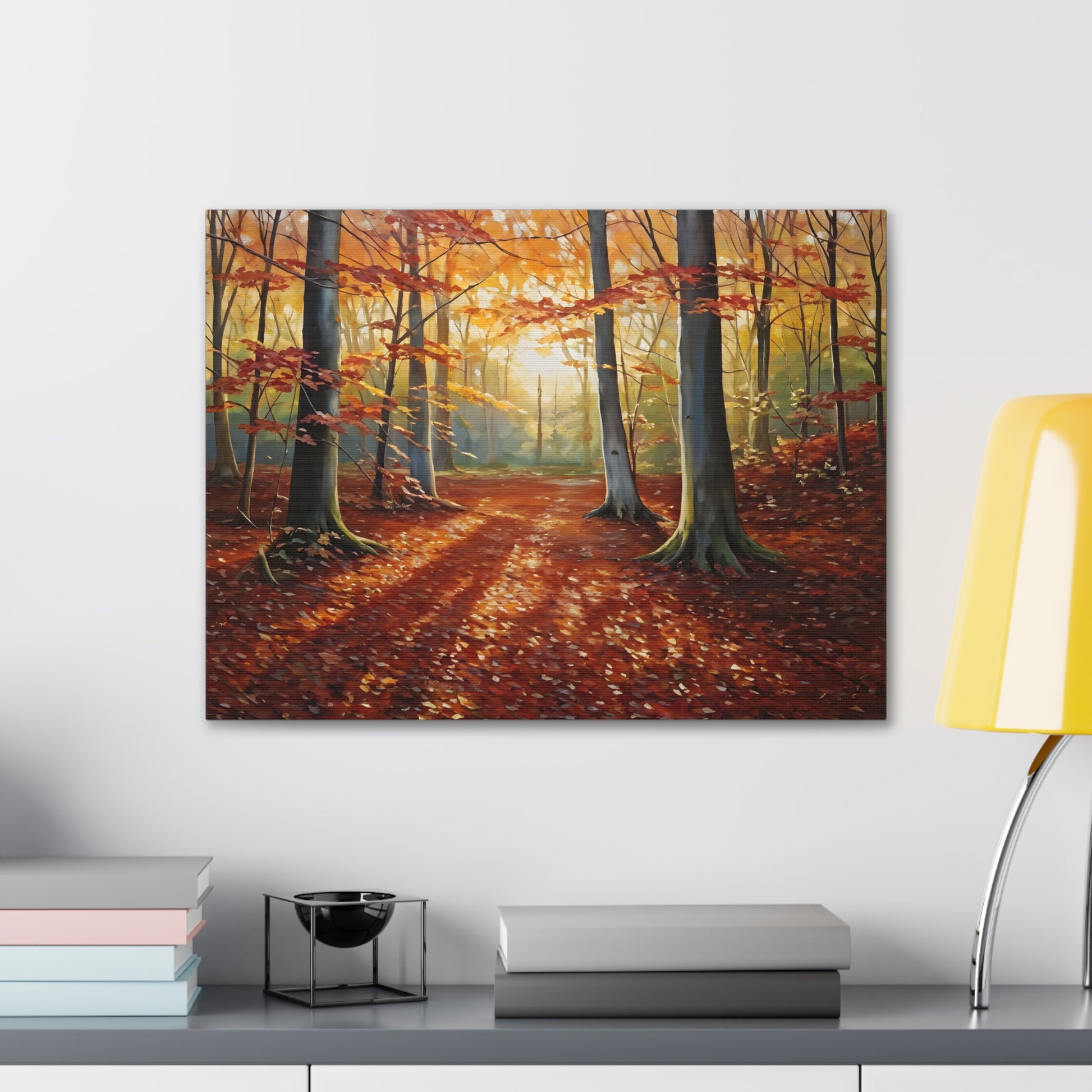 Wander through the beauty of autumn with "Woodland Trail," a captivating oil painting that brings the vibrant hues of the season to life. Painted on cotton canvas, this piece is ideal for adding warmth and natural beauty to any indoor space.